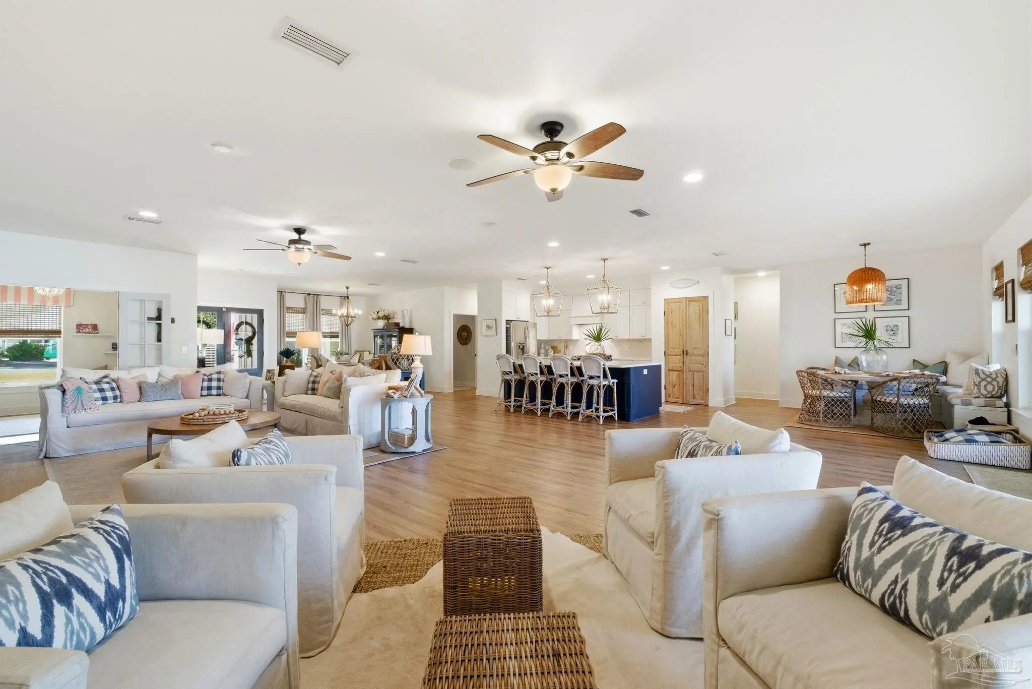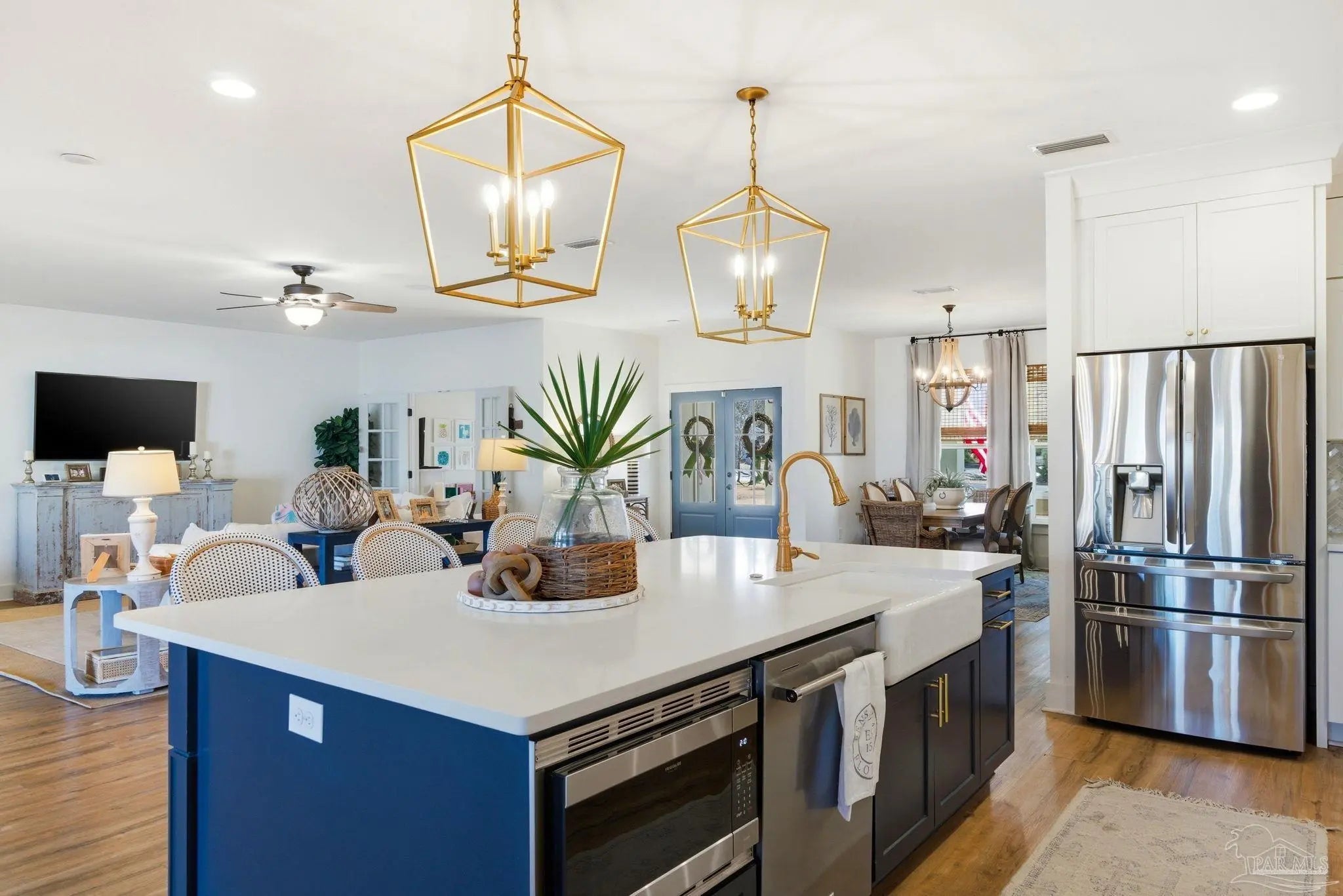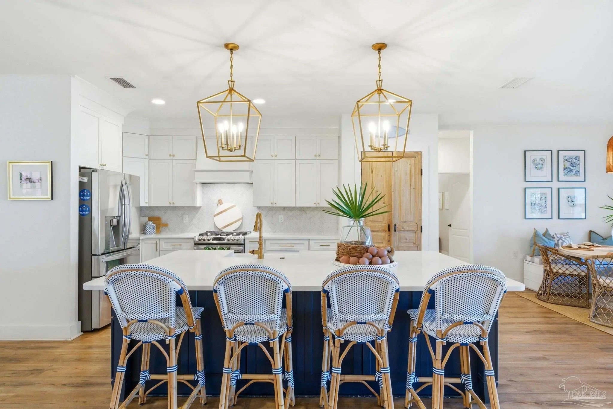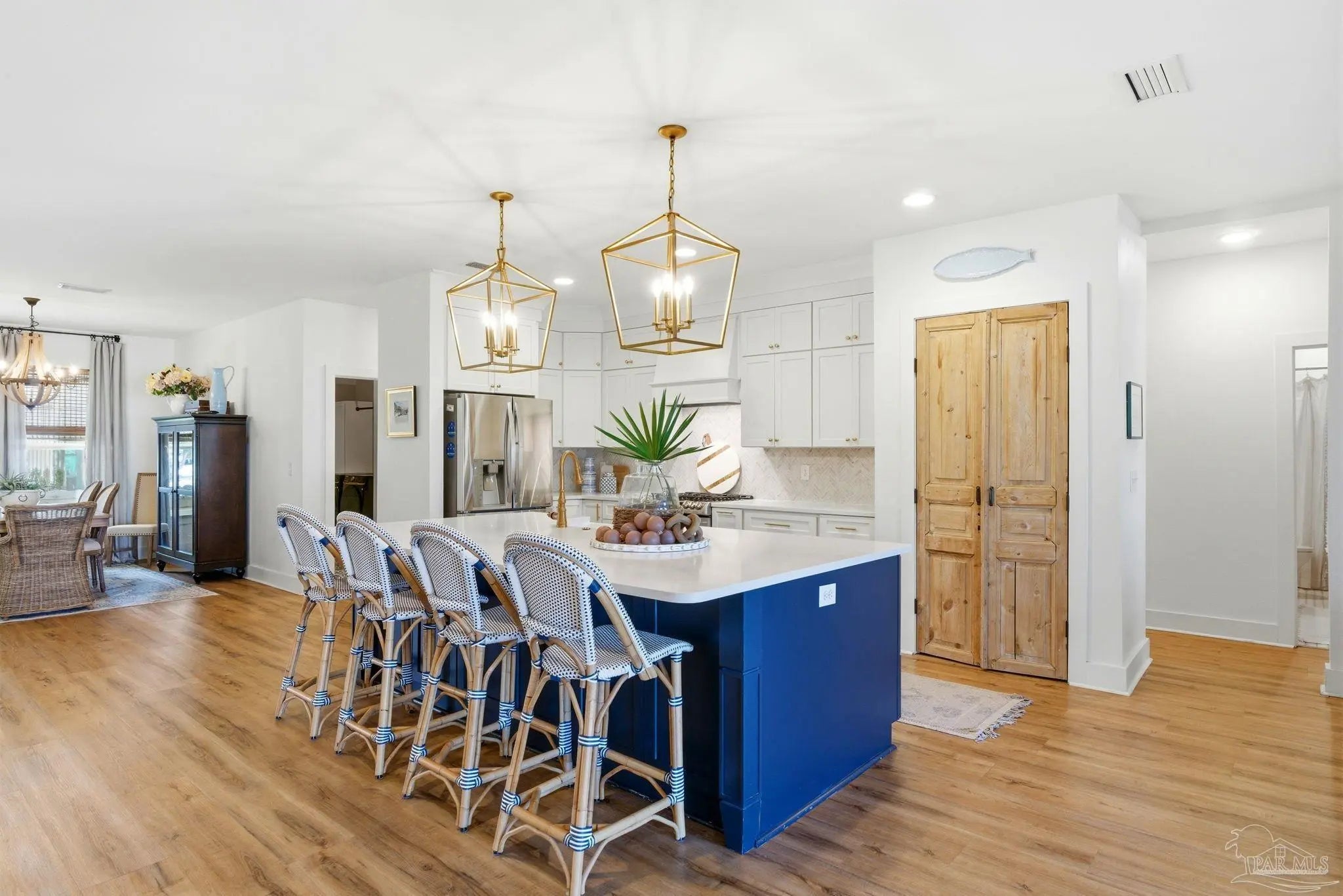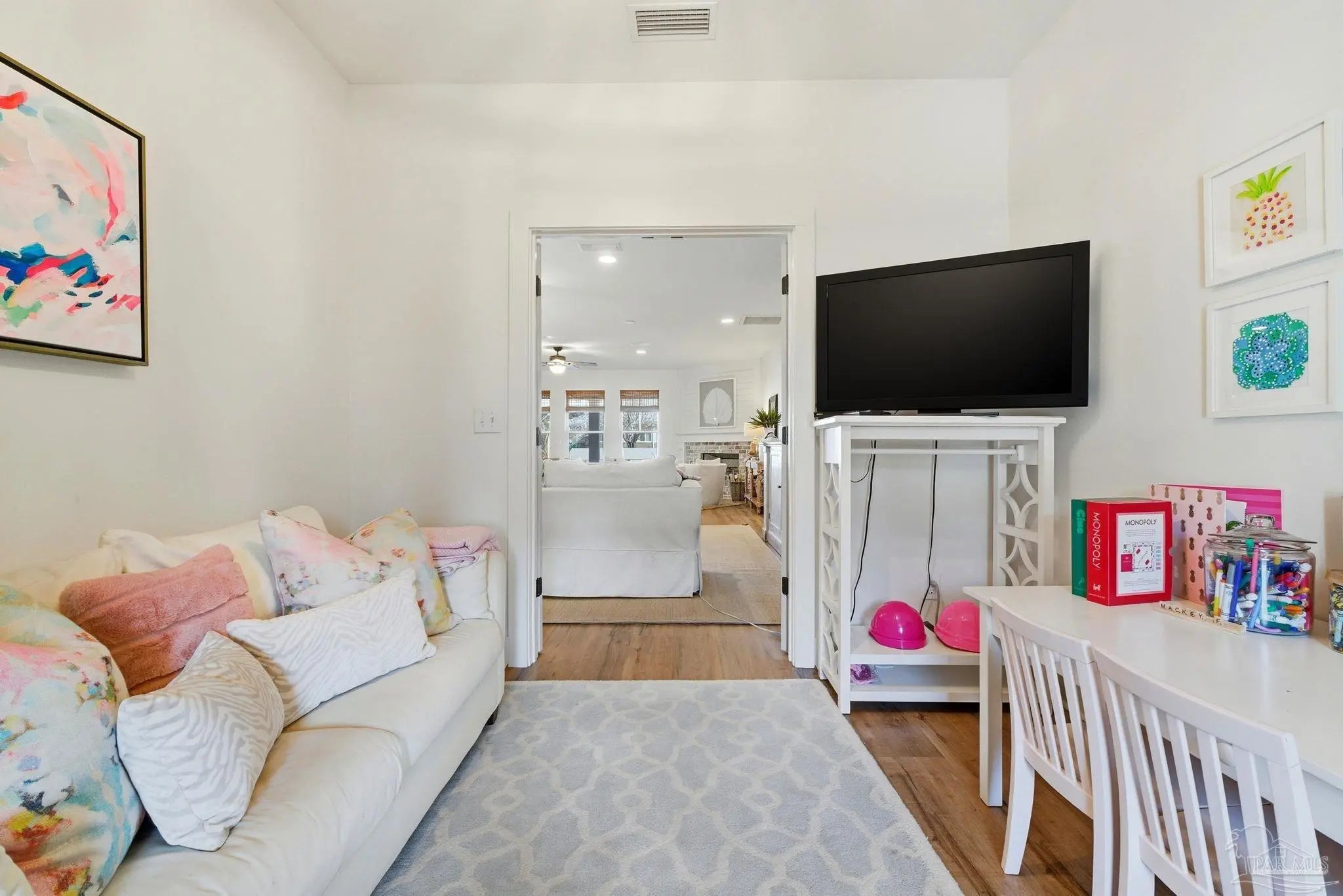 Waterfront living on Innerarity Island! Built in 2019, this canal-front home offers modern construction, a split floor plan, and direct boating access just minutes to Perdido Bay. Designed for both everyday comfort and entertaining, the open floor plan features a spacious living area with two separate seating spaces—one anchored by a cozy fireplace and the other ideal for TV and gathering. The oversized kitchen island provides abundant storage and generous seating, making it the heart of the home. The split-bedroom layout offers privacy, with the primary suite on one side and three additional bedrooms on the opposite side. The primary suite includes dual closets, dedicated shoe shelving, and plenty of space to unwind. A separate study (currently used as a playroom) adds flexible living space, and an additional office has been built out in the garage area—perfect for working from home. Step outside to enjoy true Florida waterfront living. The canal features a seawall and private boat lift, making it easy to keep your boat at home and head out on the water anytime. The dock is equipped with electricity, water, and fans—ideal for fishing, relaxing, or cleaning your catch. Gas plumbing is already in place for your grill, and the covered outdoor seating area includes ceiling fans for year-round comfort. Additional highlights include surround sound speakers in the living room and back patio, an irrigation well, and a termite bond. This home did not flood during Hurricane Sally. If you’ve been searching for a move-in-ready waterfront home with boat lift, modern features, and quick access to Perdido Bay, this property delivers. Buyer to verify all measurements and information.