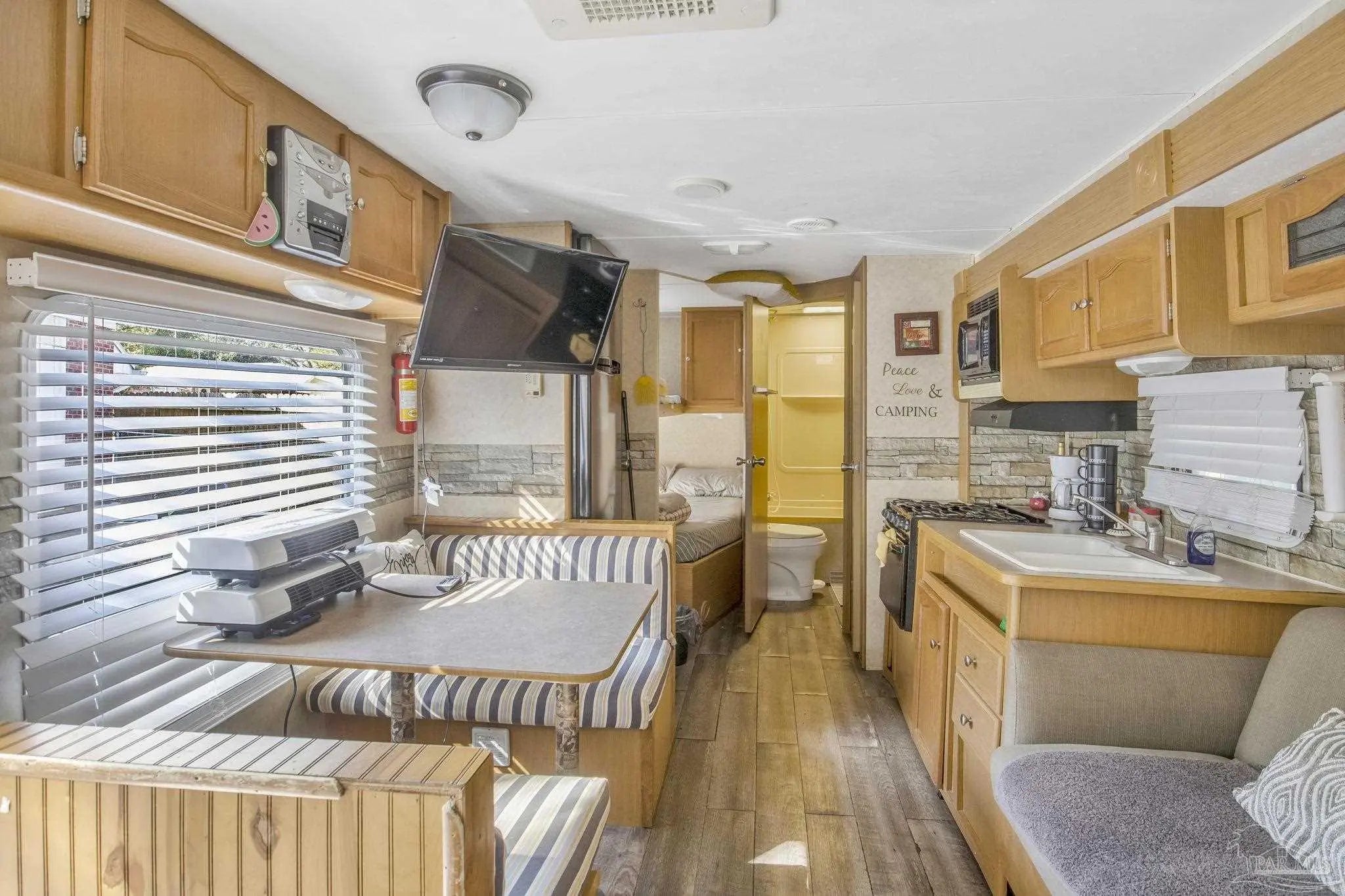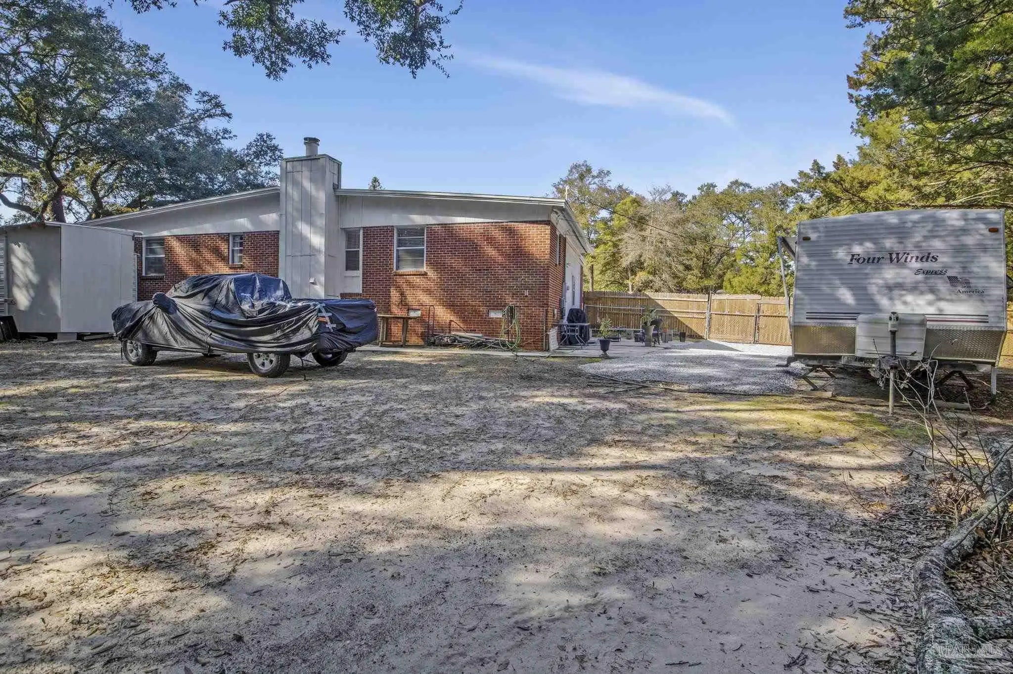Welcome to this charming home situated on a spacious corner lot. This residence features three bedrooms and one bathroom, with hardwood flooring and an open living space highlighted by a wood-burning fireplace. The kitchen is equipped with modern appliances, ample cabinetry, and a dedicated pantry. Key updates include a new roof 2021 and a new electrical panel 2021, bot The property also offers a fenced-in yard and additional outdoor storage. Notably, the sale includes a camper currently utilized as an Airbnb, and the property is equipped with an RV hookup. For convenience, the laundry area is located inside the garage.