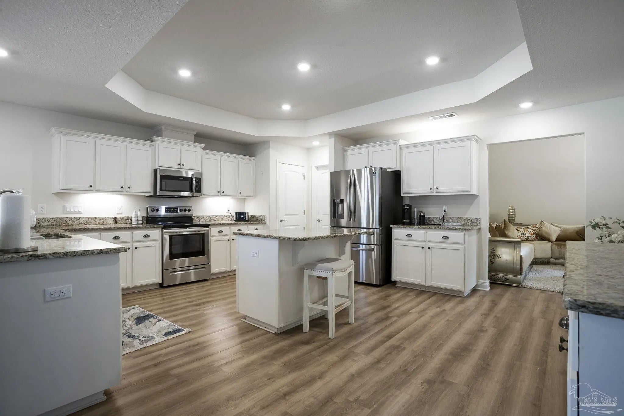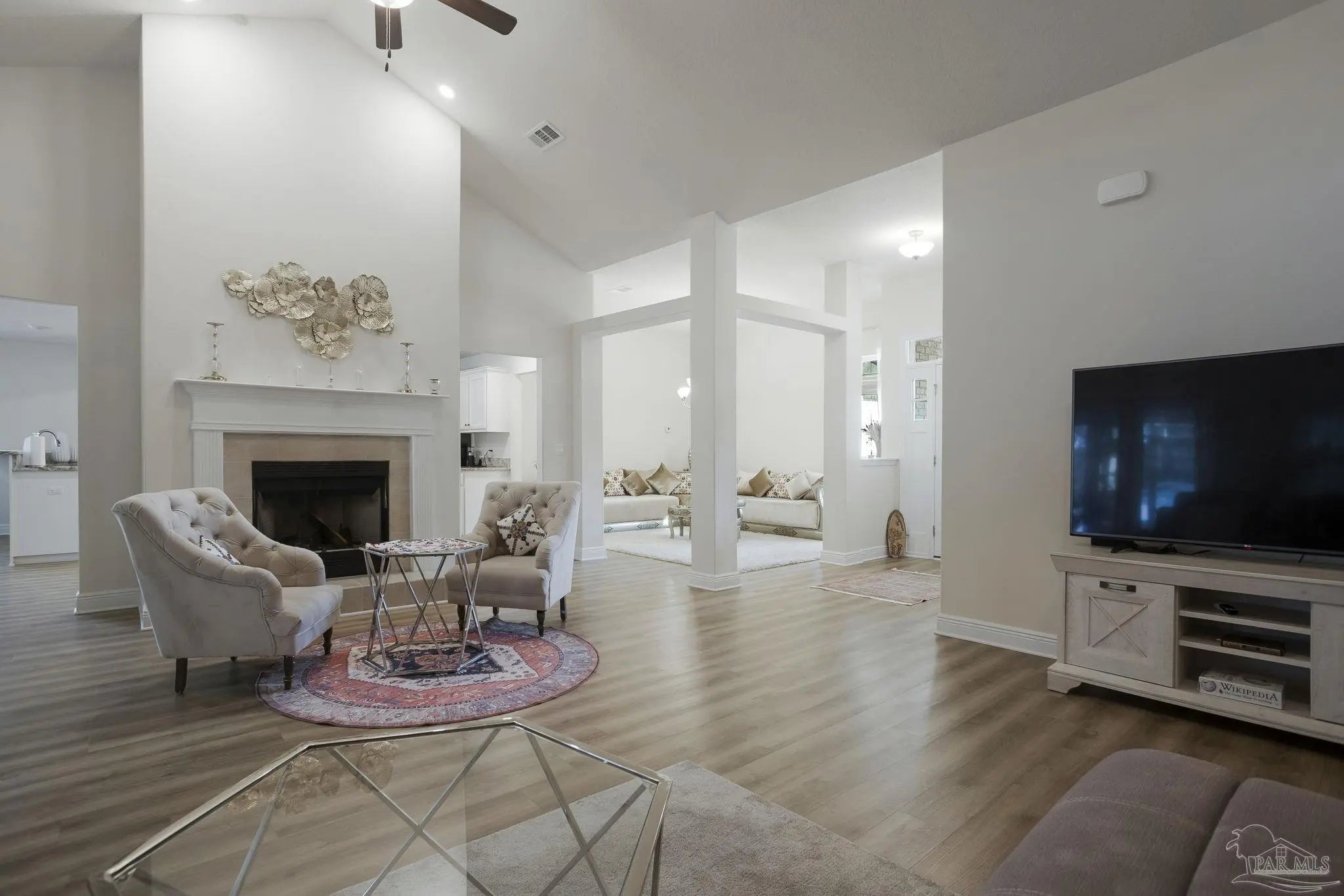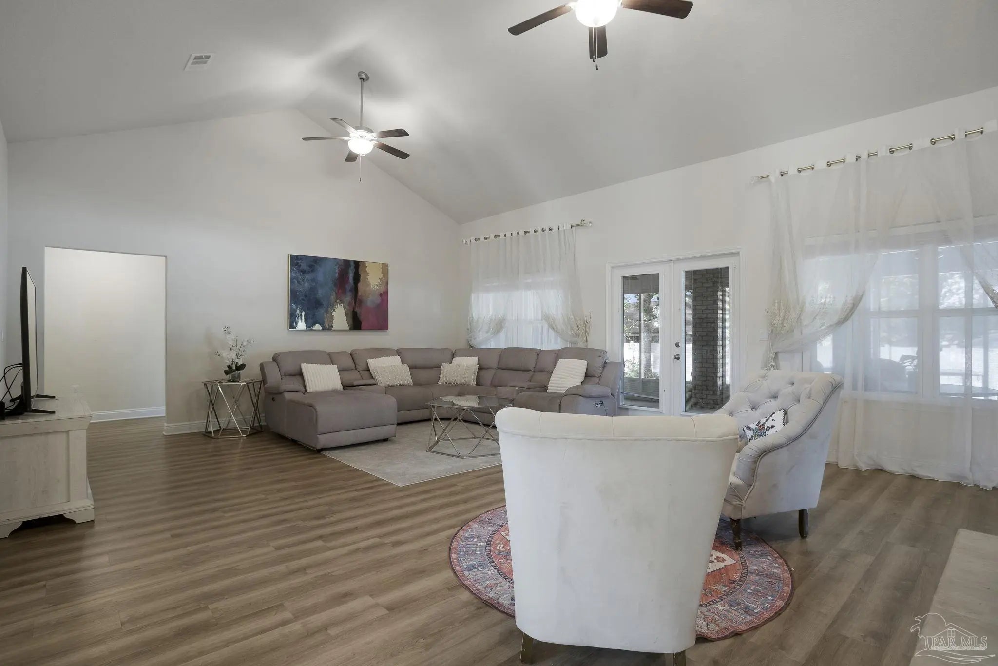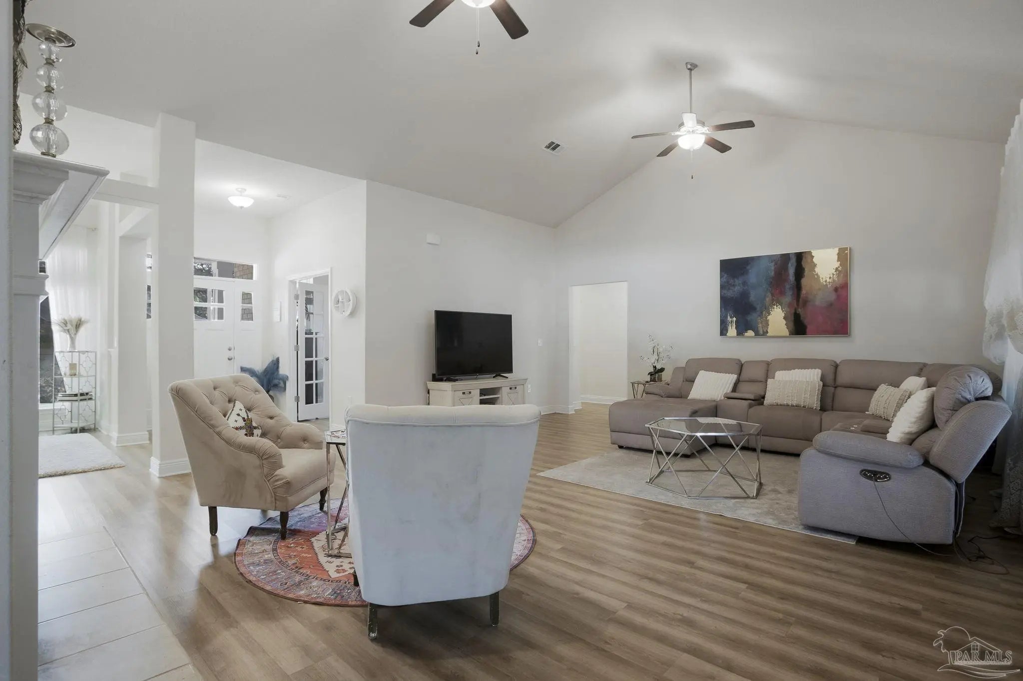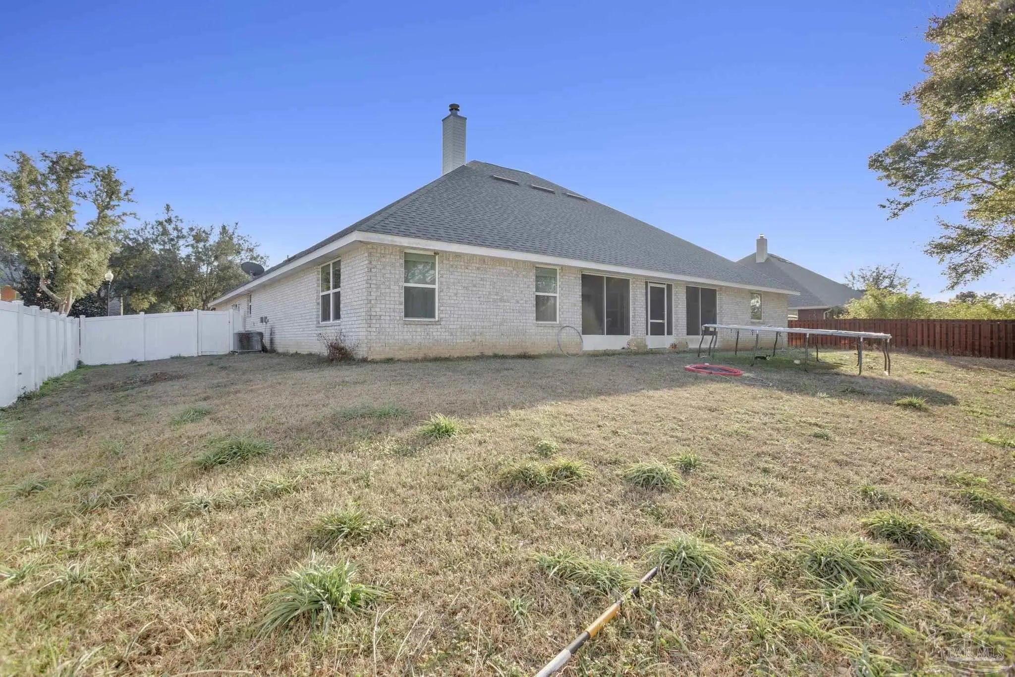 The wait is over! Welcome to the home you’ve been searching for in the highly desirable Holley by the Sea neighborhood, and yes, it’s all-brick! From the moment you arrive, you’ll notice the inviting front entrance and spacious two-car garage. Step inside the foyer and you’re greeted with a formal dining room to the right and a private office to the left, ideal for working from home or creating your own flex space. The living room features high ceilings and a cozy fireplace, making it the perfect place to relax and unwind. The kitchen checks all the boxes: white cabinetry, granite countertops, stainless steel appliances, a center island, a breakfast nook, a pantry, and ample storage. Just off the kitchen, you’ll find the laundry room with convenient access to the garage. The primary suite offers generous space for a king-sized bed and features LVP flooring. The ensuite bath is a retreat, featuring a tiled walk-in shower, a soaking tub, double granite vanities, and a private water closet. Three additional bedrooms share a full bath, complete with granite countertops and a tub/shower combination. Out back, the screened patio allows you to enjoy Florida living year-round. The spacious backyard is ready for memory-making plenty of room to entertain, relax, and roast marshmallows with your favorite people. This home is ready for you to make it your own!