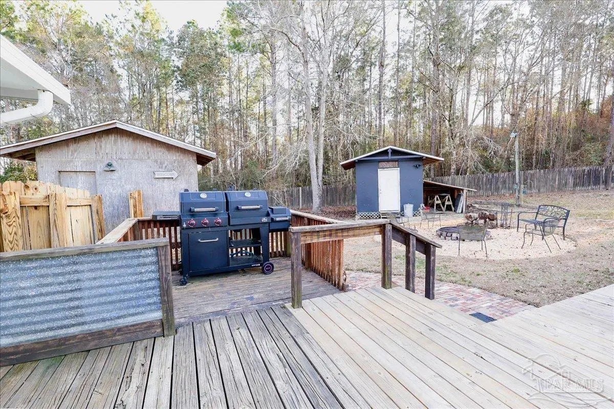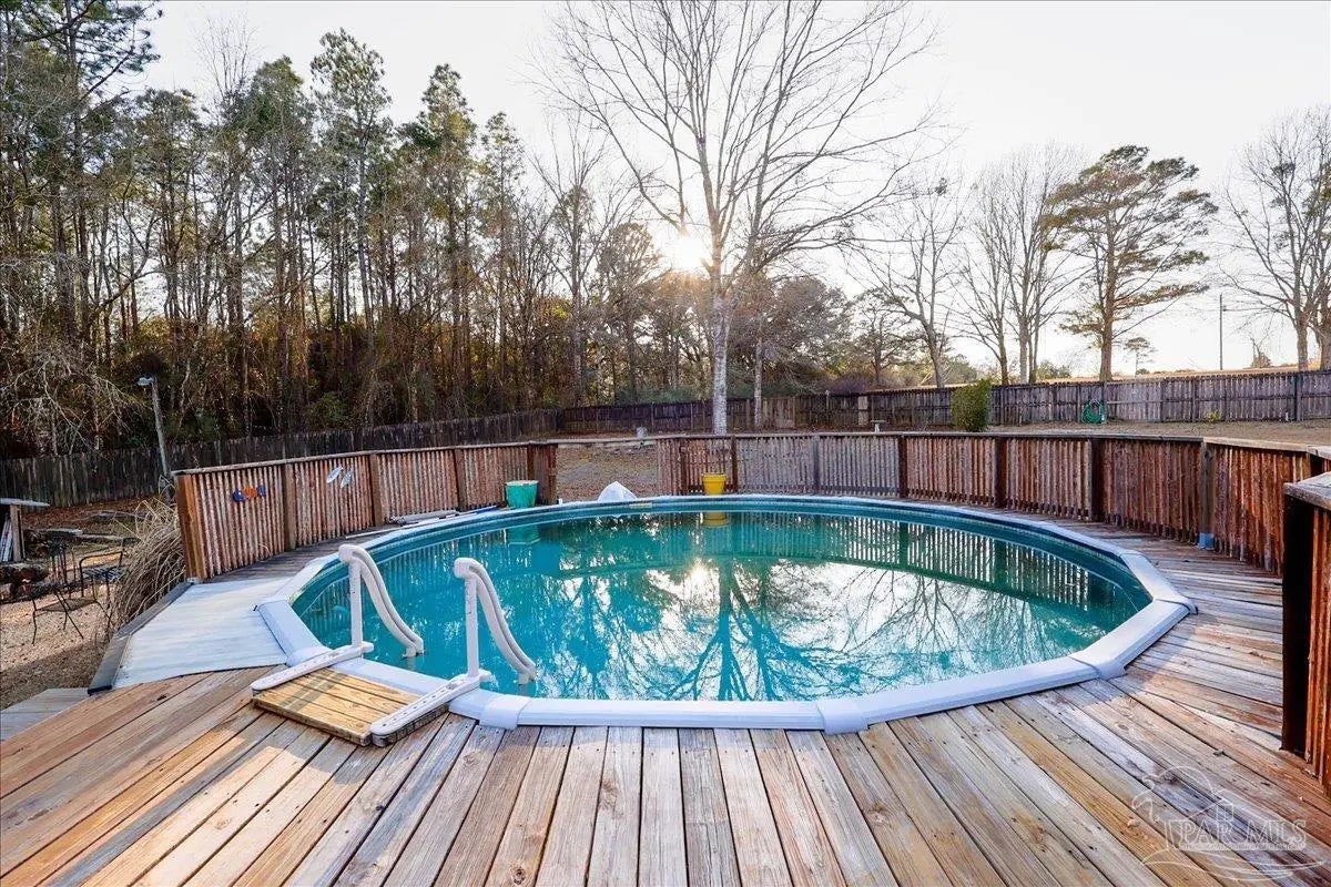This delightful home features 3 spacious bedrooms and 1.5 bathrooms, perfect for families or those seeking extra space. The inviting living room provides a comfortable area for relaxation, while the dining room is ideal for entertaining. The galley kitchen offers a unique design, enhancing your culinary experience, and the extra-large in-side laundry room boasts ample storage with convenient shelving. Step outside to enjoy the above-ground pool, beautifully encased by a wooden deck that gives it the appearance of an in-ground pool. Sit around the outdoor firepit with family and friends. Two large outdoor utility sheds provide additional storage options. The property is fully fenced, ensuring privacy and security, and features a long driveway. Set on a stunning 1.1583 acres, this home is perfect for family outings and outdoor enjoyment. Don't miss the chance to make this beautiful property your own!