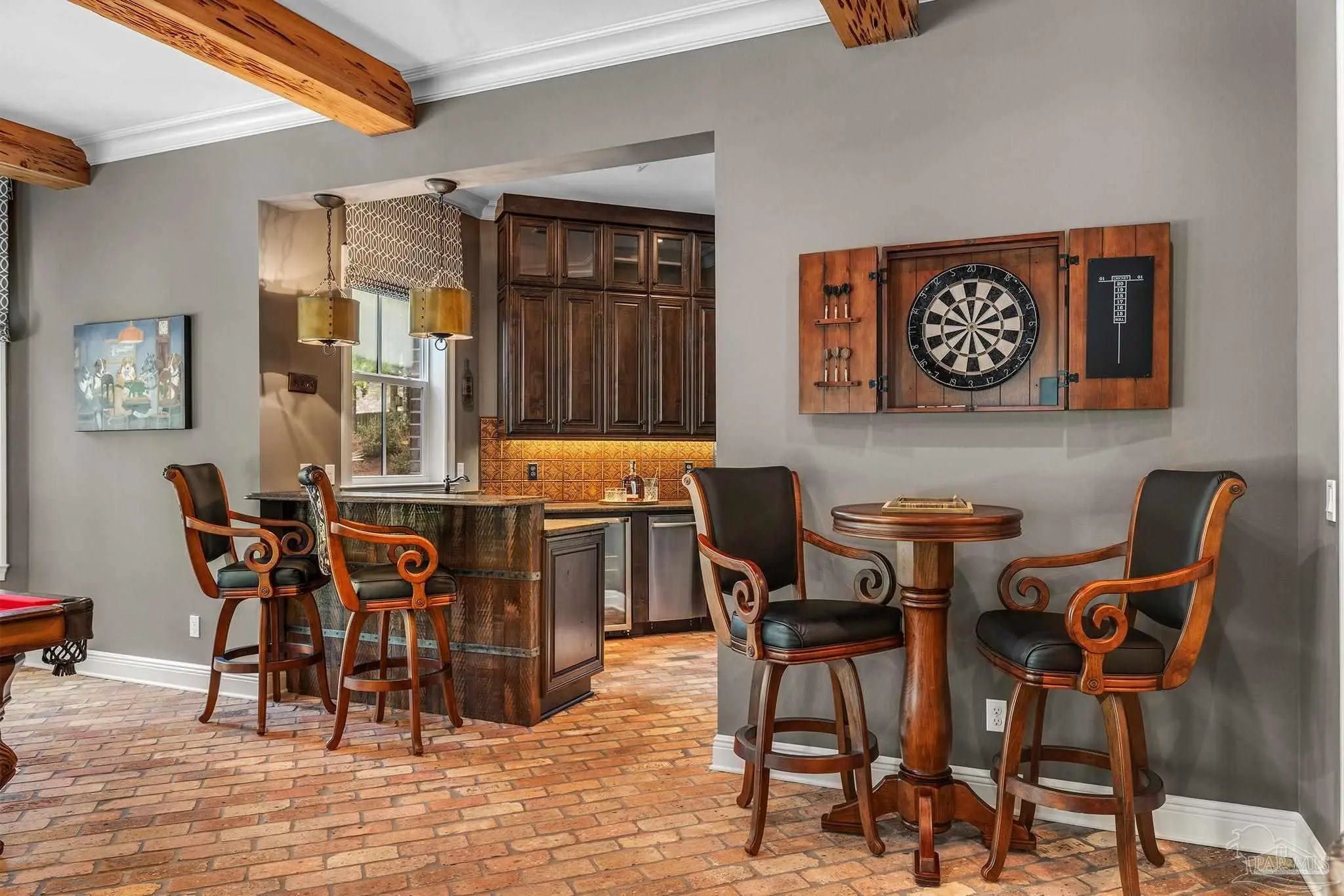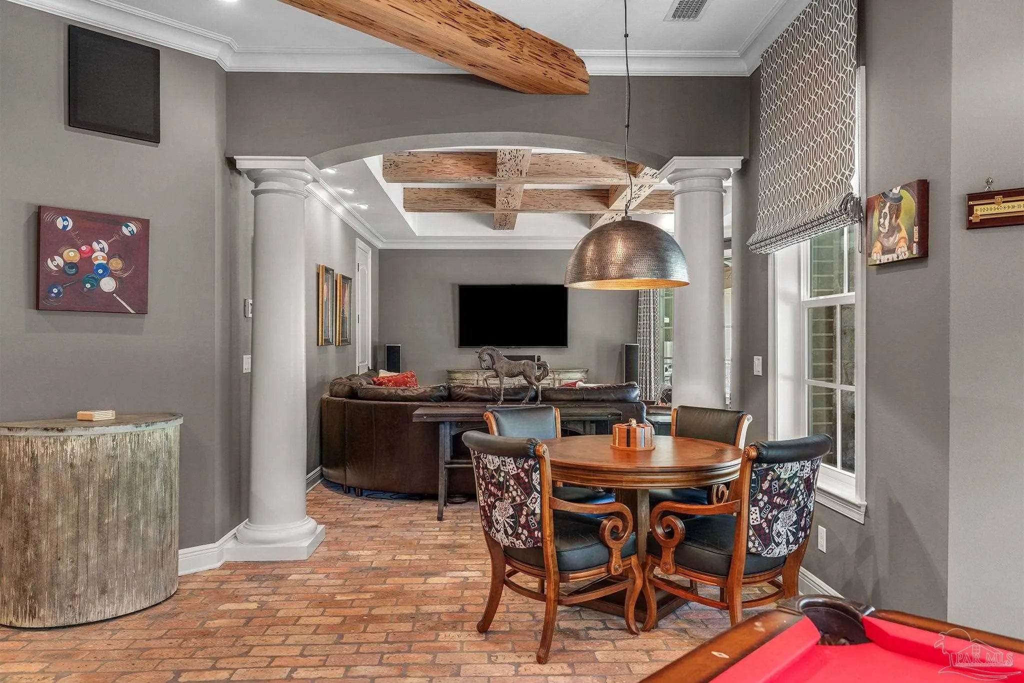 - Storage, Baseboards, Bookcases, Chair Rail, Crown Molding, Elevator, High Ceilings, Recessed Lighting, Sound System, Wet Bar, Attached Self Contained Living Area, Game Room, Media Room, Office/Study, Wine Storage Room