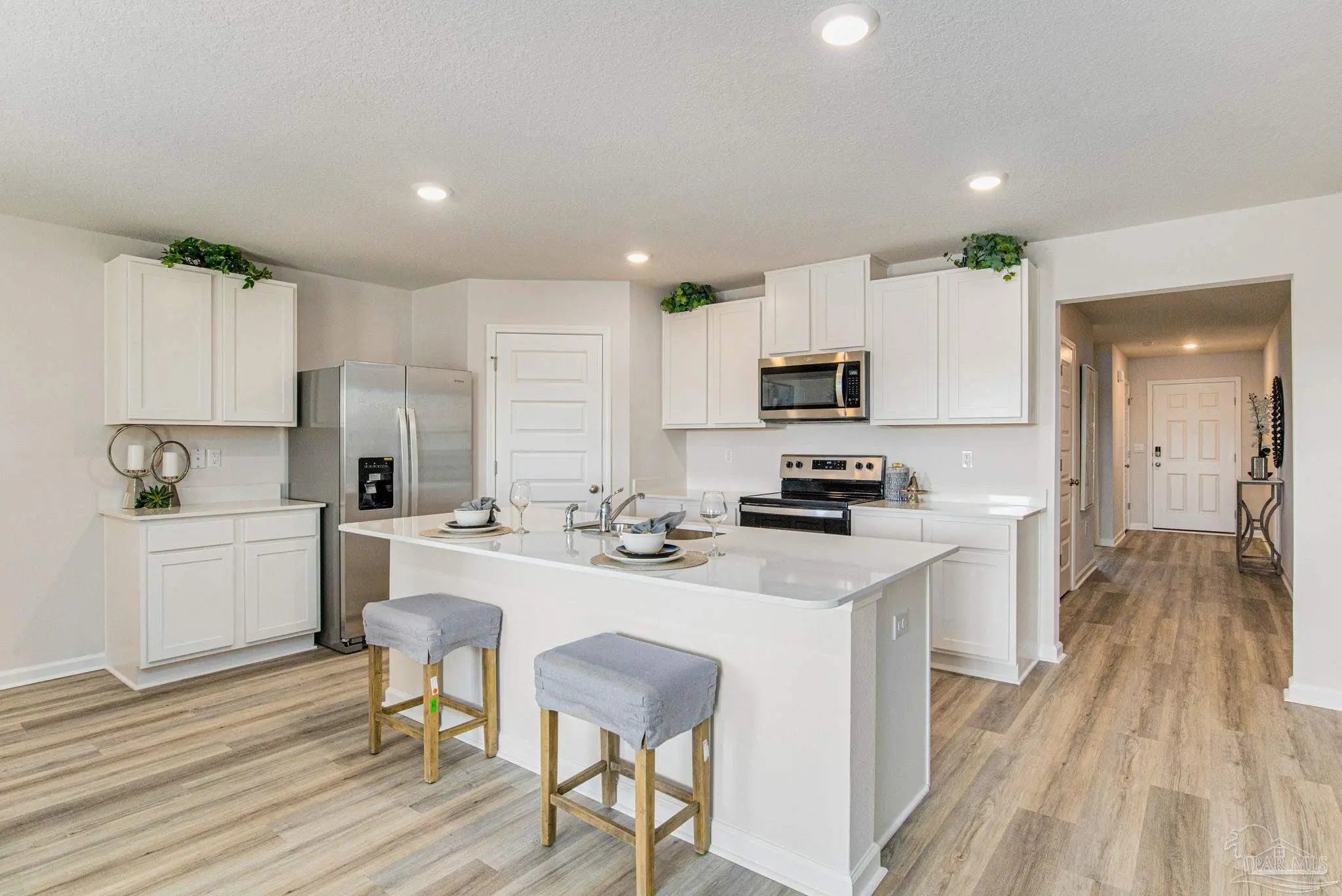 Welcome to 2030 Limpkin St at Sanctuary! Step inside the Cali plan, a stunning 4 bed, 2 bath home. As you enter, you'll be greeted by three guest bedrooms, each boasting spacious closets. Moving towards the back of the house, you'll discover a captivating open concept kitchen and living room area. The kitchen features a stylish island with beautiful quartz countertops, a generous pantry, and sleek stainless-steel appliances. Bedroom 1 is conveniently located just off the living area and offers a luxurious bathroom with a roomy walk-in closet. The interior of this home is adorned with beautiful LVP flooring throughout, complemented by cozy carpeting in the bedrooms. This home includes a Home is Connected smart home technology package which allows you to control your home with your smart device while near or away. Future residents will enjoy exceptional community amenities including a sparkling pool, relaxing cabana, and a grilling area. Schedule your tour today!