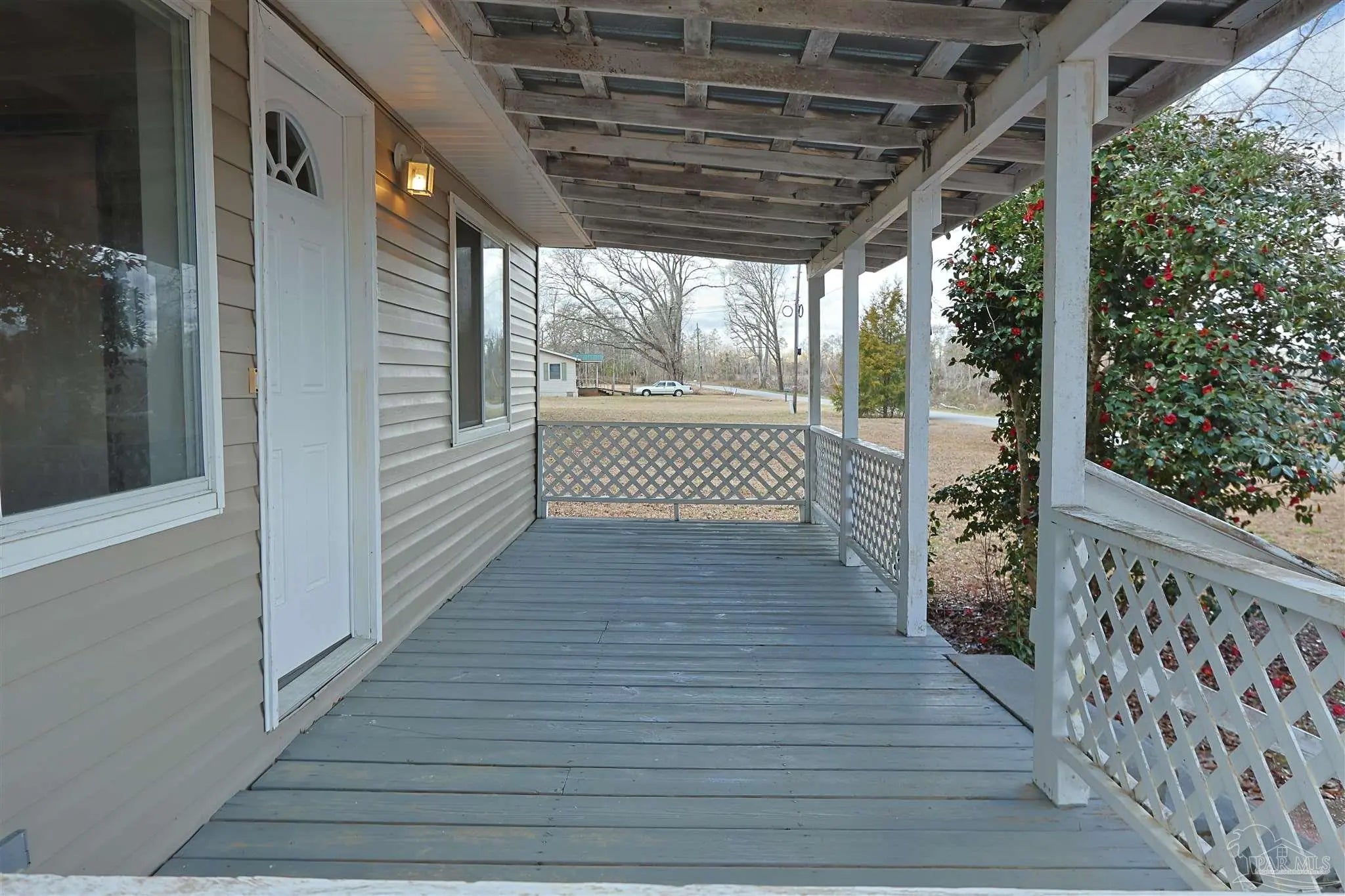 New LVP in Kitchen & Living Room ~ FRESH PAINT Throughout SEPARATE CARPORT AND WORKSHOP Come see this adorable 2-bedroom, 2-bath cottage in Jay, FL, perfectly situated on a corner lot. The oversized front porch is ideal for enjoying nature and your morning coffee. Inside, you’re welcomed by beautiful new flooring that flows from the living room into the kitchen, highlighting the open-concept layout. The primary bedroom is conveniently located just off the kitchen and features two closets. One in the bedroom and another in the en-suite bath. The second bedroom is located close to the front door and offers ample space as well. Toward the back of the home, the second bathroom and a generously sized indoor laundry room, complete with room for shelving or cabinets. Set on a half-acre lot, the property also includes a large carport and a separate storage building, for handy outdoor projects and extra space.