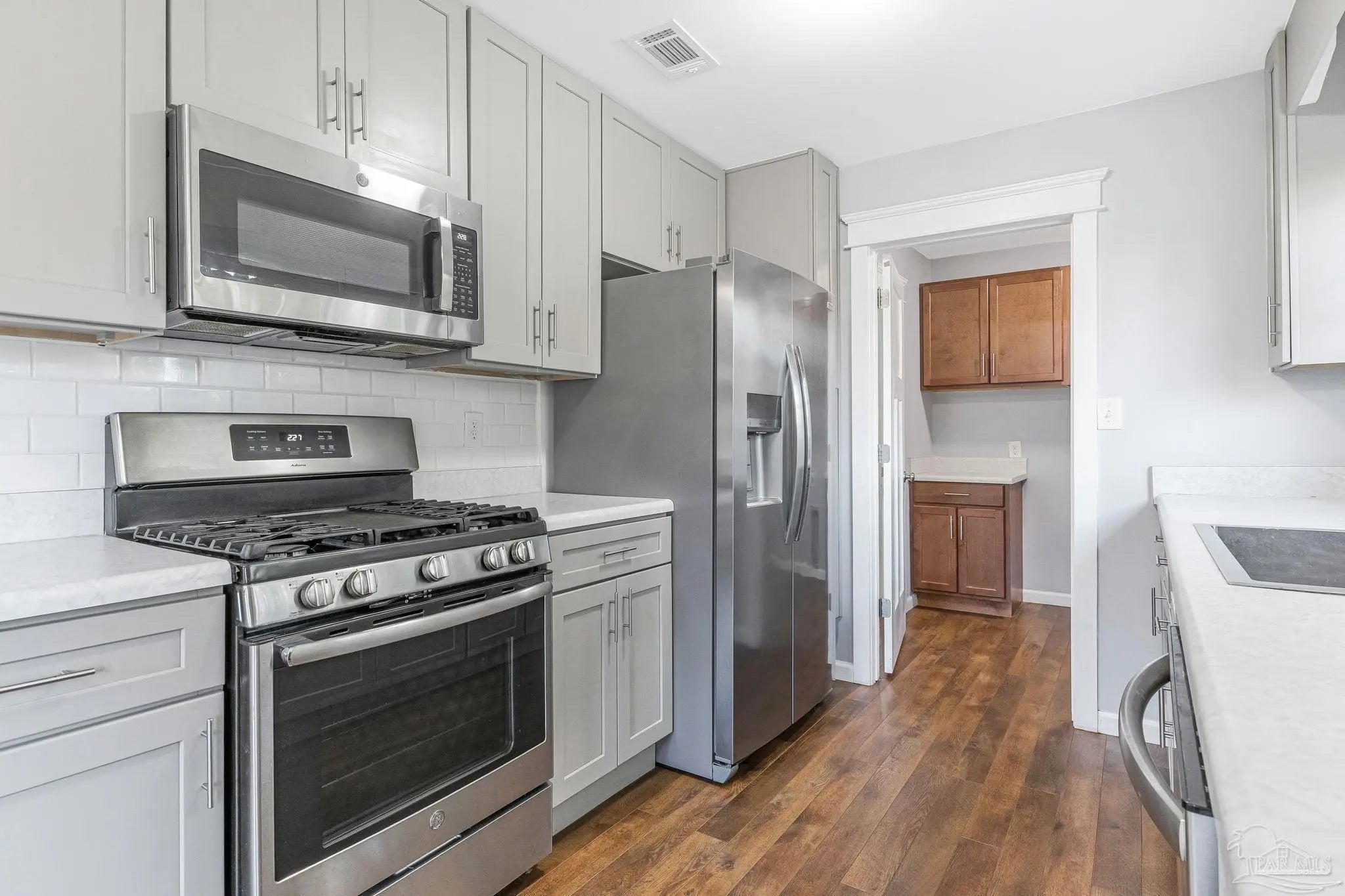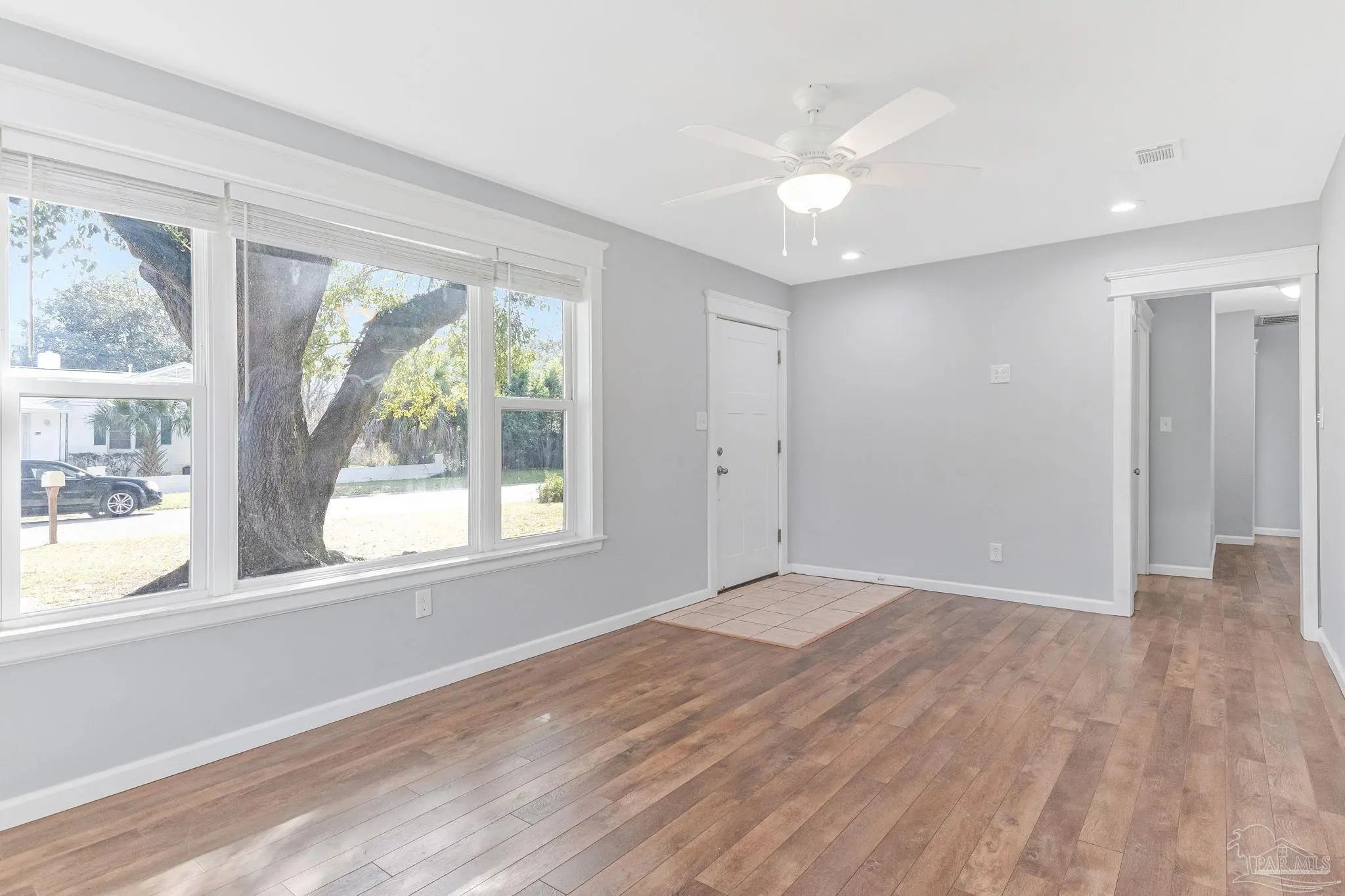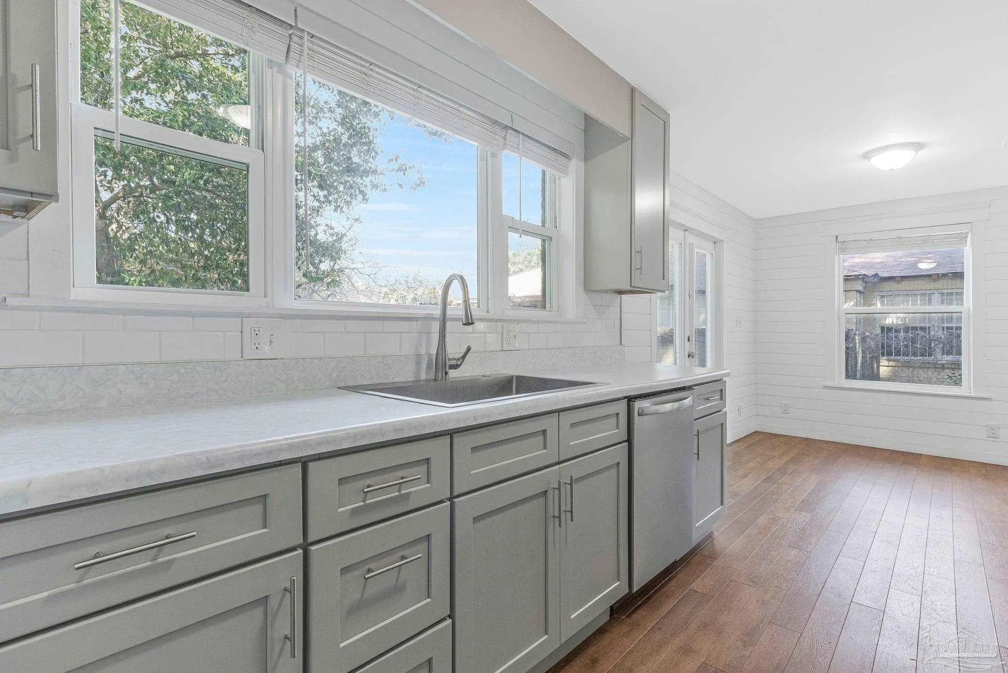 Welcome to 810 W. Lakeview Avenue, a charming 1944 Craftsman beautifully renovated and ideally located near downtown Pensacola. Offering 1,162 square feet, this 3-bedroom, 1-bath home blends classic character with the peace of mind and comfort of modern updates. Step inside to a bright, inviting layout featuring durable vinyl plank flooring throughout the main living areas and comfortable carpet in the bedrooms. The updated kitchen showcases stainless steel appliances, ample cabinetry, generous counter space, and an easy flow into the dining area perfect for both everyday living and casual entertaining. The spacious living room is filled with natural light and creates a warm welcome from the moment you enter. The whole home was renovated less than five years ago and included updates to electrical and plumbing systems, new HVAC and ductwork, a gas tankless water heater, hurricane impact windows, spray foam insulation, and a metal roof, providing peace of mind and long-term efficiency. French doors lead to the expansive rear deck, an ideal spot for relaxing evenings under the mature shade trees. Situated on nearly a quarter-acre lot, the backyard offers generous space for outdoor enjoyment, gardening, or potential future expansion such as an accessory dwelling unit or garage. Whether you’re searching for your first home, looking to downsize, or seeking a potential income-producing property close to downtown, this gem offers timeless charm with modern convenience. Schedule your private showing to experience it in person.