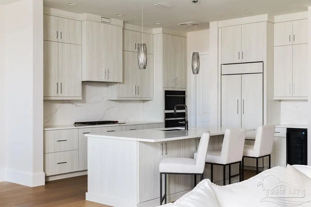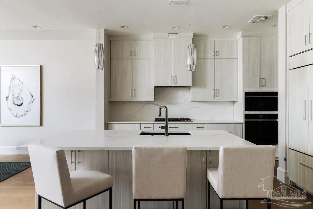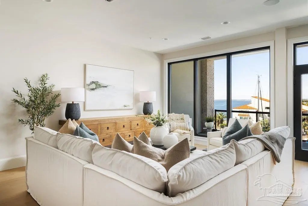 OPEN HOUSE THIS FRIDAY 12-3PM!! Discover a new standard of waterfront refinement at Admirals Row, Pensacola’s most prestigious new address. One of only two fully completed and move-in-ready residences, this exceptional offering represents a rare opportunity to own within the city’s premier luxury development. Commanding the southernmost point of Palafox Street in the heart of downtown, this exquisitely appointed two-bedroom, two-bath residence captures uninterrupted panoramic views of Pensacola Bay, the Palafox Marina, and the iconic Blue Wahoos Stadium—an ever-changing backdrop of water, sky, and city lights. Crafted for the most discerning buyer, the interiors reflect timeless sophistication and superior construction. Soaring 10-foot ceilings and walls of glass bathe the residence in natural light, while solid concrete and steel construction provide enduring strength, privacy, and peace of mind. Every detail has been curated to deliver both elegance and performance. The chef’s kitchen is a statement in luxury, appointed with Sub-Zero refrigeration, a Wolf gas range and oven, a Cove dishwasher, and premium finishes that seamlessly blend design and functionality. Refined materials and impeccable craftsmanship elevate every space throughout the home. Residents enjoy the exclusivity of two premium gated parking spaces within the covered garage, along with a private, climate-controlled storage suite, an uncommon convenience in downtown waterfront living. Step beyond your door into a vibrant, walkable coastal lifestyle surrounded by award-winning dining, boutique shopping, the marina, and Pensacola’s most celebrated cultural and entertainment venues. Opportunities of this caliber are exceptionally rare. Secure your private showing today and claim your place at one of Pensacola’s most distinguished waterfront addresses.