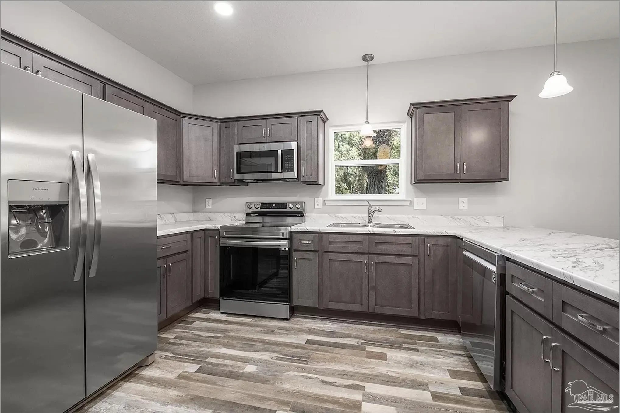 618 Rentz Ave is a newer construction 3 bedroom, 2 bath home just minutes from Navy Point, Pensacola NAS, Corry Station and Perdido Key. Inside you'll find luxury vinyl plank flooring throughout for a super low-maintenance rental. The 9-foot-high ceilings paired with recessed lighting create an airy and bright atmosphere throughout. Upgraded cabinetry, stainless appliances and a separate desk area the kitchen is perfect for entertaining. Large bedrooms fit plenty of furniture and the gas heater and water heater are super energy. Indoor laundry with washer and dryer included on this rental.