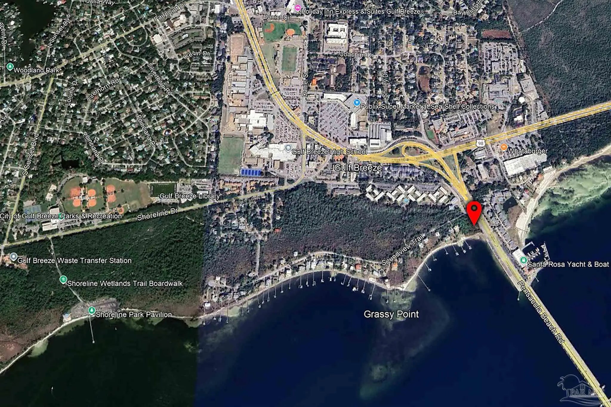 Don’t miss this rare opportunity to own a half-acre waterfront lot with approximately 85 feet of water frontage in one of Gulf Breeze’s most desirable locations. Enjoy breathtaking views and watch the Blue Angels airshows and Pensacola Beach fireworks, all from your backyard. Located just a short walk or bike ride across the bridge to Pensacola Beach, this property offers the perfect blend of coastal living and convenience. Cruise around in your golf cart or take a leisurely stroll to the Gulf Breeze Rec Center and Shoreline Park. In close proximity to top-rated Gulf Breeze schools, shopping, dining, and downtown Pensacola.