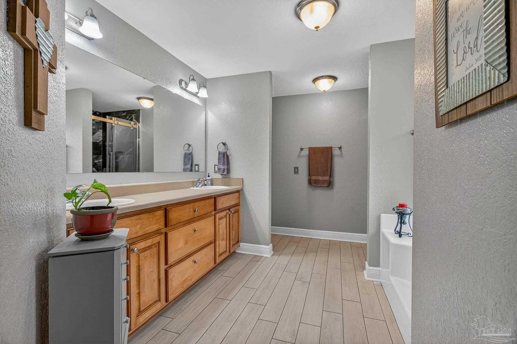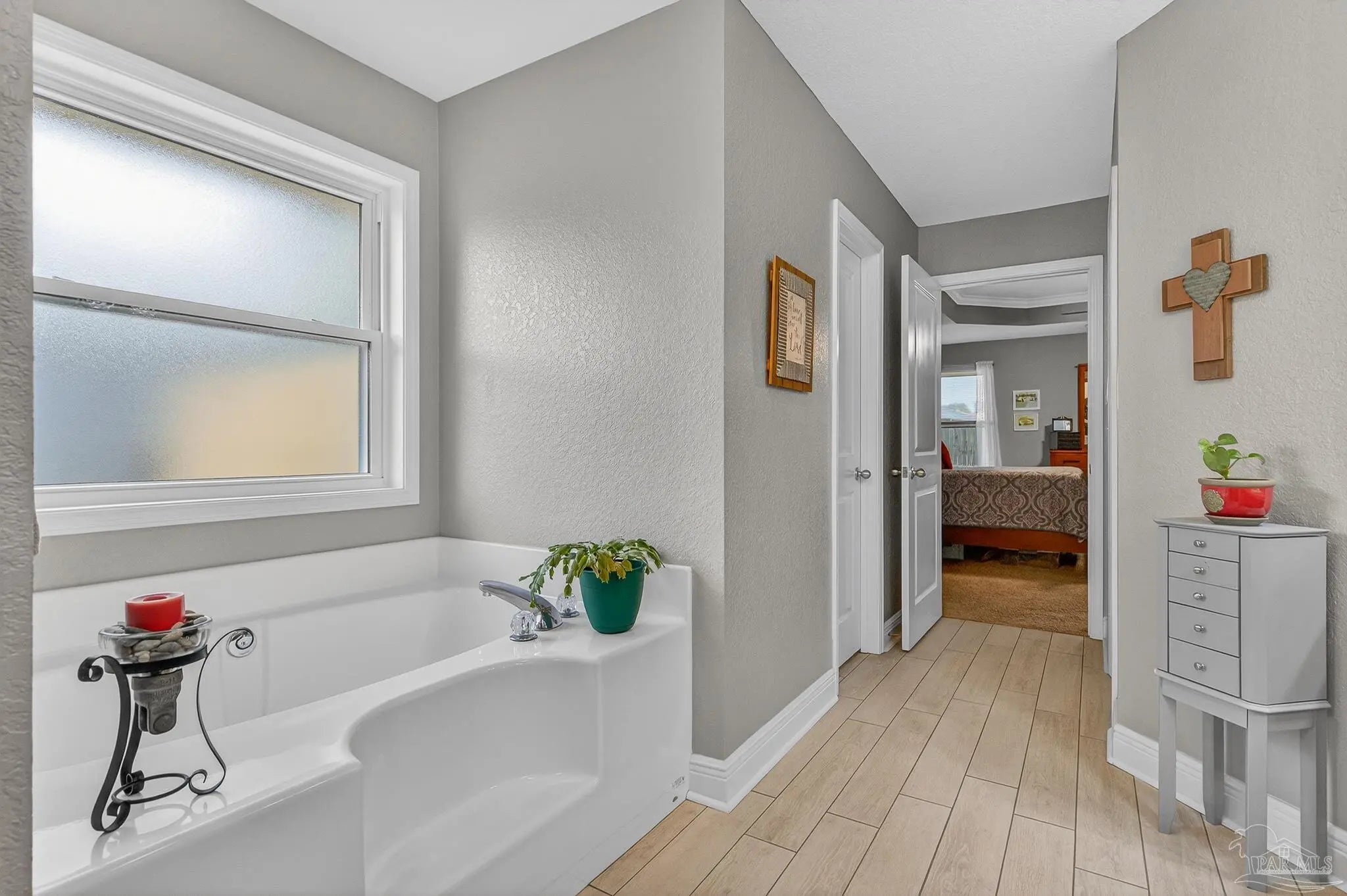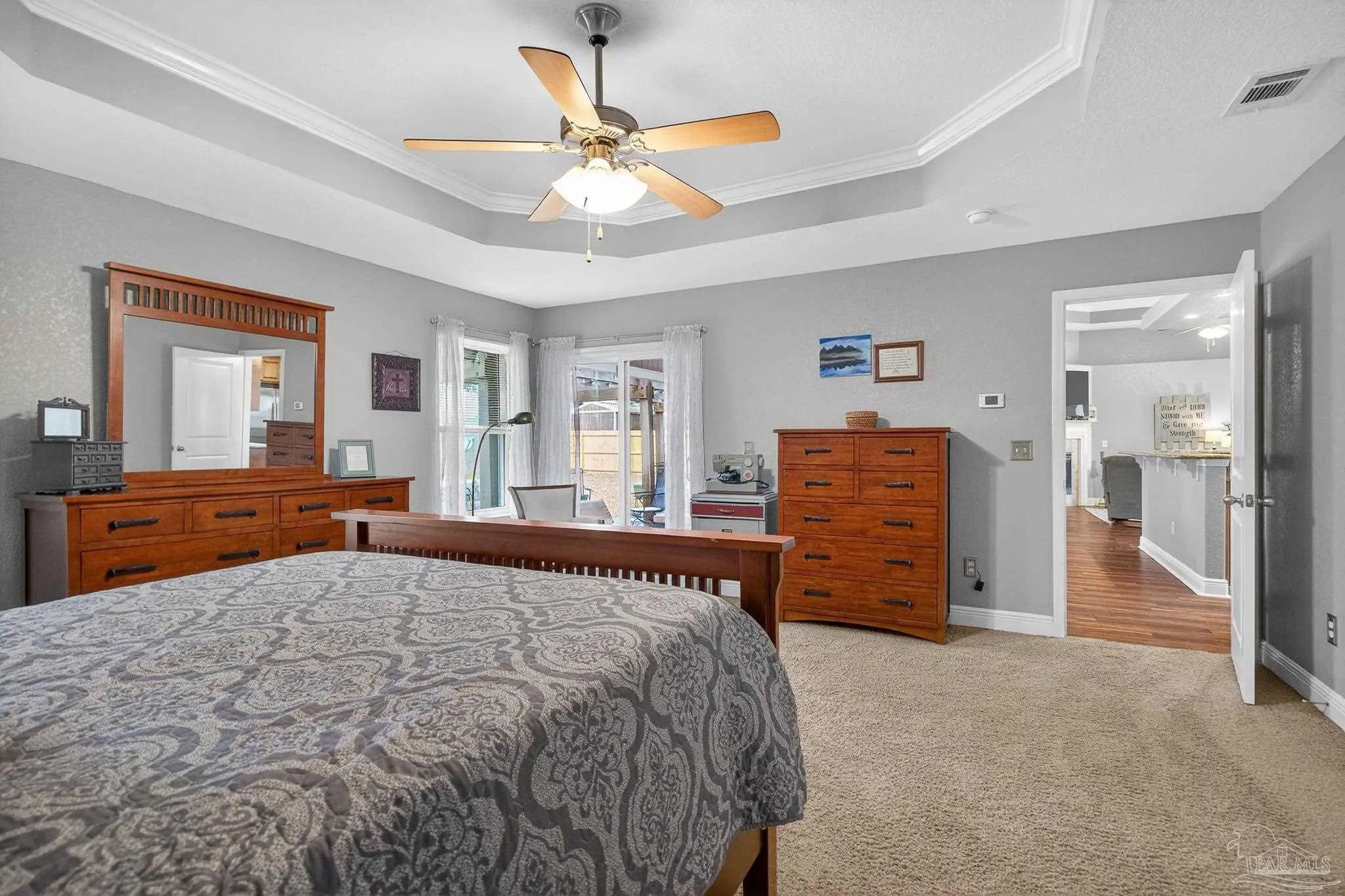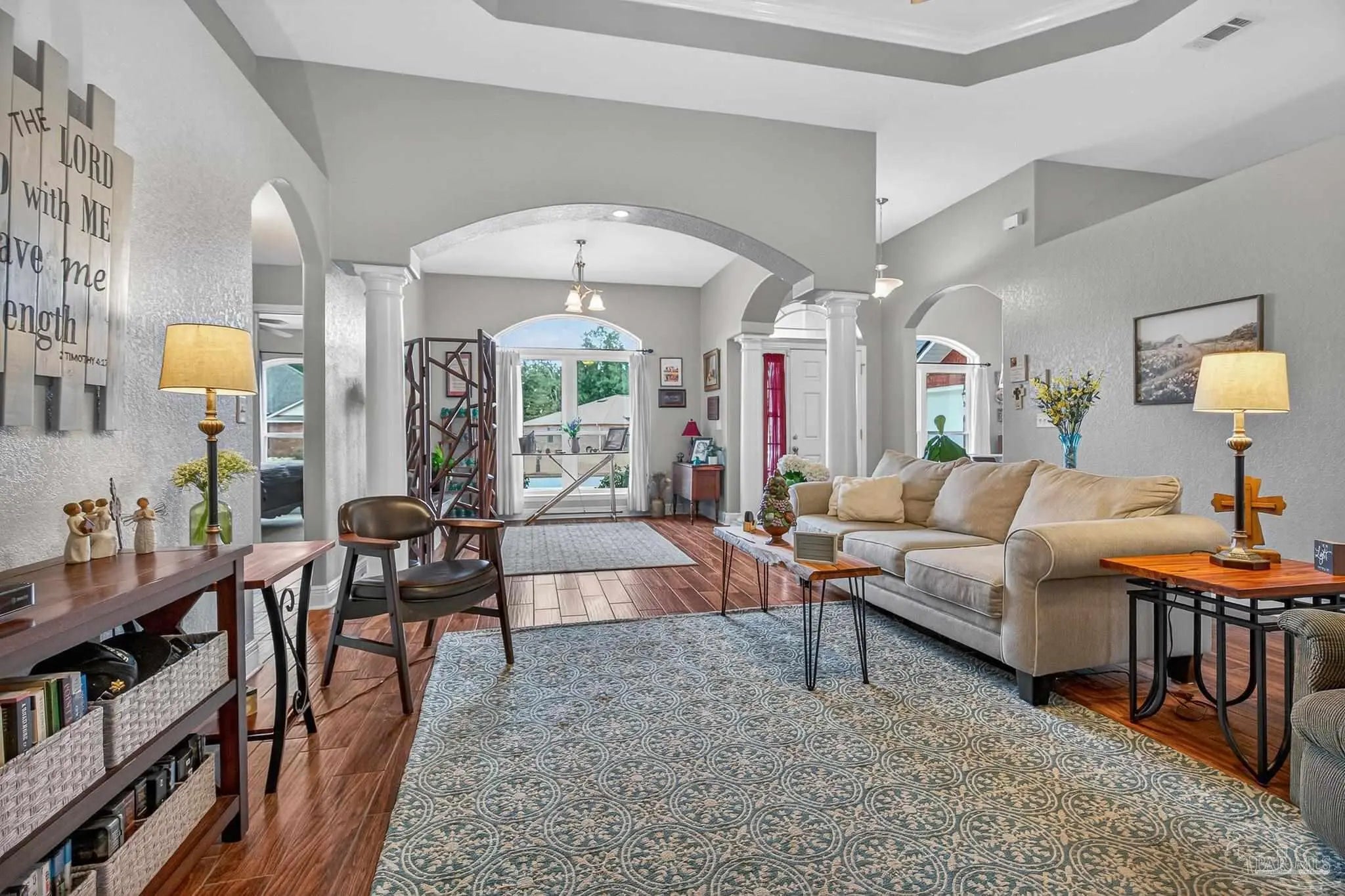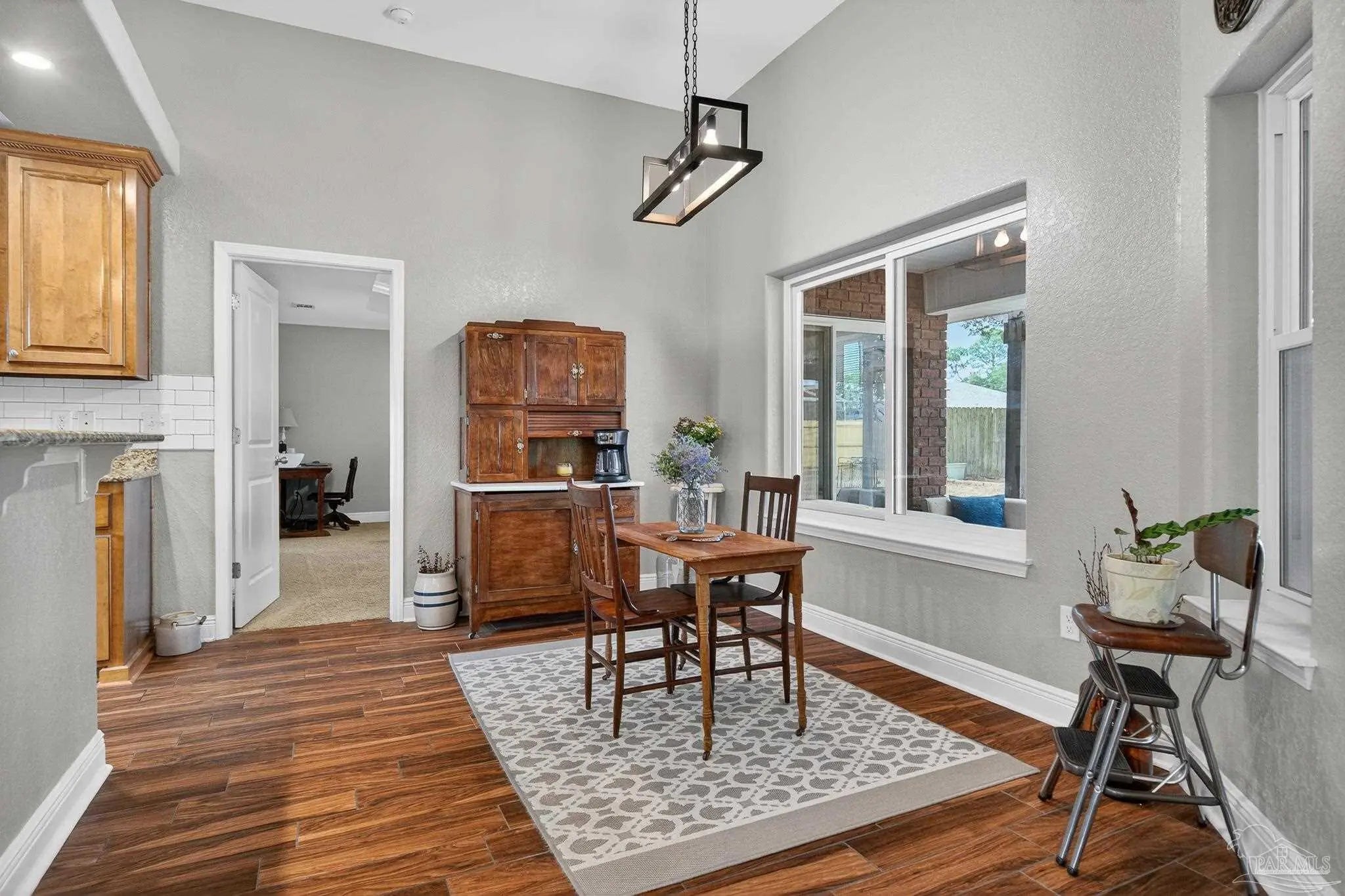 WELCOME HOME! OPEN HOUSE 3/29 FROM 1PM-4PM. Imagine relaxing on your back porch, listening to the birds sing, beneath your pergola in this beautiful home located in the heart of Pace. Nestled on a charming tree-lined street with sidewalks, this 4-bedroom, 3-bathroom home sits on a spacious .26-acre lot and offers both comfort and community. Step inside to find wood look tile in the main areas, fireplace with mantle, perfect for hosting gatherings, and a thoughtfully designed layout ideal for everyday living. The kitchen features real solid wood cabinets, plenty of counter space, walk-in pantry, adding warmth and timeless quality to the space. The laundry room has extra space for a freezer or add a little mud room. Enjoy outdoor living at its best with a covered back porch, pergola, and additional seating area — all within a fully fenced backyard. The courtyard-entry garage includes extra space perfect for hobbies, storage, or a workshop. This is one of the few homes in the subdivision built by Thomas Homes, known for quality craftsmanship. Recent updates include: New roof (2/2026), New Low-E windows (1/2026), Hot water heater (4/2025), HVAC (9/2022), Sides of fence (12/2025), Pergola (4/2025) Beyond the home itself, the neighborhood truly shines. Residents enjoy monthly food trucks and festive community traditions, including: 4th of July celebrations, Halloween festivities ,Christmas caroling, A lighted bike parade, Even a visit from Santa This home offers not just a place to live, but a lifestyle to love. Don’t miss out on this one — schedule your showing today!