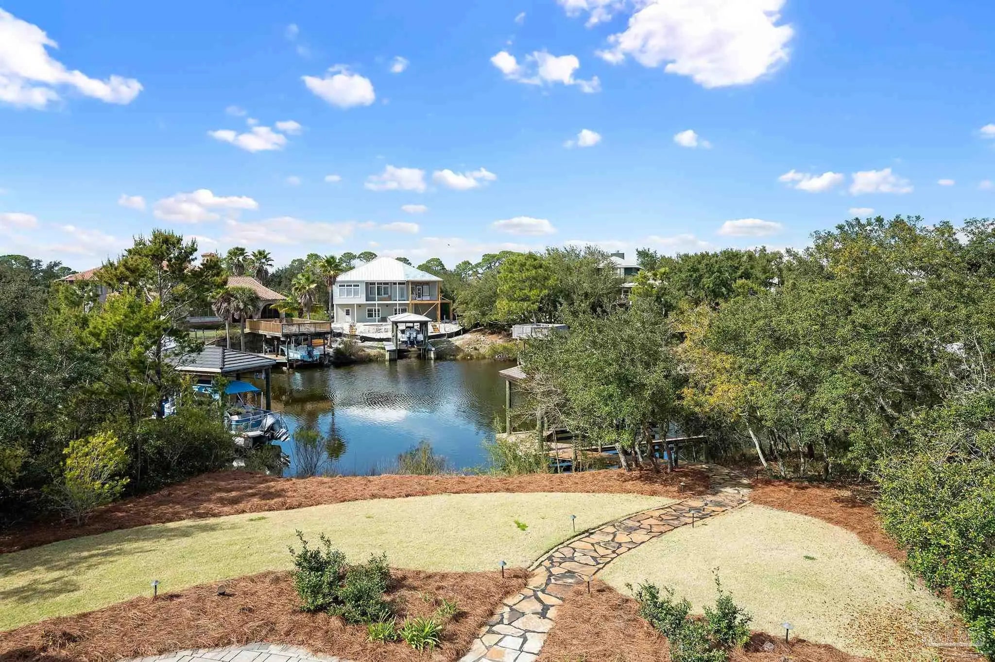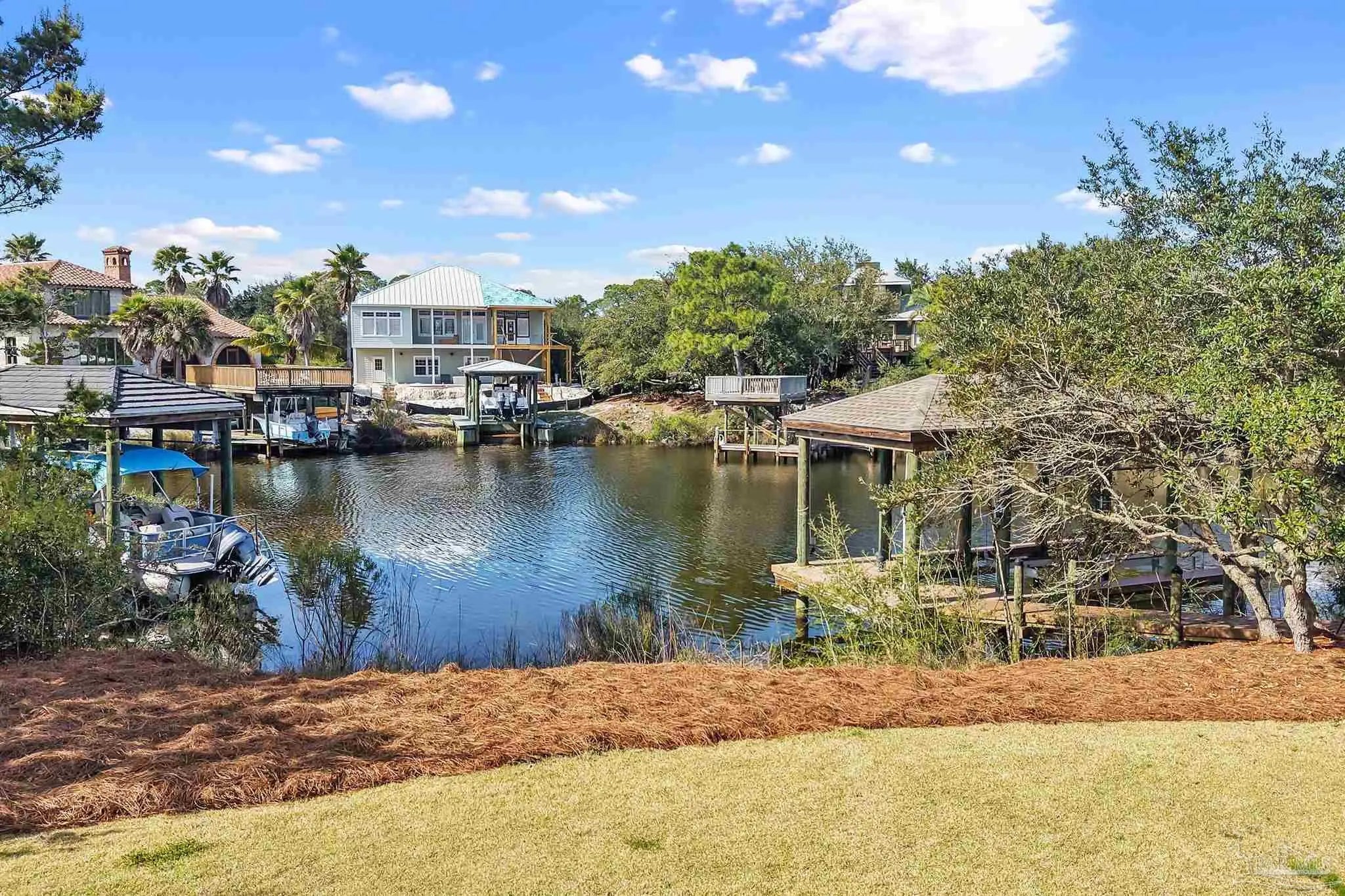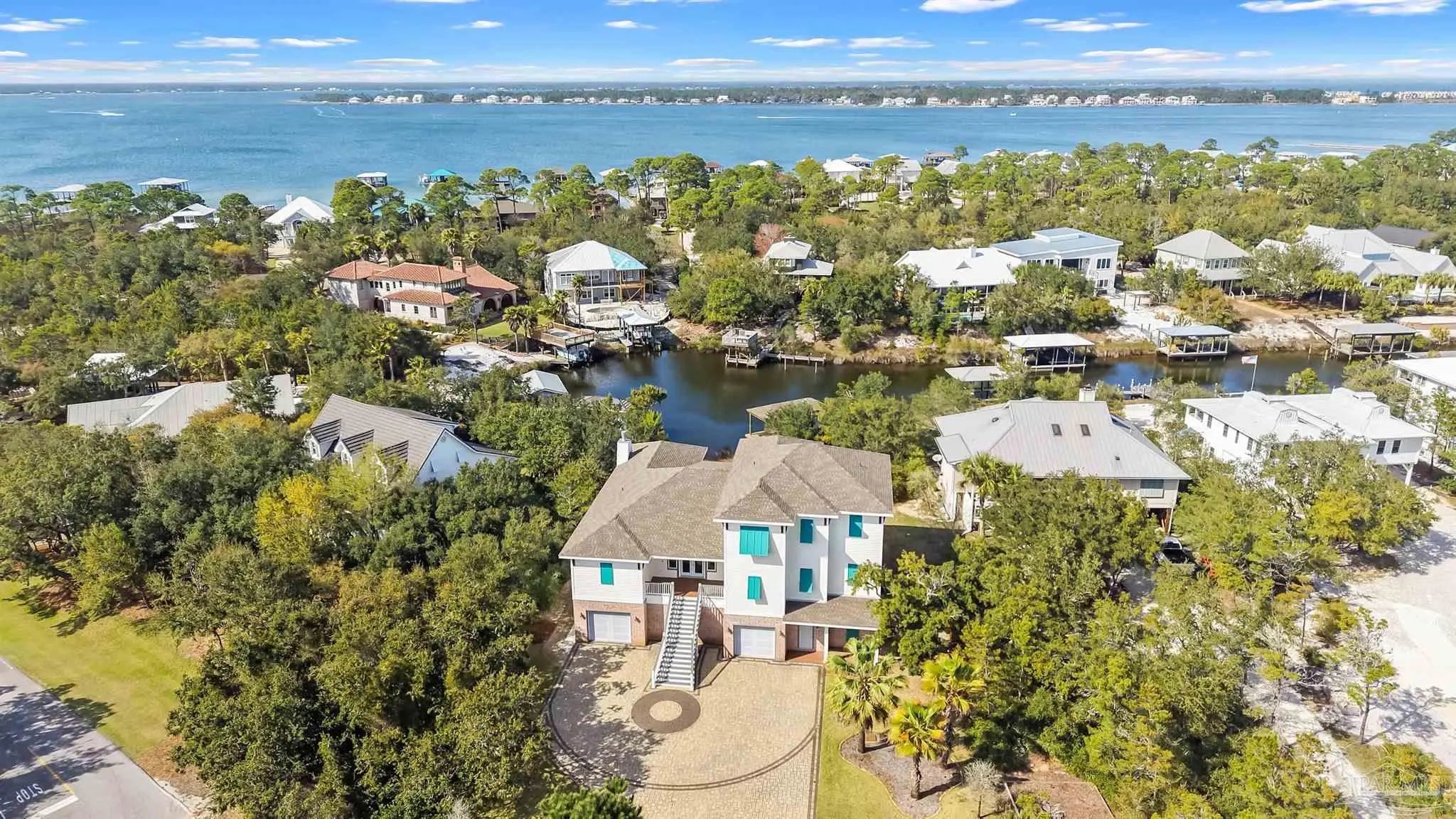 Ono Island’s Crown Jewel, perched on one of Ono Island’s highest points, private cul-de-sac, this southern charmer boasts all-things nautical. Stunning canal frontage, easy, quick open-big water access, sunset views + regular sights of pelicans! Residence has an elevator, a new boat dock and boat lift. Outdoor includes a gas log fireplace, indoor/outdoor sound system, outdoor grill, tile back patio, shuttered enclosure, backlit walkway + Trex on front steps. Master Chef’s Kitchen includes mixer lift, leathered granite, large island w/ various custom storage, dimmer lights, oversized glass globe pendants, awning cooktop, steamer & convection oven, induction oven (like gas), water faucet over stove, soft close cabinets, wine cooler, microwave in pantry, extra spice & utensil pullouts. Master BR has back door exit, scenery & water views, shiplap ceilings, walk-in closets, private master bath. Master Bath has free-standing tub, beveled glass walk-in shower, gorgeous glistening quartzite. The Living Room is breezy, open, vaulted ceilings crafted of pecky cypress + double door entries back deck. Main level Office has private balcony entry. Downstairs garage w epoxy flooring has ½ bath & welcoming room + shiplap walls. Pine paneling finishes garage w beadboard ceilings. 2 two back exits to patio. Storm & Beach Shutters. Hose pipes connected in front for water feature + plant watering. Separate private downstairs entry. Fine finishes: 4” crown, quartzite/granite, wide plank hardwood, floor outlets LR, extra thick baseboards. Also: water filtration + well sprinkler system. Backyard Stonybrook Courtyard, architectural pavers, outdoor firepit, built in gas grill + fireplace fueled by propane. Large capacity hot tub remains. Outdoor TV above stays. NEW AC Unit. Geothermal AC. New Hot H2O Heater. Washer & Dryer convey.