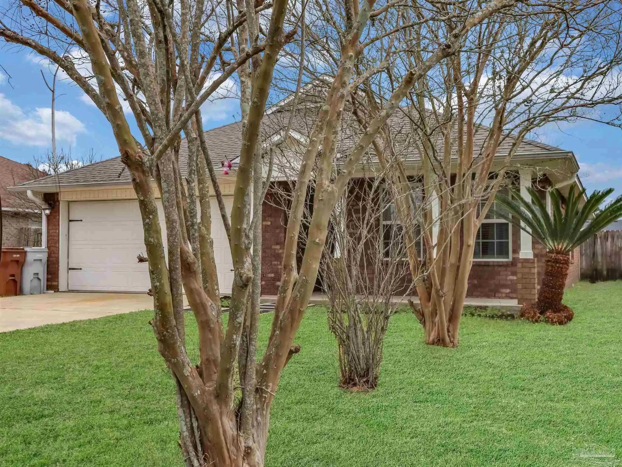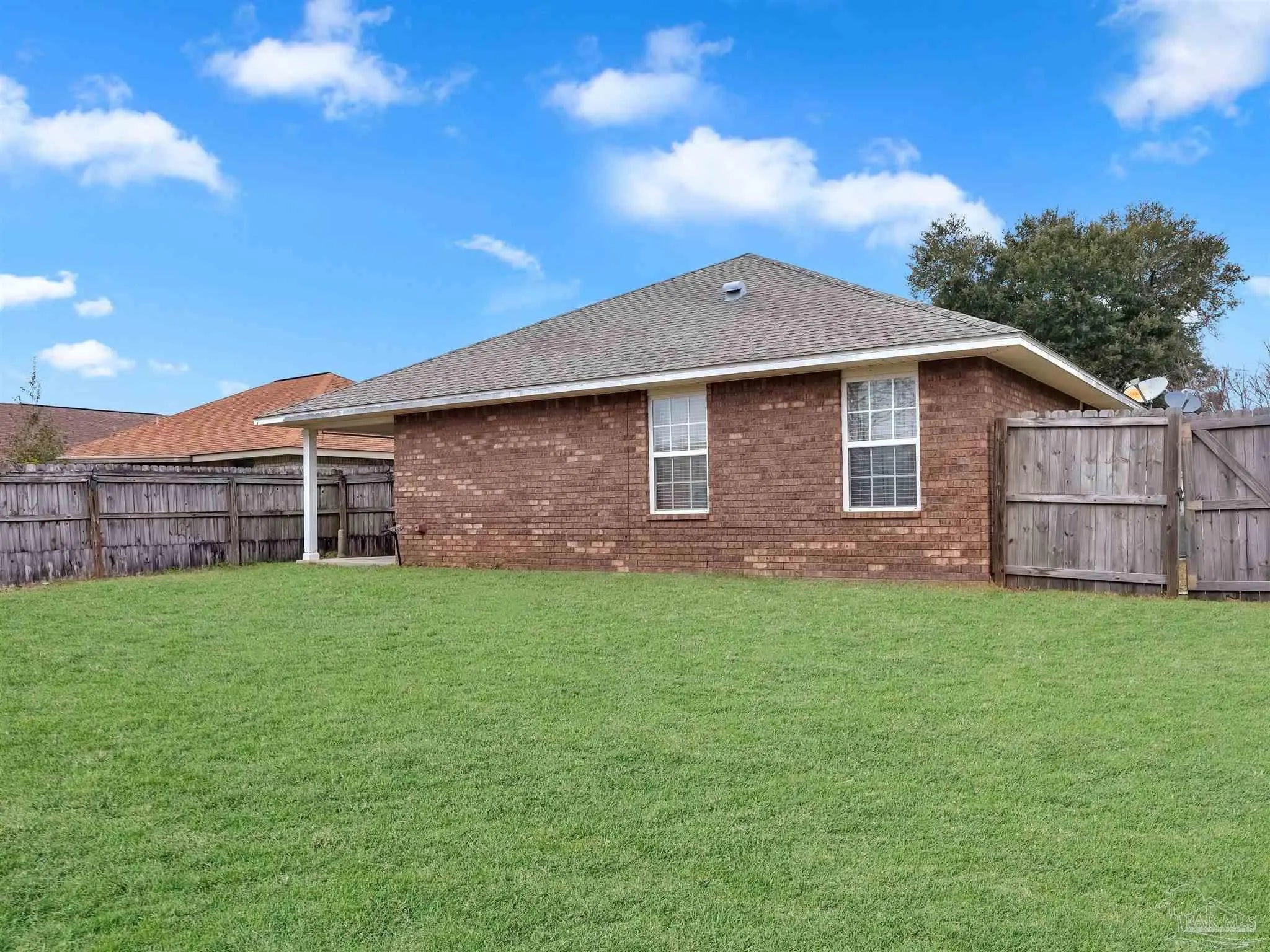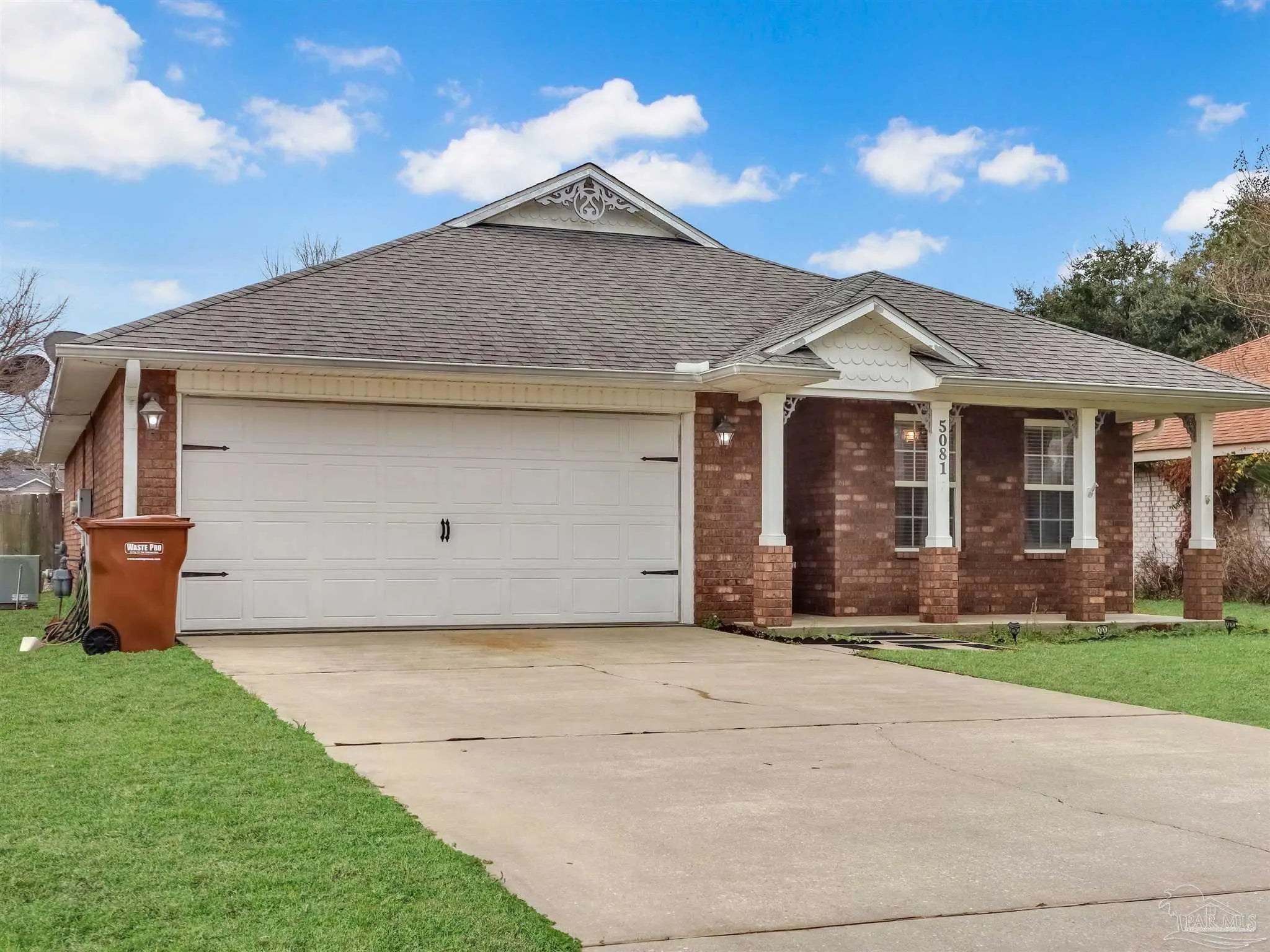 Welcome to this well-maintained 3 bedroom, 2 bath patio home with a 2 car garage in the heart of Pace. Built in 2007 and offering 1,496 square feet, this home features an open concept layout designed for comfortable everyday living and easy entertaining. The kitchen sits at the center of the home with generous counter space, a pantry, and a bar overlooking the spacious living room. Don't forget the gas stove! Whether you are hosting friends or enjoying a quiet night in, the open flow between the kitchen, dining area, and living room makes the space feel connected and inviting. The living room is highlighted by a fireplace, creating a warm focal point and cozy atmosphere. The split floor plan provides privacy, with the primary suite tucked away from the additional bedrooms. The primary bedroom offers ample space, a large ensuite bath with double vanities, a soaking tub, and a separate shower, along with a walk-in closet. Two additional bedrooms share a full bath and offer flexibility for guests, a home office, or hobbies. Situated on a .18 acre lot, the backyard includes a covered patio ideal for morning coffee or evening relaxation. The fully fenced yard provides space for pets, play, or outdoor gatherings while remaining low maintenance. Additional features include an indoor laundry room, established landscaping, and a two car garage for storage and convenience. Located near schools, shopping, dining, and commuter routes, this Pace home offers the layout buyers are searching for with the functionality they need. Move-in ready and waiting for its next chapter.