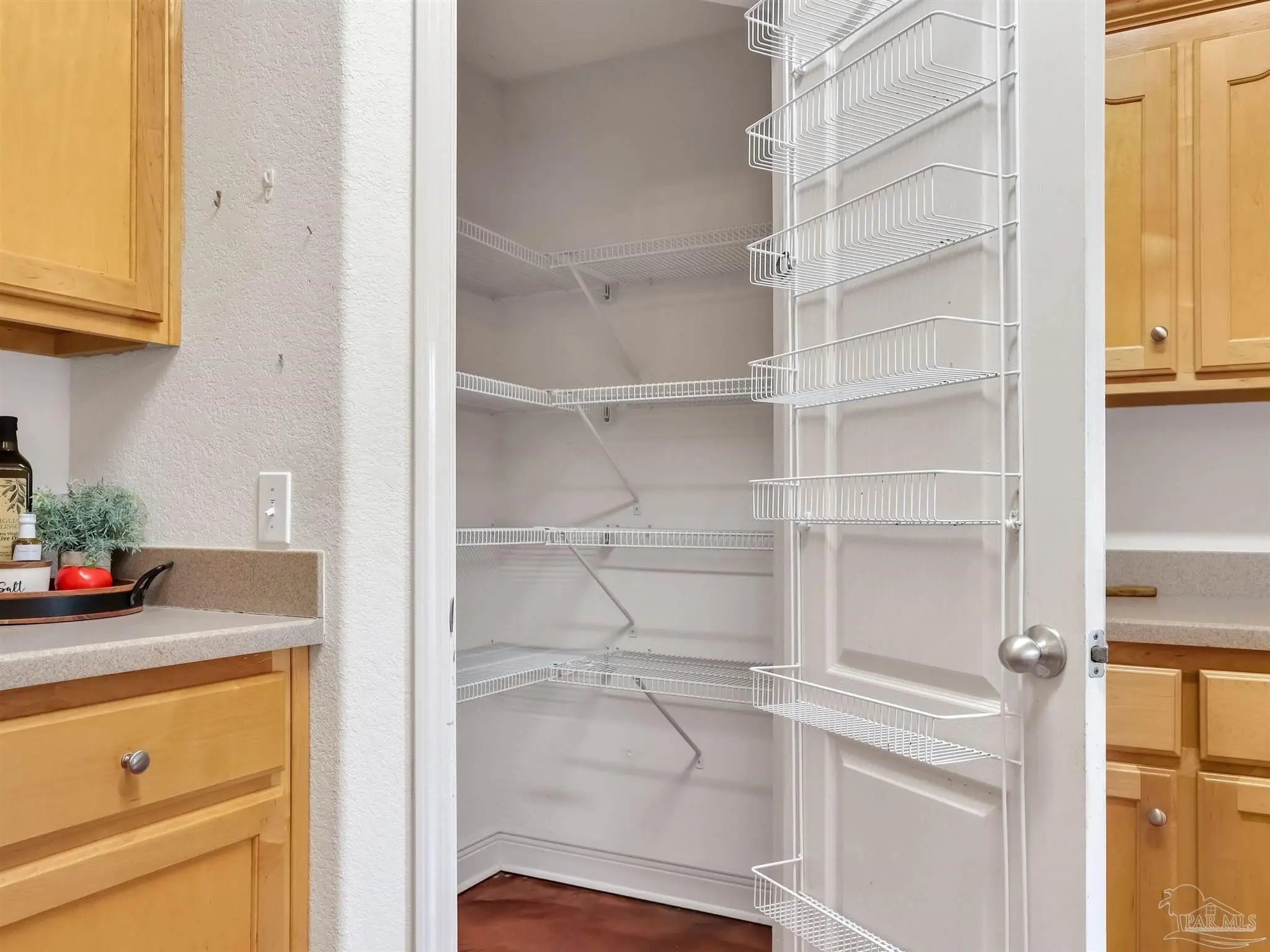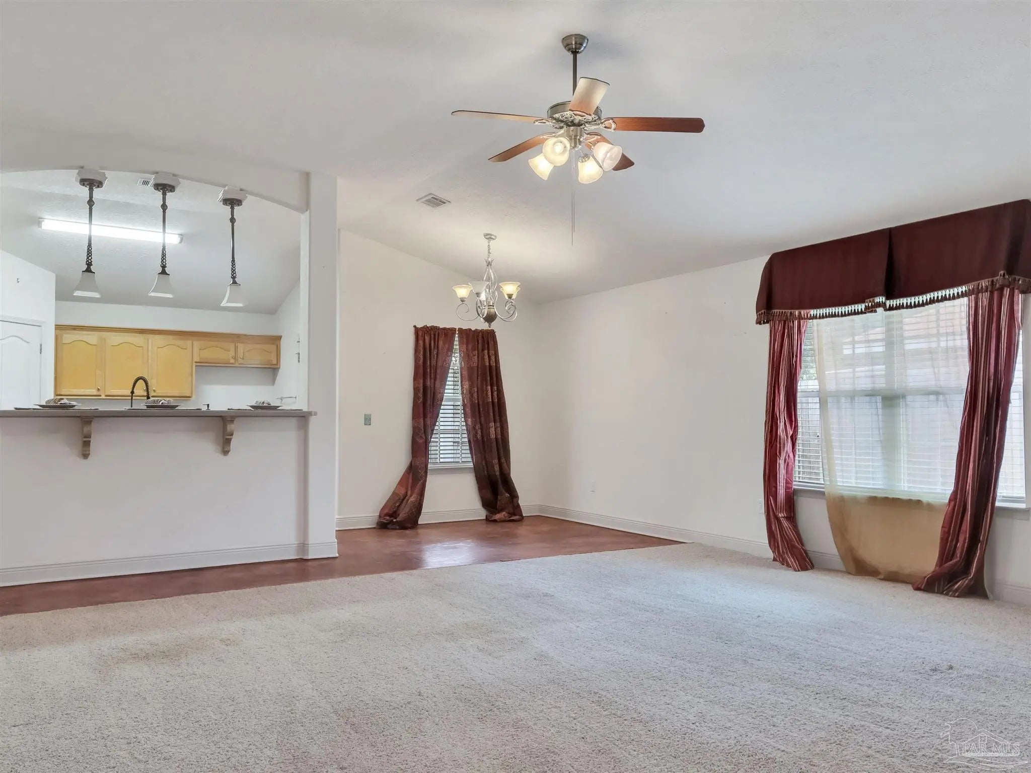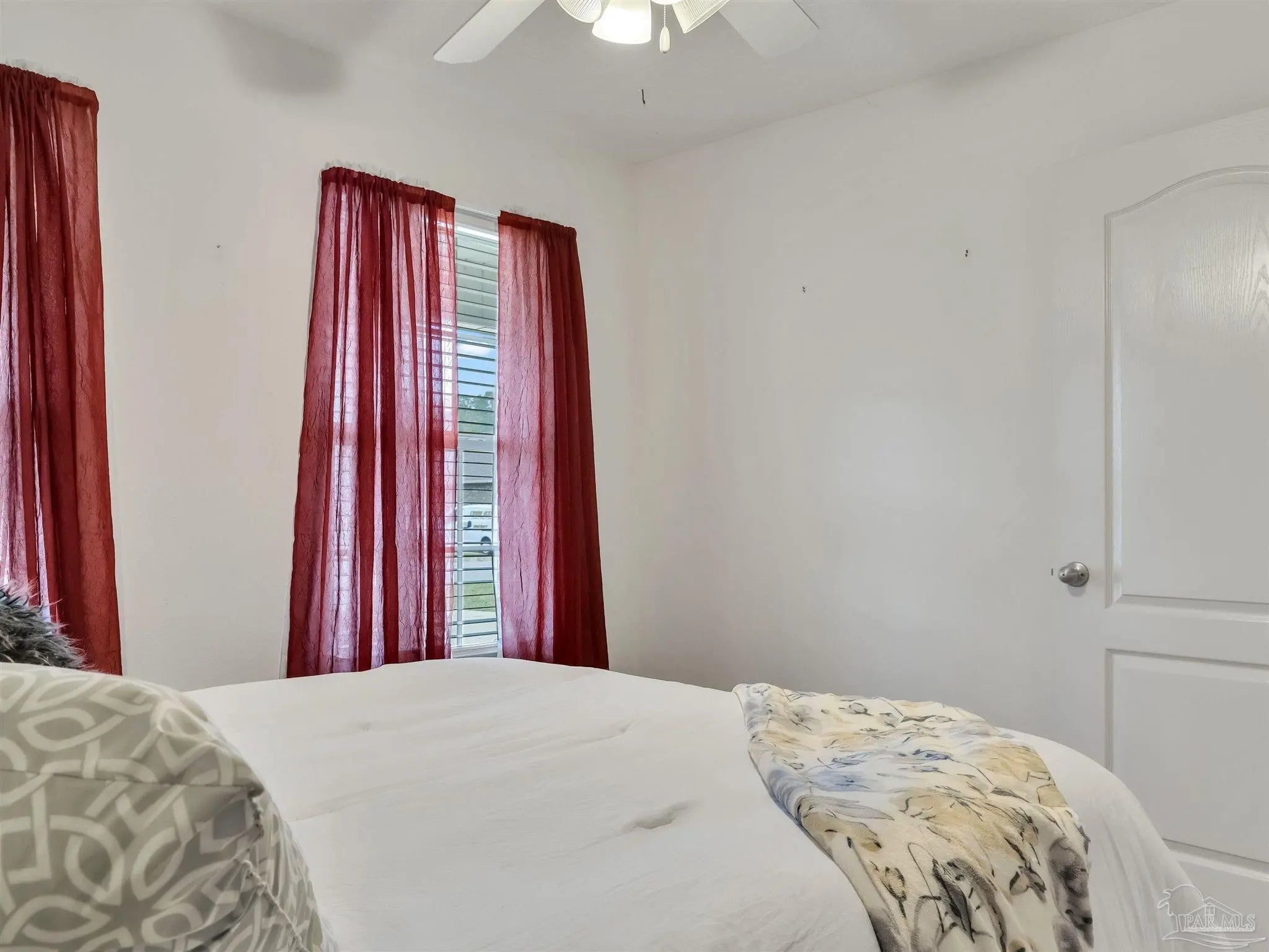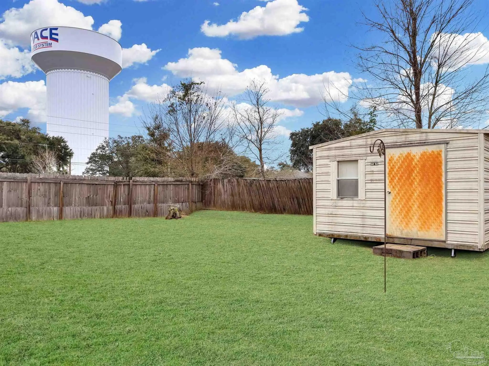 Welcome to this well-maintained 3 bedroom, 2 bath patio home with a 2 car garage in the heart of Pace. Built in 2007 and offering 1,496 square feet, this home features an open concept layout designed for comfortable everyday living and easy entertaining. The kitchen sits at the center of the home with generous counter space, a pantry, and a bar overlooking the spacious living room. Don't forget the gas stove! Whether you are hosting friends or enjoying a quiet night in, the open flow between the kitchen, dining area, and living room makes the space feel connected and inviting. The living room is highlighted by a fireplace, creating a warm focal point and cozy atmosphere. The split floor plan provides privacy, with the primary suite tucked away from the additional bedrooms. The primary bedroom offers ample space, a large ensuite bath with double vanities, a soaking tub, and a separate shower, along with a walk-in closet. Two additional bedrooms share a full bath and offer flexibility for guests, a home office, or hobbies. Situated on a .18 acre lot, the backyard includes a covered patio ideal for morning coffee or evening relaxation. The fully fenced yard provides space for pets, play, or outdoor gatherings while remaining low maintenance. Additional features include an indoor laundry room, established landscaping, and a two car garage for storage and convenience. Located near schools, shopping, dining, and commuter routes, this Pace home offers the layout buyers are searching for with the functionality they need. Move-in ready and waiting for its next chapter.