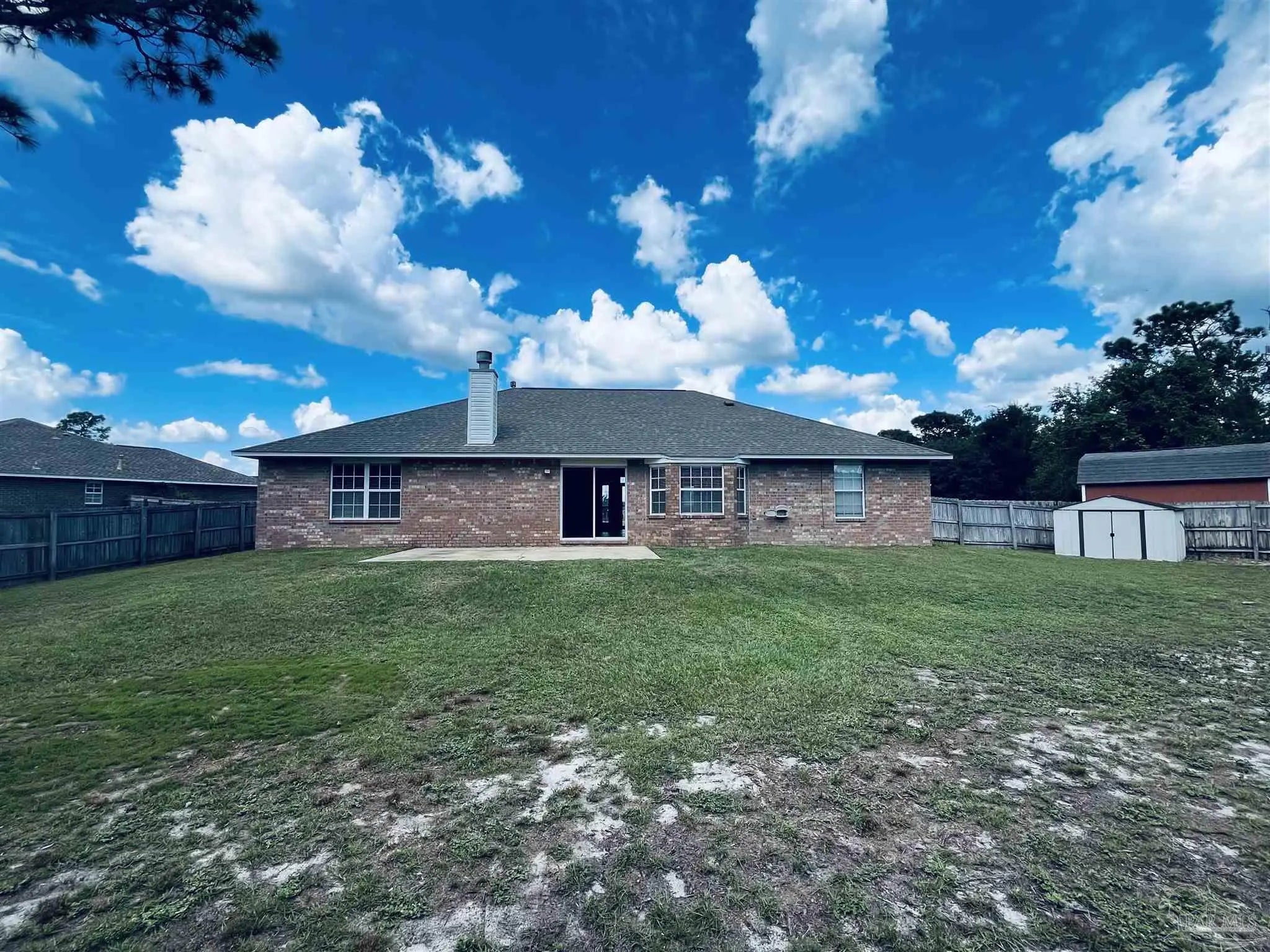 Come see this well maintained 4/3 nestled on a cul-de-sac in the Estates at Emerald Shores sub-division. This home features a large kitchen, breakfast bar, Eat-in Kitchen, a pantry, and plenty of cabinet space. The large great room has a fireplace and sliding doors leading out to an open patio. There is also a formal dining room. The primary suite features a large bedroom & bath, with double vanities, a garden tub, separate shower, and dual walk-in closets. Back bedroom has it's own full bath. Very large backyard with Fire pit, shed (AS IS)and privacy fencing. Great Location, very close to the back gate of NAS Pensacola, area shopping, beaches, and more.