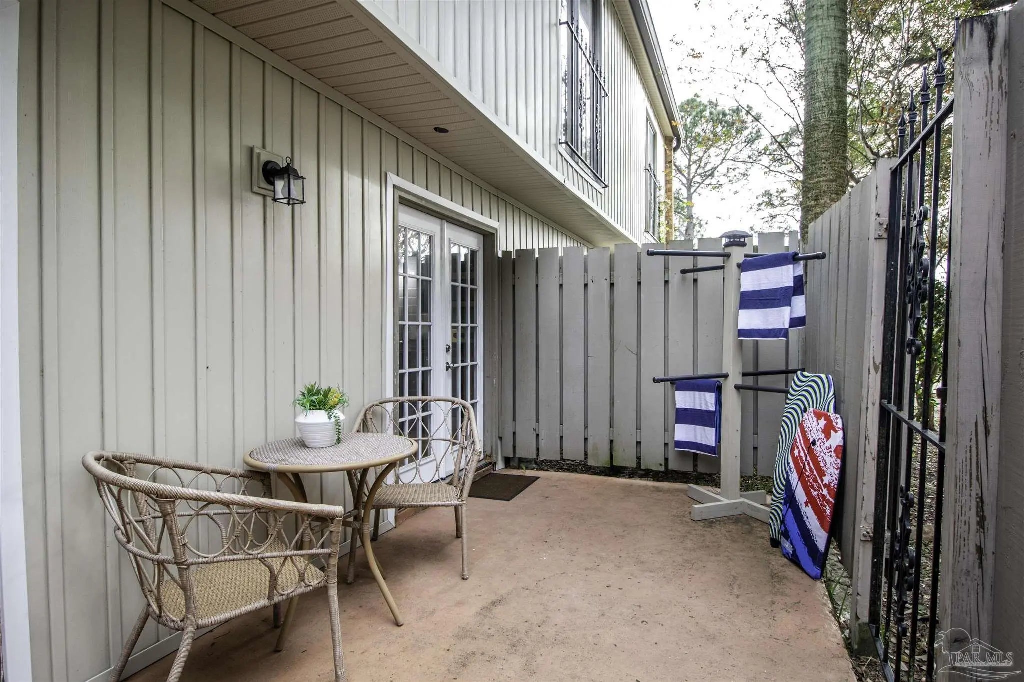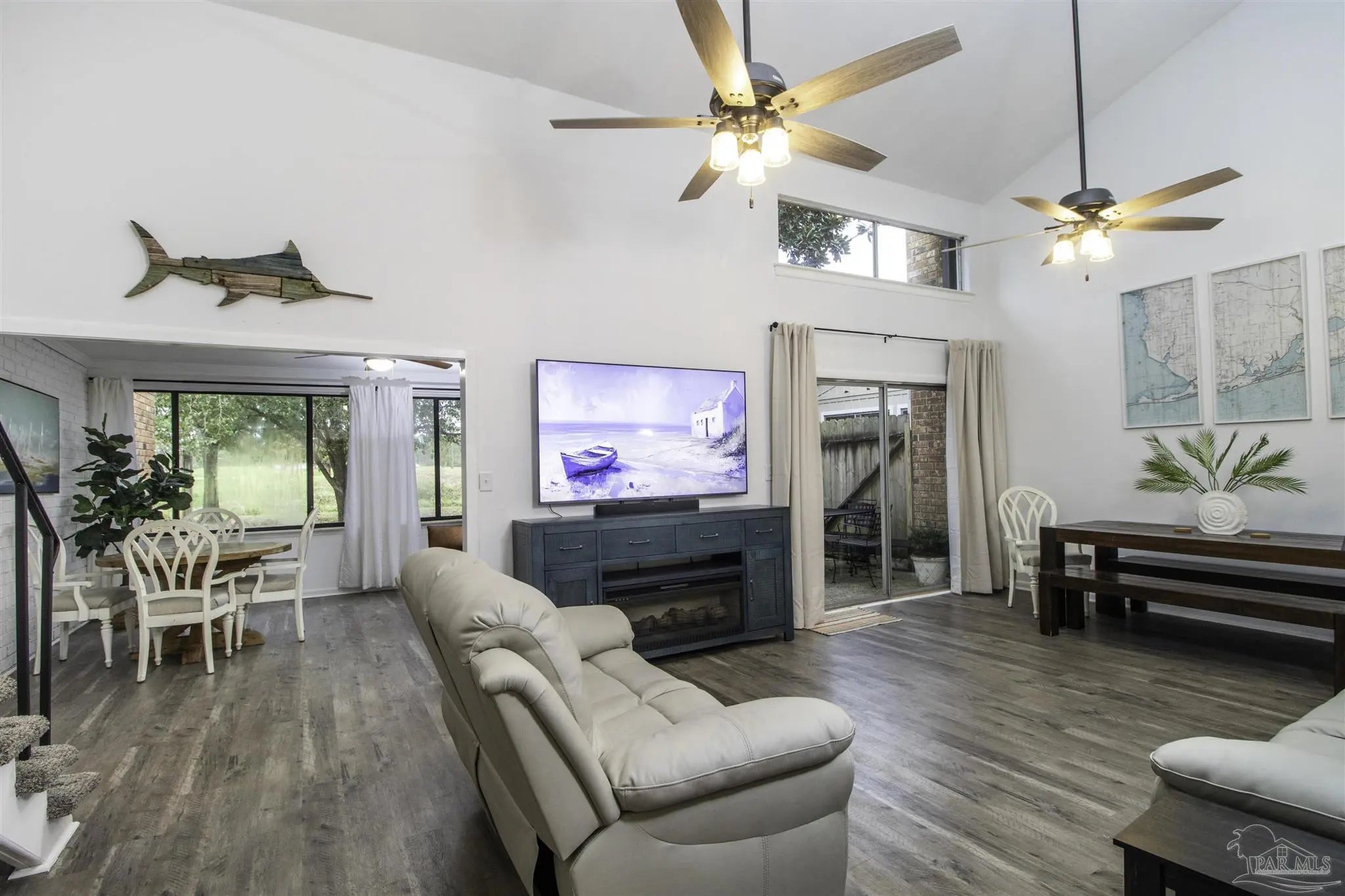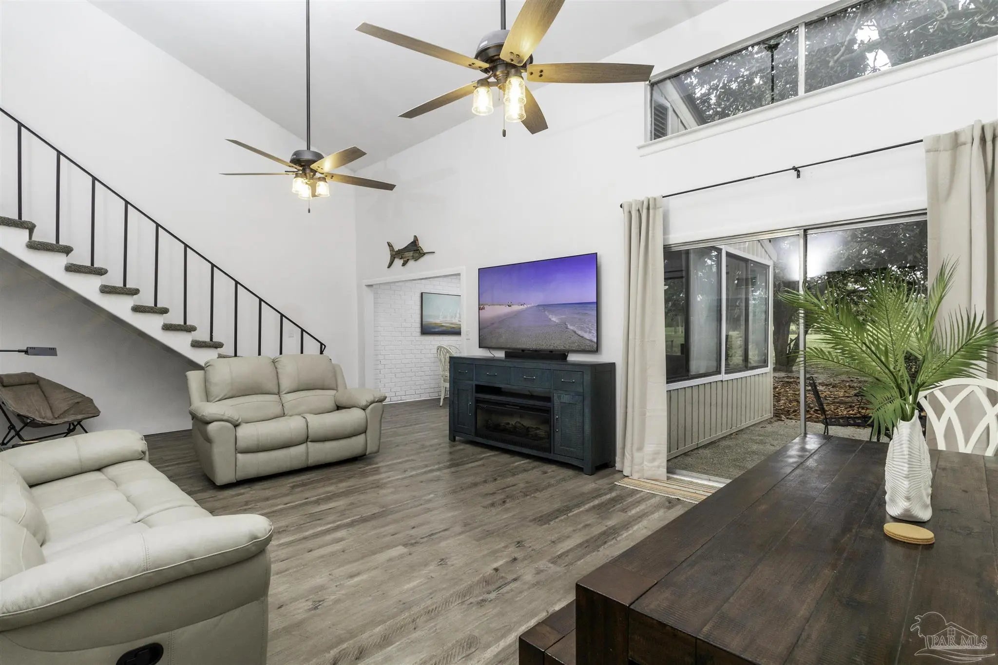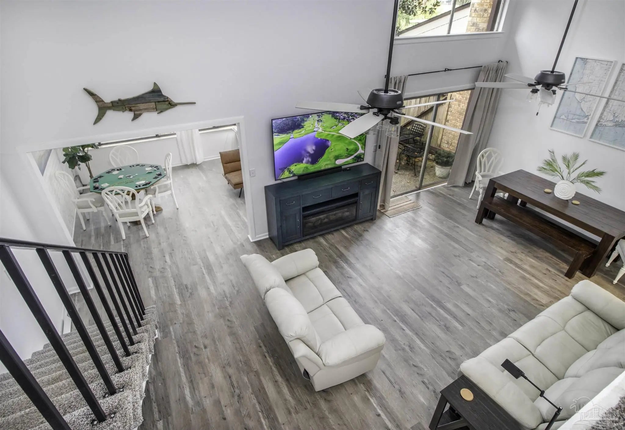 Fully furnished 3-BR/2 Bath townhouse overlooking the Perdido Bay Golf Course. This unit is only 10 min from the beach and comes completely furnished and ready for listing on Airbnb, including all linens, kitchenware, small appliances (Keurig, Ninja blender, etc), 5 new LCD TVs, stainless steel appliances (new microwave and dishwasher), full size washer and dryer, patio furniture, etc. Large great room has an 18 ft ceiling, updated LVP flooring, new leather furniture and a 75 inch TV mounted over a large entertainment center with an electric fireplace. Updated throughout with copper wiring in 2024. Master BR downstairs has a king bed and en suite bath. Two oversized BRs upstairs (one queen, one with two double beds) share a Jack-n-Jill bath. Large sunroom overlooks the 12th fairway and has a poker table, work desk and 50 inch TV.