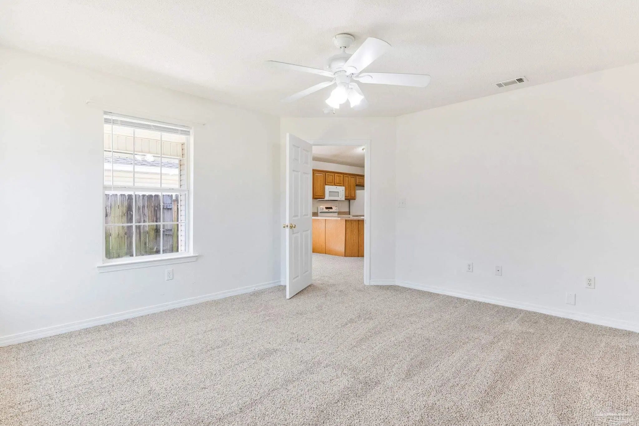 Welcome to this move-in-ready 3-bedroom, 2-bath home offering 1,308 square feet of comfortable living space in a convenient central location with NO HOA. Step inside to an inviting open floor plan designed for both everyday living and entertaining. The spacious living area flows seamlessly into the dining area and kitchen, creating a bright, functional layout that feels larger than its footprint suggests. Whether you're hosting friends or enjoying a quiet evening at home, this layout makes it easy and comfortable. The primary suite features a private bathroom and ample closet space, while two additional bedrooms provide flexibility for family, guests, or a home office. The second full bath is conveniently located for both bedrooms and visitors. The dedicated laundry room includes washer and dryer connections for added convenience and functionality. One of the standout features of this home is the fully paid-off solar panel system, helping reduce monthly utility costs and delivering long-term energy savings without the burden of an additional payment. Outside, you’ll love the fully fenced backyard — perfect for pets, kids, entertaining, or simply relaxing in your own private outdoor space. Located in a central Pensacola location, you’re just minutes from shopping, dining, schools, and major roadways, making daily commutes and weekend plans effortless. If you’re looking for affordability, efficiency, and convenience all in one package — without HOA restrictions — this home checks the boxes. Schedule your private showing today!