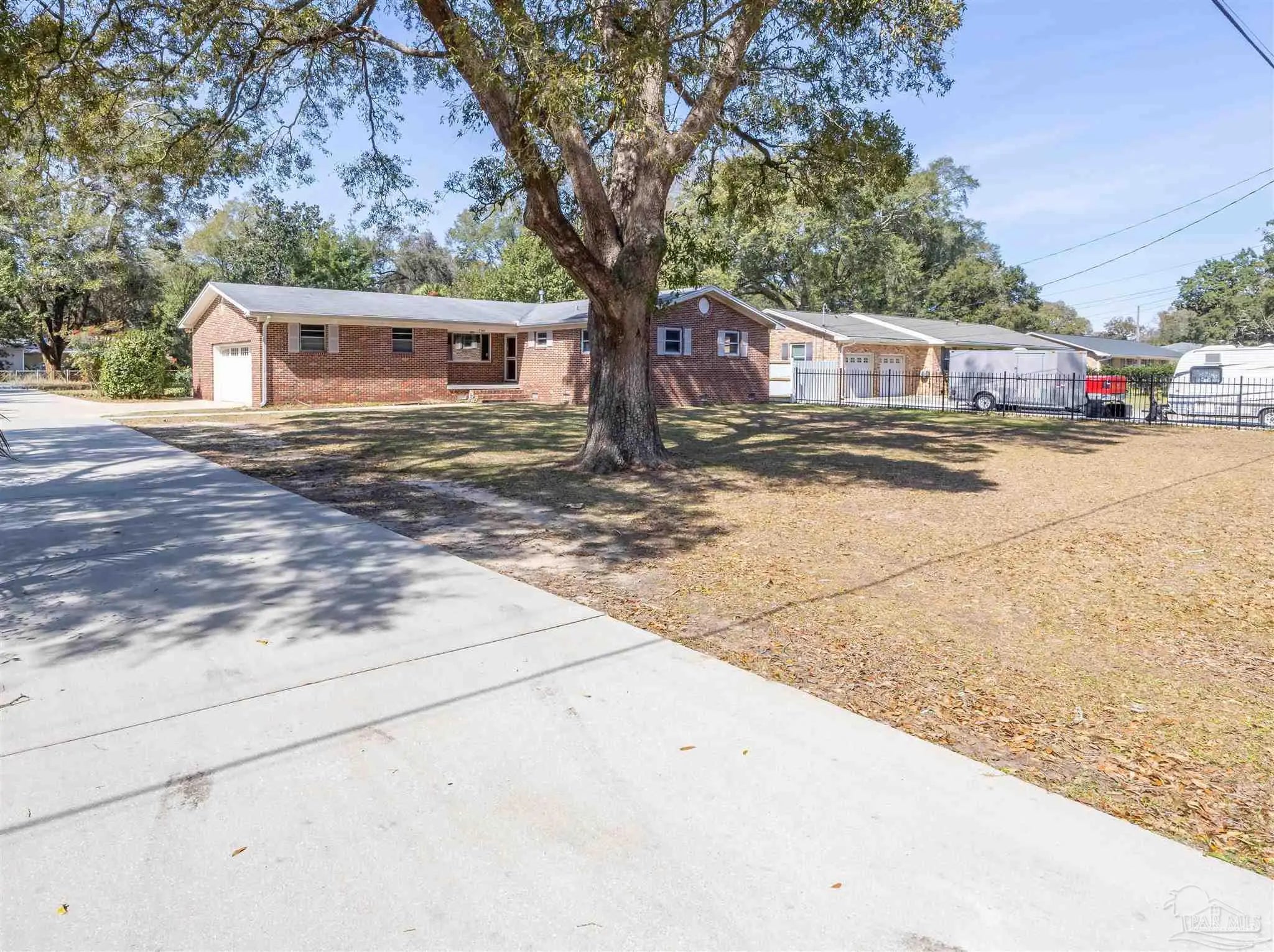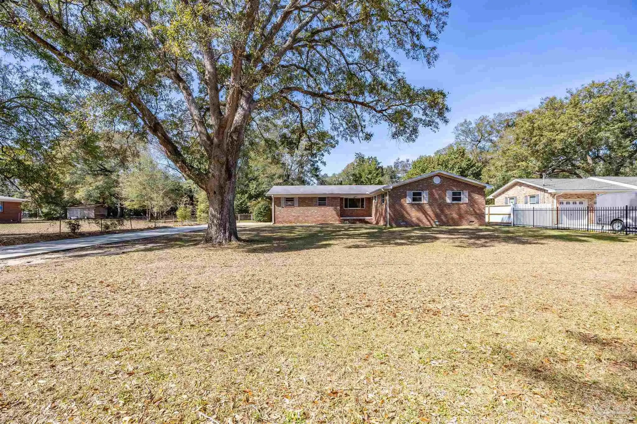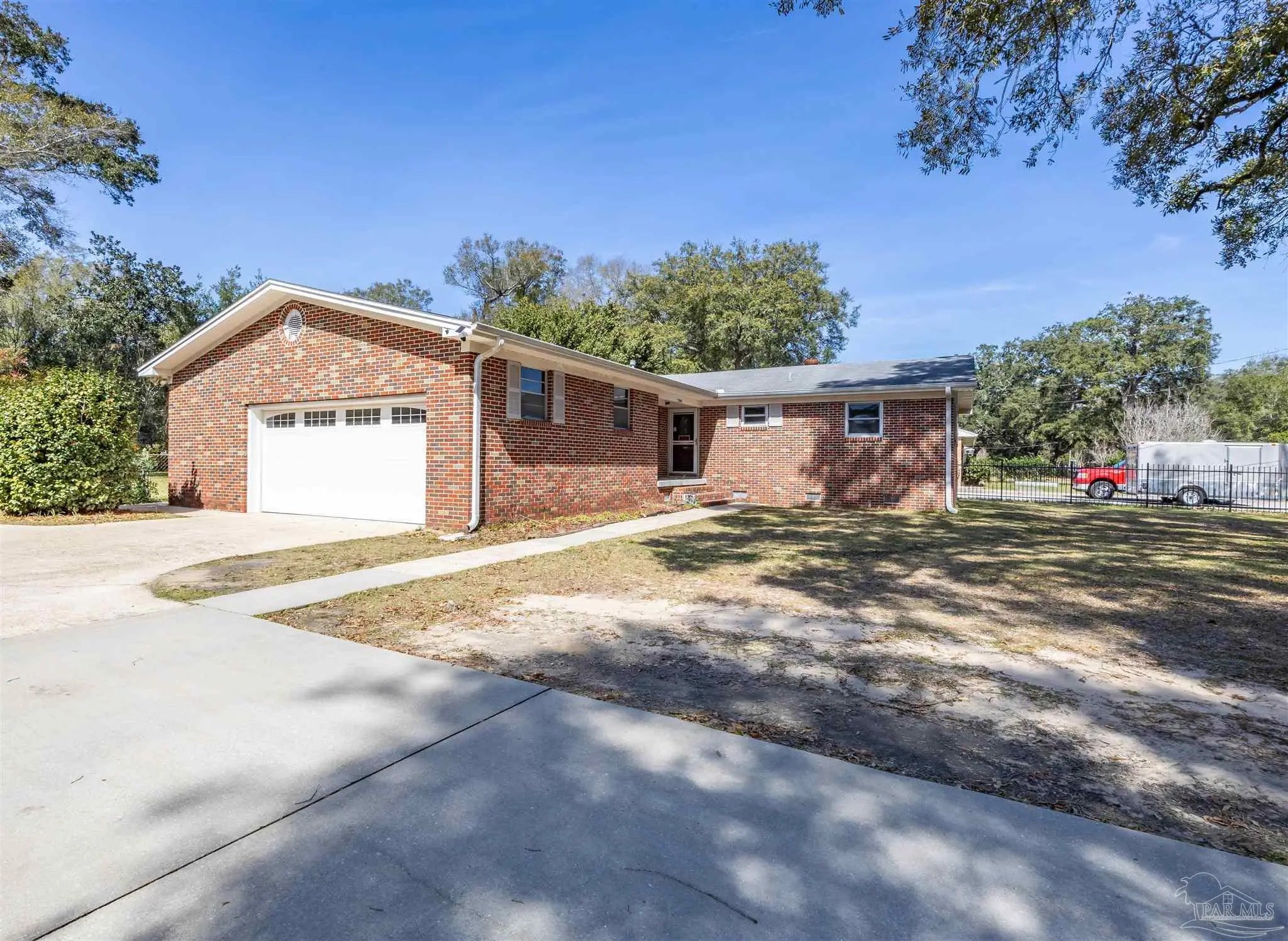 Welcome home! This ranch-style brick home in a well-established neighborhood is situated on an almost half-acre lot featuring three bedrooms and two baths. Highlights include a cozy fireplace, crown molding, chair rails, a beautiful front door, and charming kitchen and bathrooms. Fresh paint throughout and new carpet in the living room, hall and bedrooms. Enjoy outdoor living with a large back patio, fenced backyard, mature oak trees, sprinkler system, and storage building. Two-car garage includes a workshop area. This move in ready property is sold As Is. This timeless brick home is a must see with No HOA!