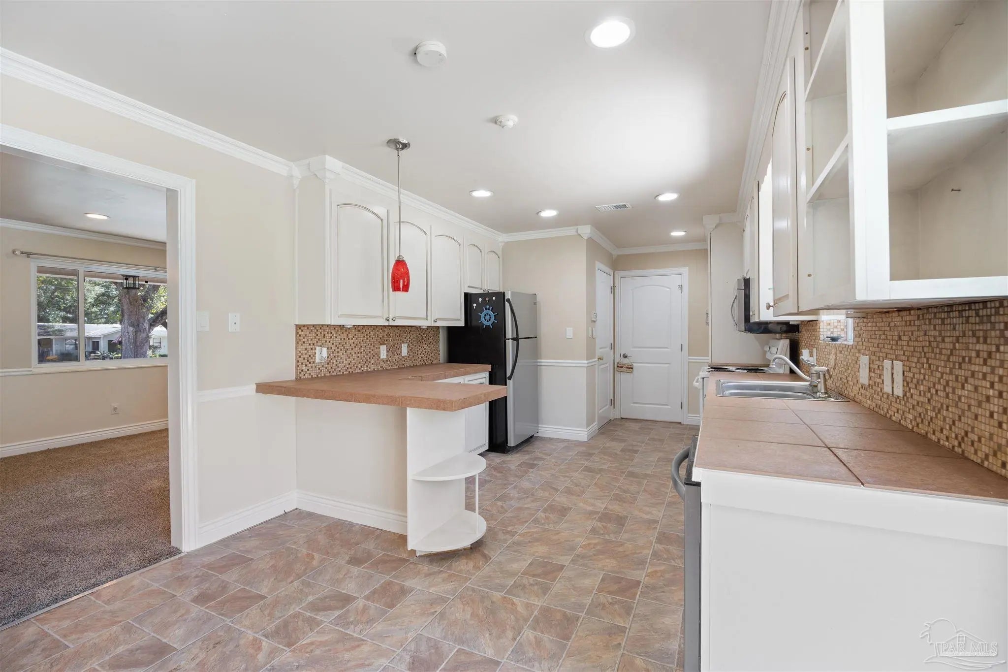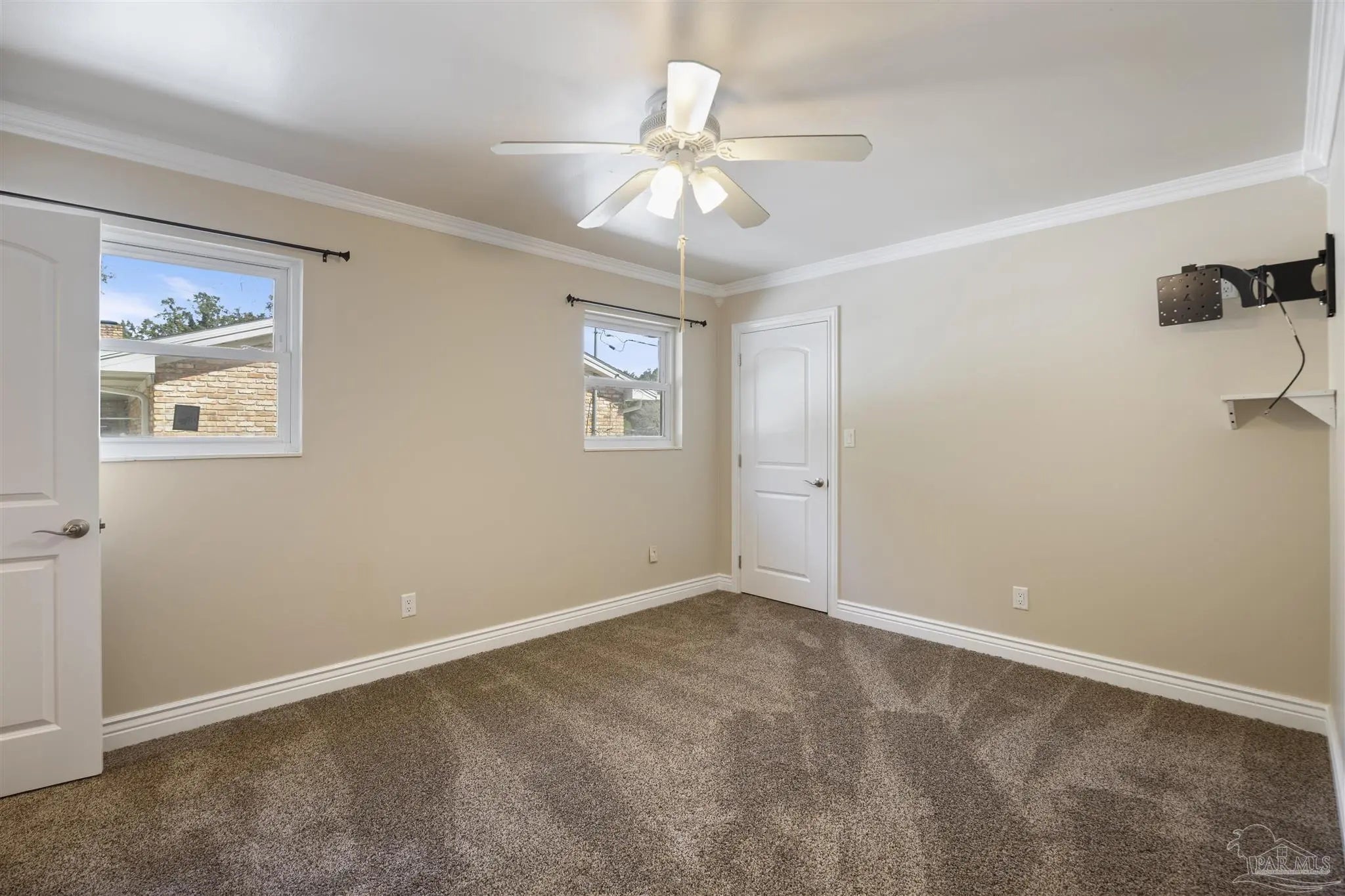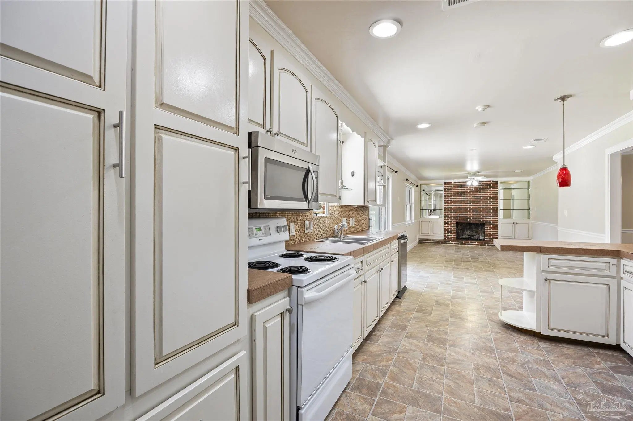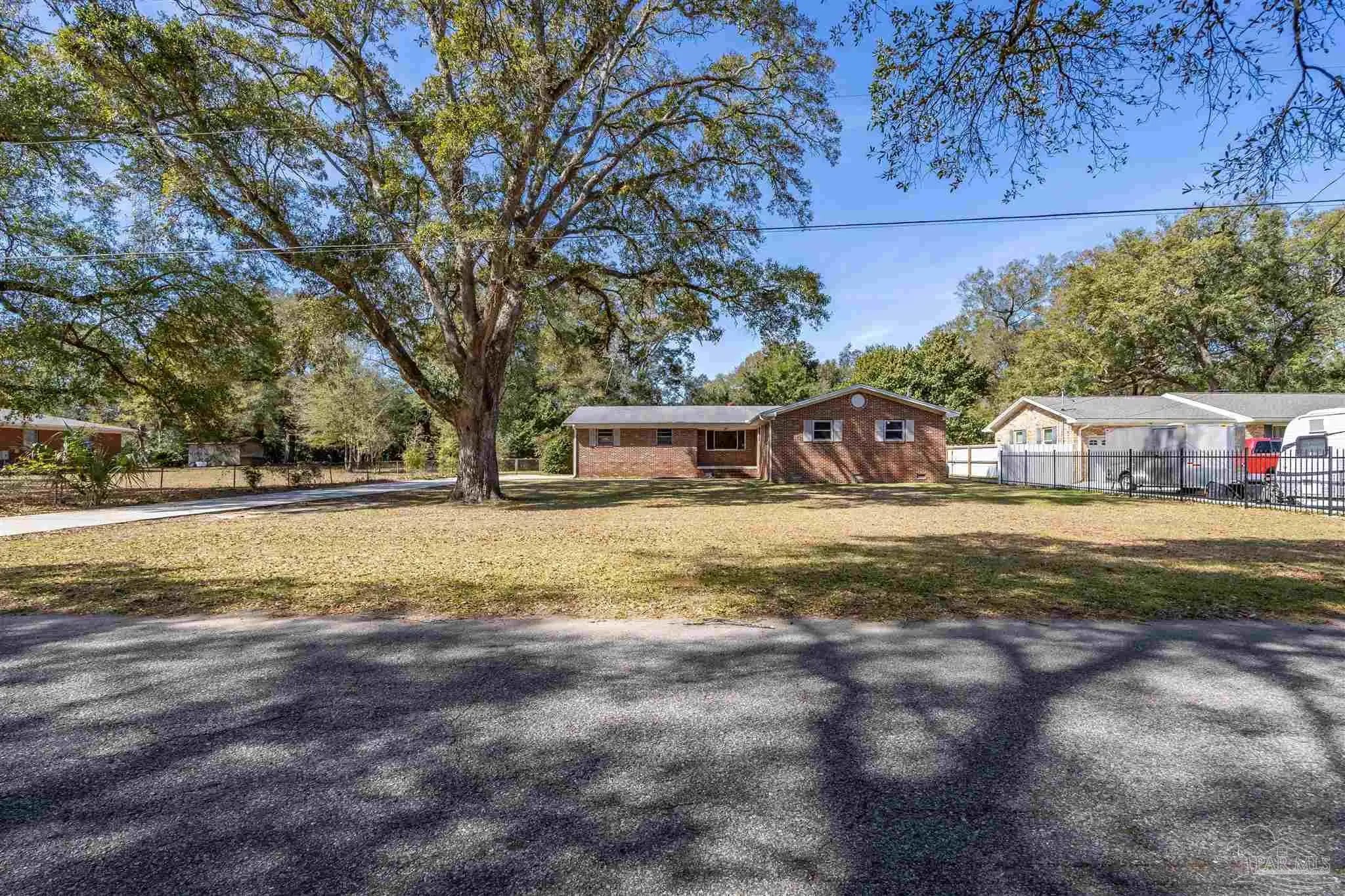 Welcome home! This ranch-style brick home in a well-established neighborhood is situated on an almost half-acre lot featuring three bedrooms and two baths. Highlights include a cozy fireplace, crown molding, chair rails, a beautiful front door, and charming kitchen and bathrooms. Fresh paint throughout and new carpet in the living room, hall and bedrooms. Enjoy outdoor living with a large back patio, fenced backyard, mature oak trees, sprinkler system, and storage building. Two-car garage includes a workshop area. This move in ready property is sold As Is. This timeless brick home is a must see with No HOA!