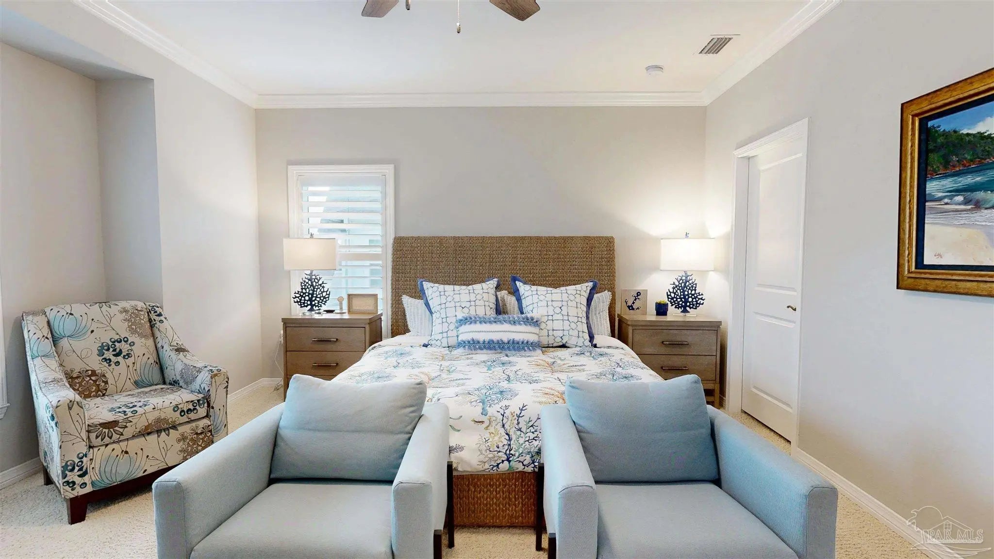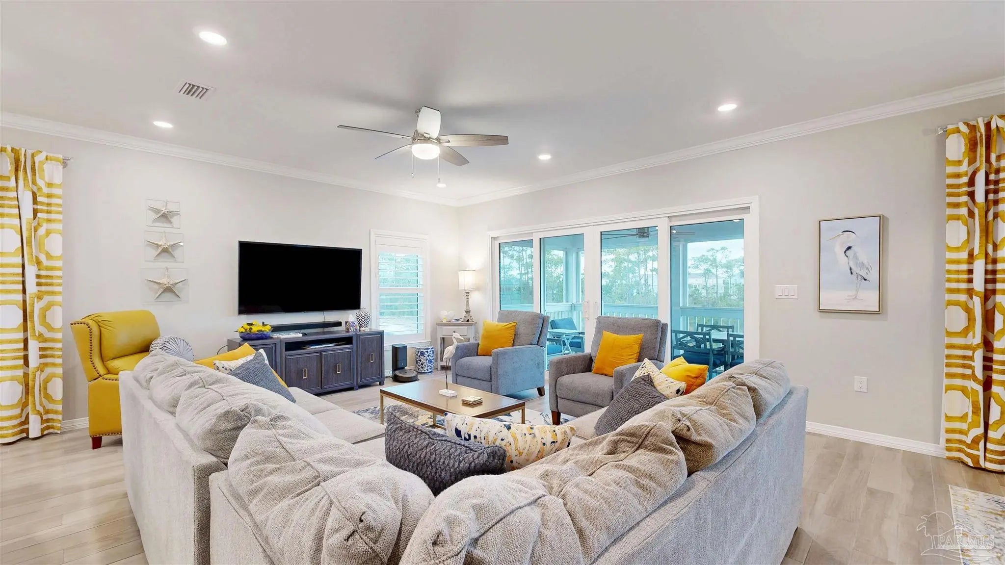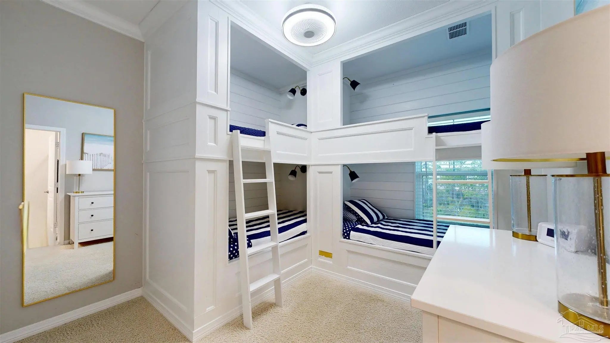 Located in the highly sought-after Lost Key Golf & Beach Club, this beautifully maintained resort villa offers space, style, and flexibility. Originally designed as a 4 bedroom home, the sellers enclosed a portion of the garage and added a dedicated HVAC unit, creating a true 5 bedroom, 4 bathroom layout that lives comfortably for full-time use or a second home. This residence has never been a rental and it shows. The home is beautifully decorated and sold fully furnished. In the dining area, a custom shiplap accent wall adds warmth and coastal charm, while plantation shutters throughout elevate the finishes. The open floor plan flows seamlessly to a screened-in patio overlooking a peaceful pond, perfect for bird watching and enjoying the quiet setting. The back patio has been upgraded with Trex decking in place of rock, creating a clean and low-maintenance outdoor space. Inside, the thoughtful bedroom layouts maximize sleeping capacity without sacrificing comfort. Guest bedroom one features a custom twin bunk over a queen bed. Guest bedroom two includes two built-in bunk beds with extra-long twin mattresses. An extra refrigerator provides added convenience for entertaining and hosting guests. If you are searching for a move-in-ready villa in Lost Key Golf & Beach Club with pond views, upgraded outdoor space, and a flexible 5 bedroom layout that has never been rented, this is a rare opportunity. The estimated Gross Rental Potential for the 4 Bedroom Villa is about $65,000-$72,000 depending on owner use. This Villa is located in Lost Key Golf & Beach Club, a premier private, master-planned island resort community with 24-hour staffed gate, 18-hole Arnold Palmer Championship Golf Course, Golf Club with restaurant, Pro Shop and locker rooms, tennis courts, complimentary Beach Shuttle Service, Beach Club, Pool & Fitness Center. All of this, and just moments to the Gulf of Mexico, National Sea Shore, renowned beaches and back gate of NAS Pensacola.