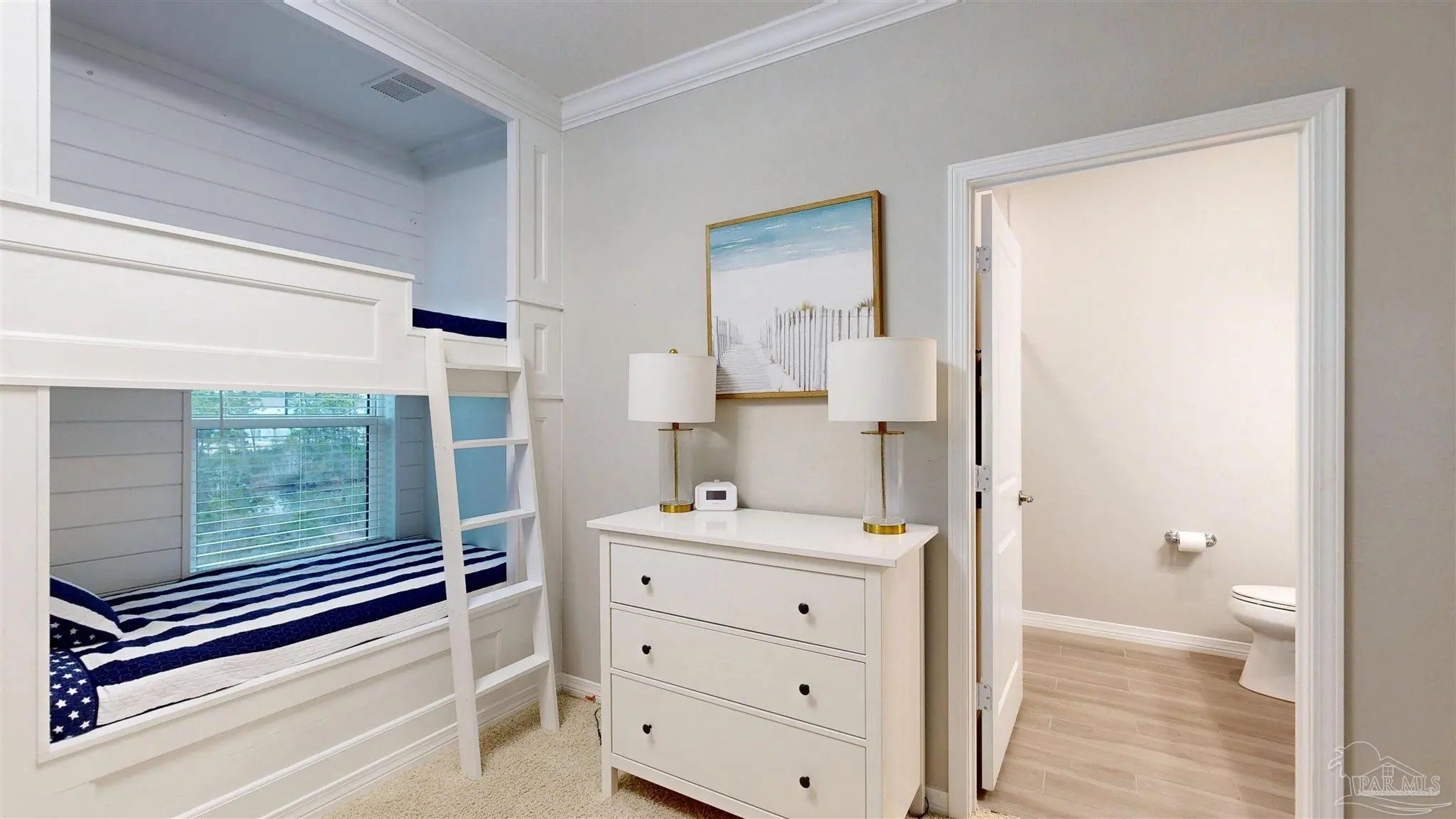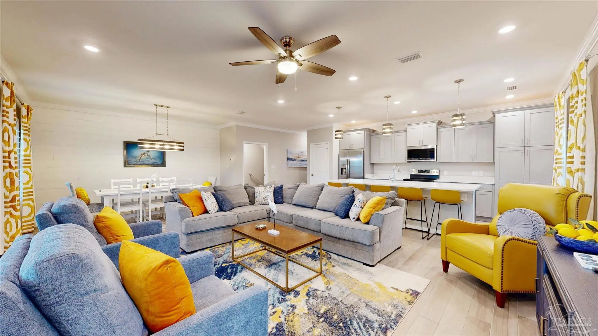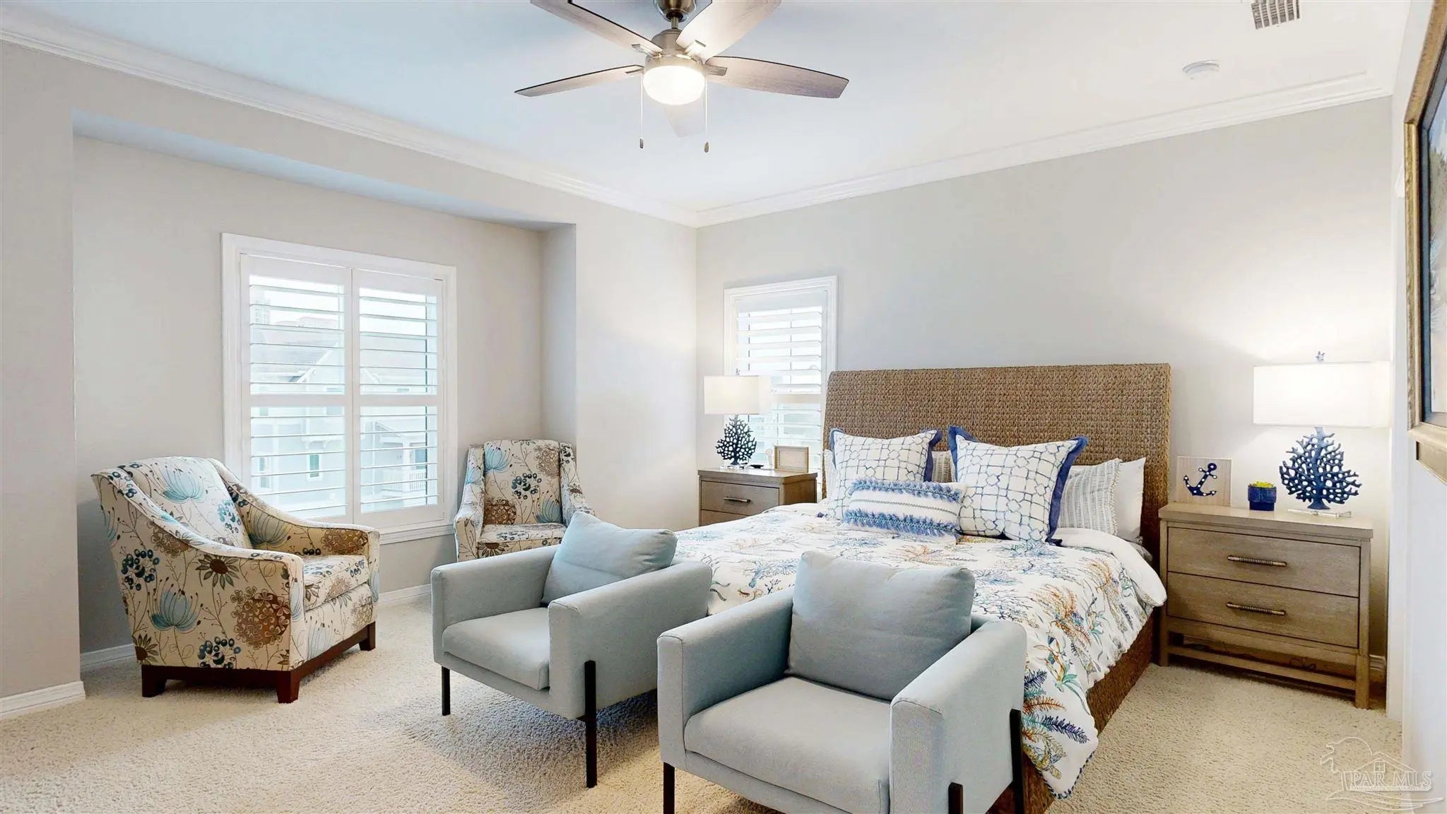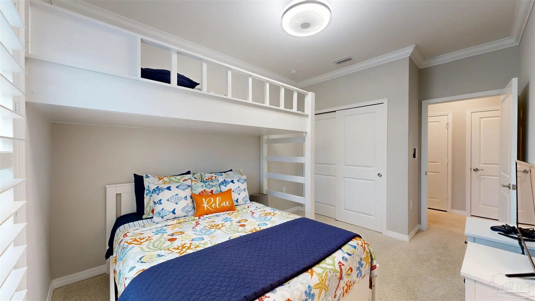 Located in the highly sought-after Lost Key Golf & Beach Club, this beautifully maintained resort villa offers space, style, and flexibility. Originally designed as a 4 bedroom home, the sellers enclosed a portion of the garage and added a dedicated HVAC unit, creating a true 5 bedroom, 4 bathroom layout that lives comfortably for full-time use or a second home. This residence has never been a rental and it shows. The home is beautifully decorated and sold fully furnished. In the dining area, a custom shiplap accent wall adds warmth and coastal charm, while plantation shutters throughout elevate the finishes. The open floor plan flows seamlessly to a screened-in patio overlooking a peaceful pond, perfect for bird watching and enjoying the quiet setting. The back patio has been upgraded with Trex decking in place of rock, creating a clean and low-maintenance outdoor space. Inside, the thoughtful bedroom layouts maximize sleeping capacity without sacrificing comfort. Guest bedroom one features a custom twin bunk over a queen bed. Guest bedroom two includes two built-in bunk beds with extra-long twin mattresses. An extra refrigerator provides added convenience for entertaining and hosting guests. If you are searching for a move-in-ready villa in Lost Key Golf & Beach Club with pond views, upgraded outdoor space, and a flexible 5 bedroom layout that has never been rented, this is a rare opportunity. The estimated Gross Rental Potential for the 4 Bedroom Villa is about $65,000-$72,000 depending on owner use. This Villa is located in Lost Key Golf & Beach Club, a premier private, master-planned island resort community with 24-hour staffed gate, 18-hole Arnold Palmer Championship Golf Course, Golf Club with restaurant, Pro Shop and locker rooms, tennis courts, complimentary Beach Shuttle Service, Beach Club, Pool & Fitness Center. All of this, and just moments to the Gulf of Mexico, National Sea Shore, renowned beaches and back gate of NAS Pensacola.