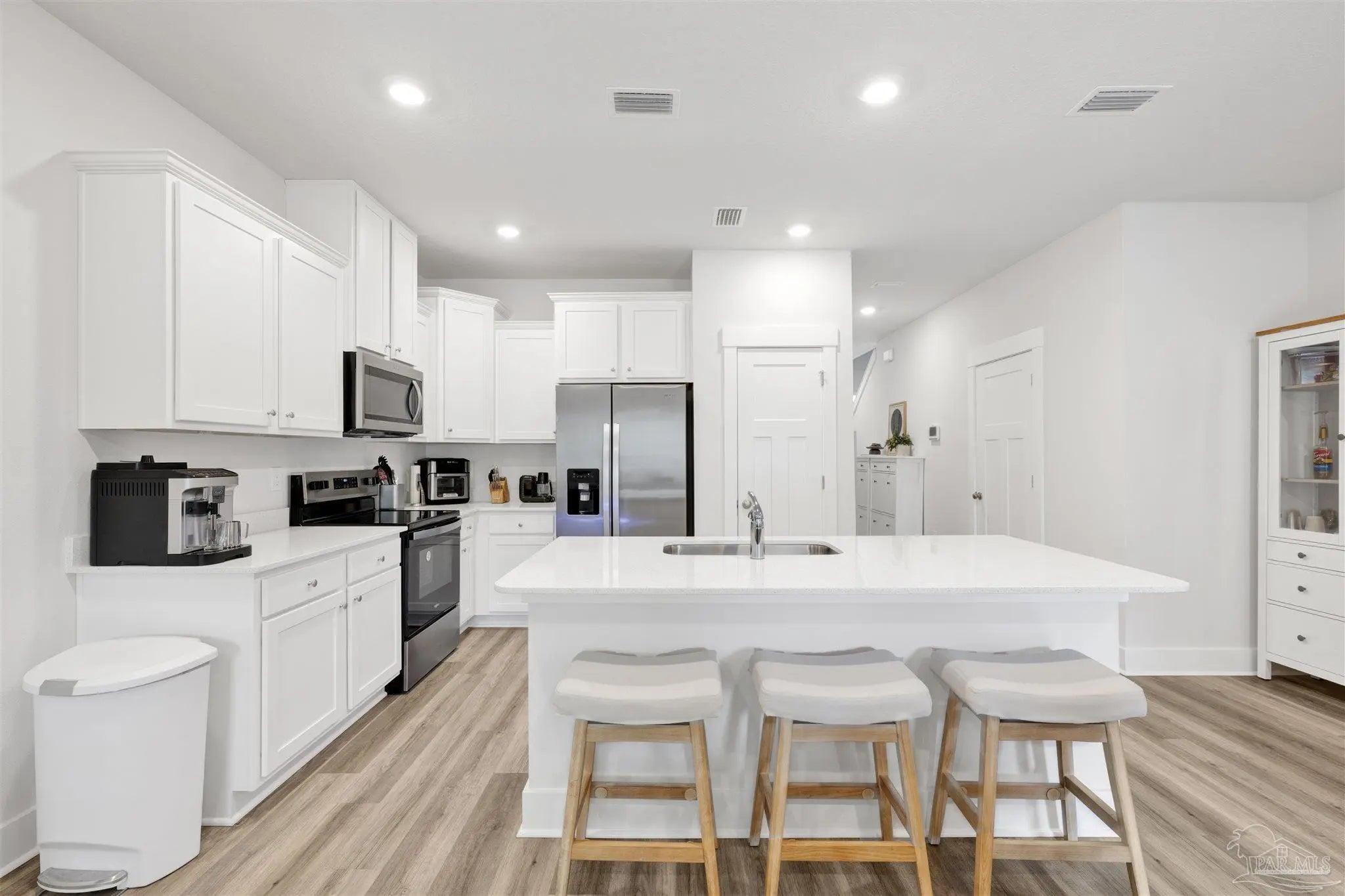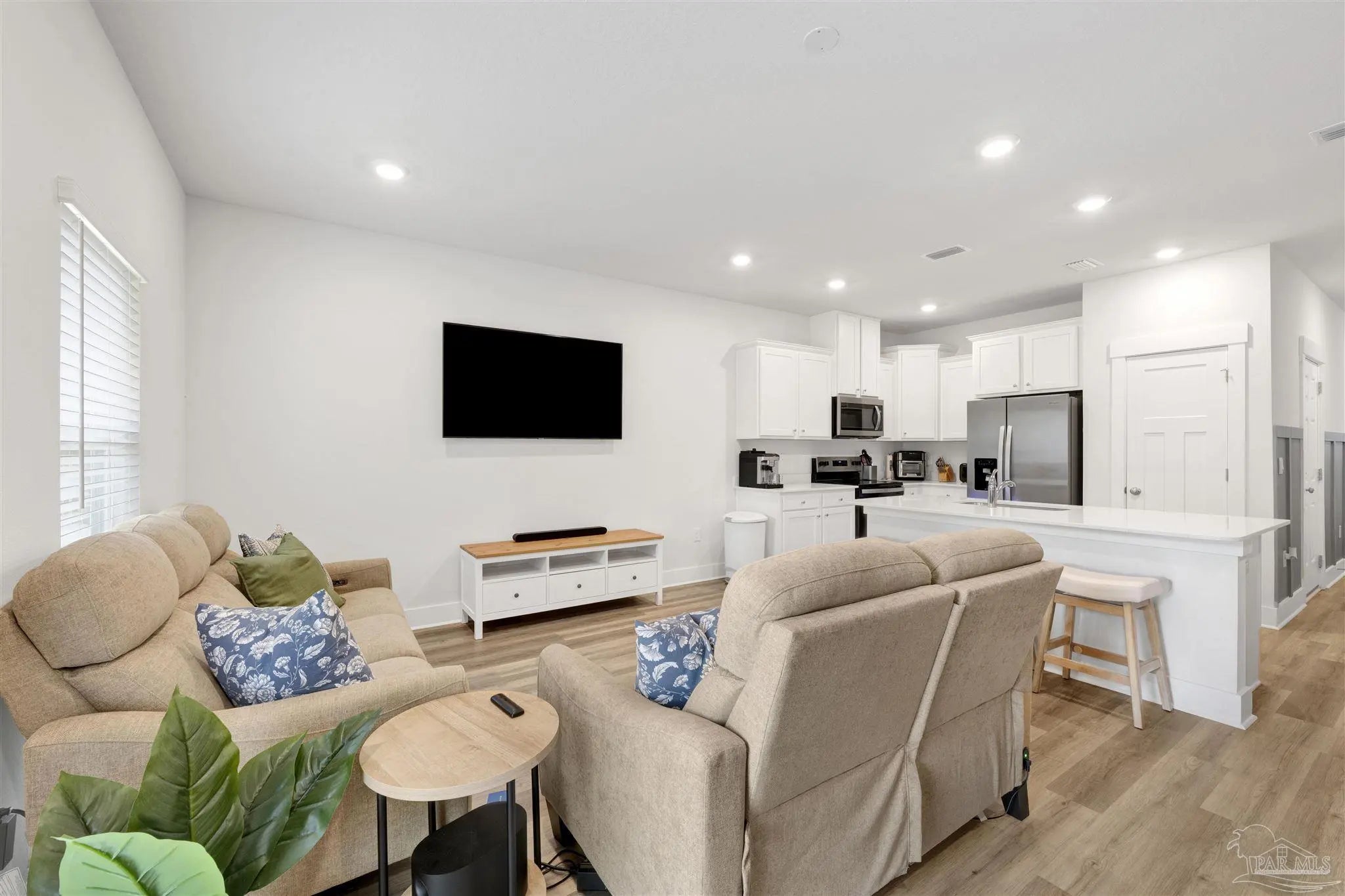 Welcome home to this adorable townhome located just off Davis Highway. If you’ve been looking for easy, comfortable living with a smart layout, this is it. The open concept main living area is bright and inviting, seamlessly connecting the kitchen, dining, and living spaces, ideal for both everyday living and entertaining. The kitchen features beautiful quartz countertops, white shaker cabinets, stainless steel appliances, and a spacious island that provides additional seating and prep space. There’s plenty of cabinet and counter space, plus a convenient half bath downstairs for guests. Step outside to your private patio, perfect for morning coffee or relaxing in the evening, and enjoy the added bonus of an attached garage for storage and convenience. Upstairs, you’ll find all three bedrooms along with the laundry so there is no hauling baskets up and down stairs. The primary suite is tucked away with a walk in closet and private bath featuring dual vanities. The additional bedrooms are generously sized and share a full bath, giving everyone their own comfortable space. Just one year old, low maintenance, functional, and easy to love, this home truly checks all the boxes. Come take a look and see how well it fits your lifestyle.