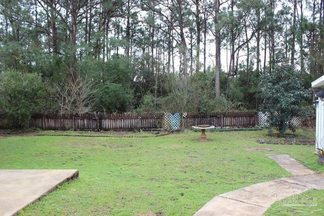 If you are looking for an all brick home with a versatile floor plan--you've found it! The home opens up to a spacious room filled with plenty of natural light for your dining or office needs. The living room is grand with a vaulted ceiling, recessed lights, and wood burning fireplace for chilly nights at home. Around the corner is the breakfast nook with updated lighting before feasting your eyes on the fully updated kitchen. From the high grade cabinets with raised end panels and center island to the custom tile backsplash and granite counters, this kitchen has space for the whole family. The stainless steel appliances, including the 2025 built-in microwave, and the Electrolux washer and dryer all convey. On one end of the house, you'll find the primary suite with tile floors and a view of the verdant back yard. The primary bath is complete with a separate custom tiled shower, dual vanities, garden tub, two closets, and bidet. On the other end of the house is the second primary suite with its own view of the back yard and private full bath including a tub/shower combo with custom tile surround. Two more bedrooms and the third full bath are found down the same hall, giving family and guests plenty of options for their "own space." Out back, you'll find a nearly 19'x12' screened Florida room before making your way to the covered patio whose ceiling is trimmed in wood paneling with two fans for balmy summer evenings. The backyard is lush with tropical plants, palms, and a citrus tree to provide privacy from the neighbors. Afraid the summer sun will kill your flowers? The well and sprinkler system has your back! The 2021 HVAC and water heater are bonuses as well. Only 5 minutes from the West Gate of NAS and less than that to the Perdido Kids Park, Lost Key Marina, and dolphin cruises, this home is in a prime location for the Florida lifestyle. Low rate assumable VA loan may be available for qualified buyers. See the virtual tour link for an interactive view!