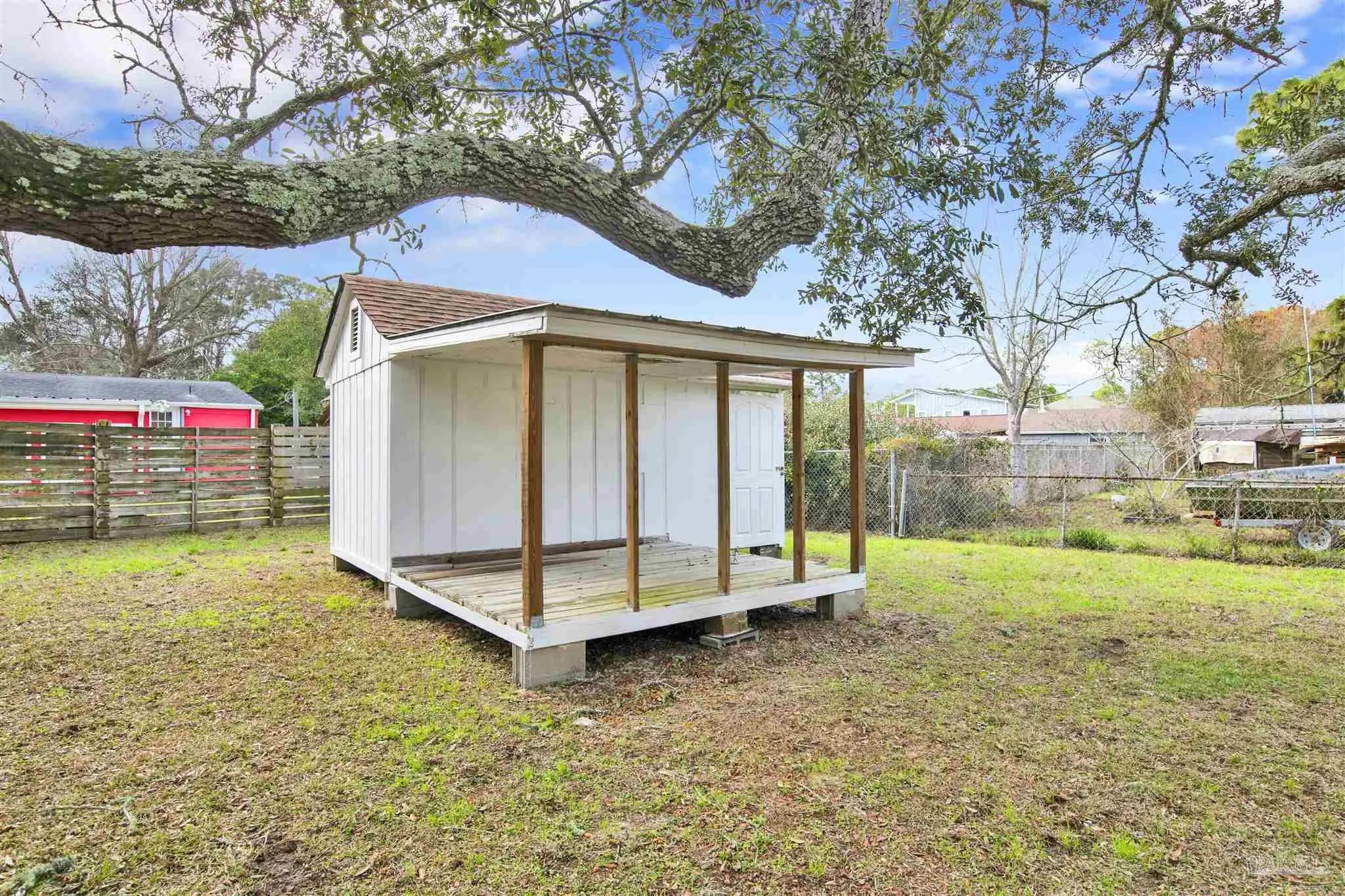 Eclectic, updated, and full of personality, this move-in-ready home offers a rare blend of character, comfort, and creative space located just a short 2 minute drive to the public boat launch by Hub Stacey's and 5 minute drive to Johnson's Beach. Inside, you’ll find refreshed finishes in this 4 bedroom/2 bath layout designed for both everyday living and entertaining. Out back is the cutest little cottage that has great potential as a remote office, studio or party hut for hosting parties. There is also a large garage that can easily fit 2 cars, lawn equipment and your golf cart for this great golf cart community. Whether you’re hosting friends, working on your next passion project, or simply unwinding in your own private spaces, this home delivers a fun, flexible lifestyle you won’t find in a cookie-cutter property so close to the beach. Convenient to shopping, dining, and Perdido Key and Pensacola’s beautiful beaches, this uniquely updated home is ready for its next owner to enjoy or for an individual looking for a short-term rental opportunity.