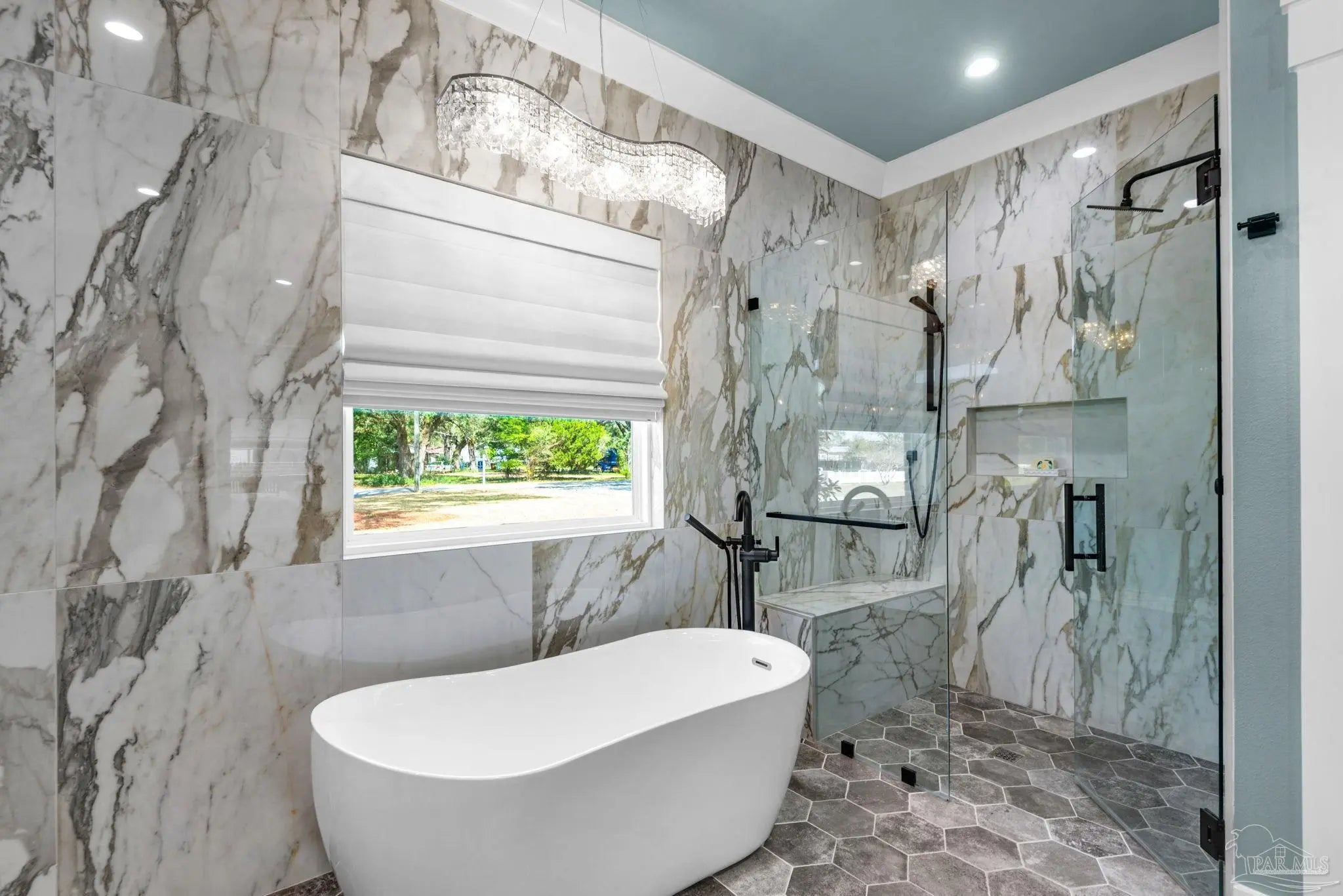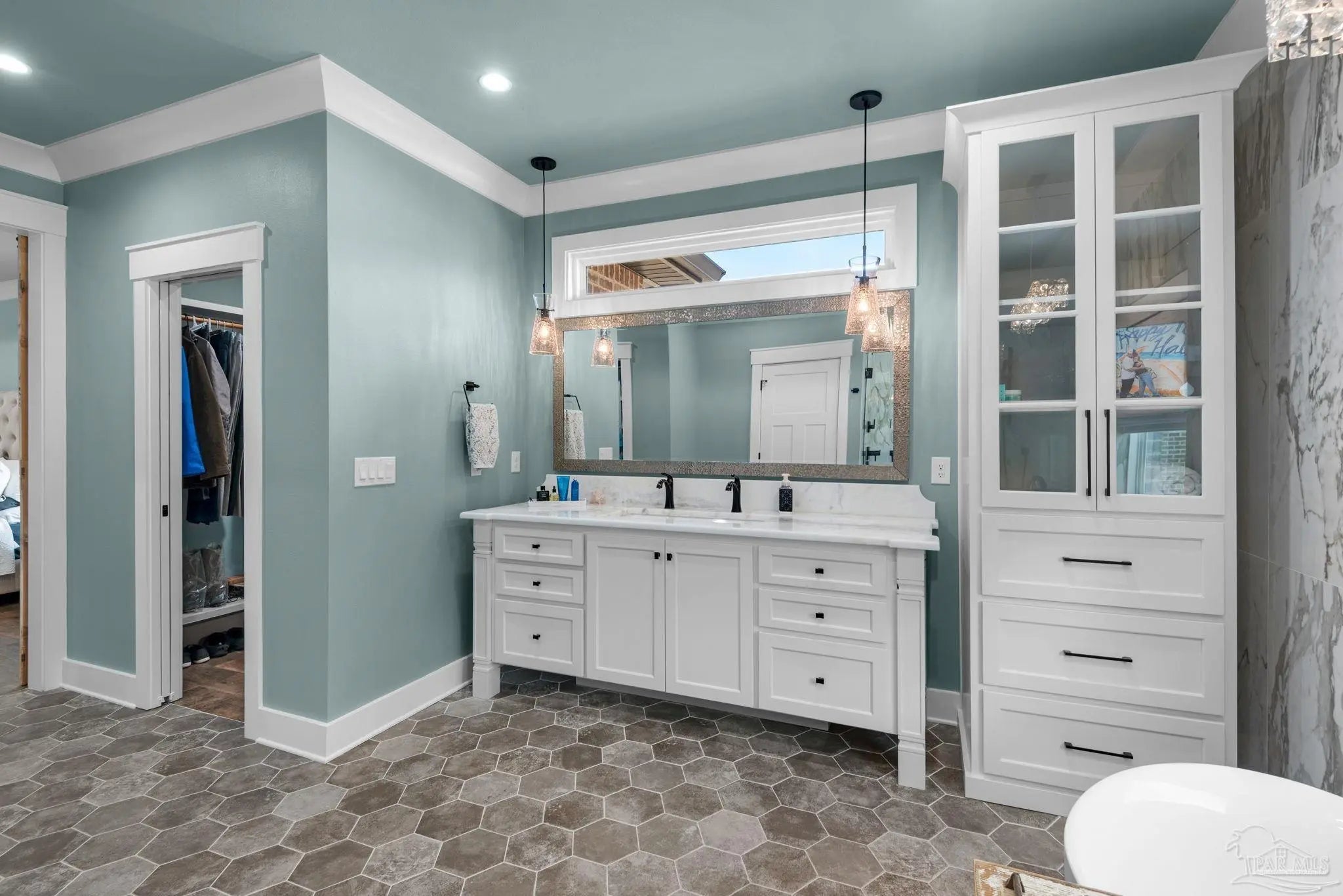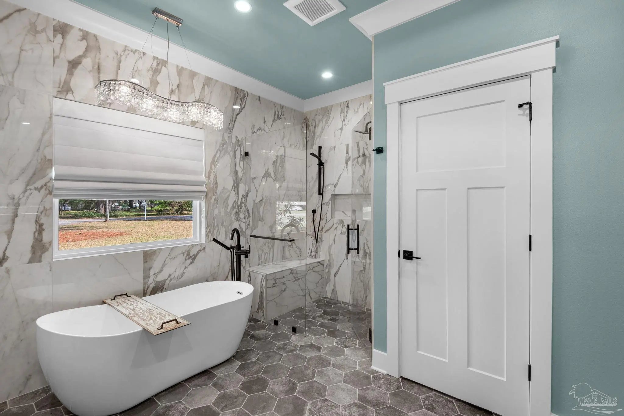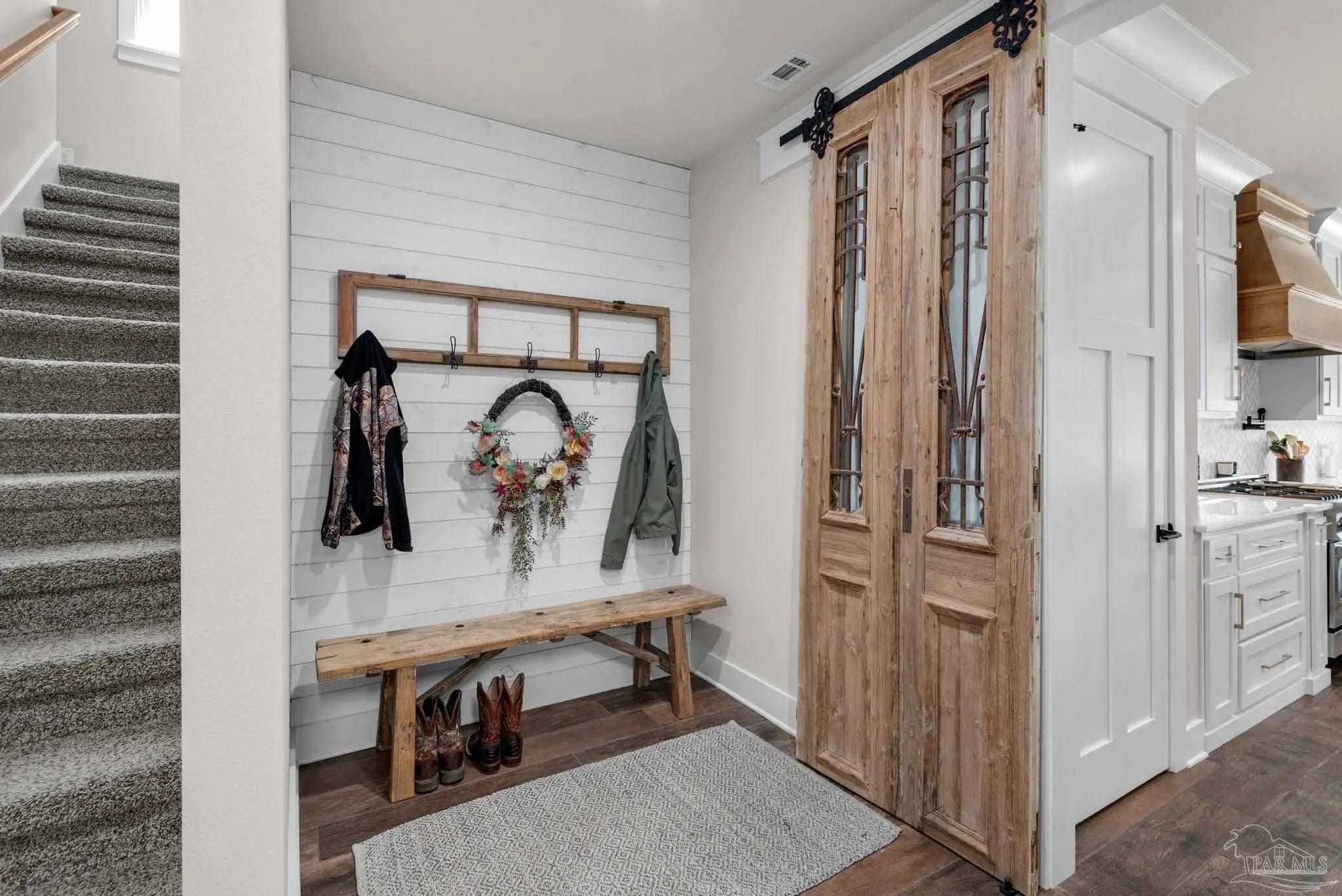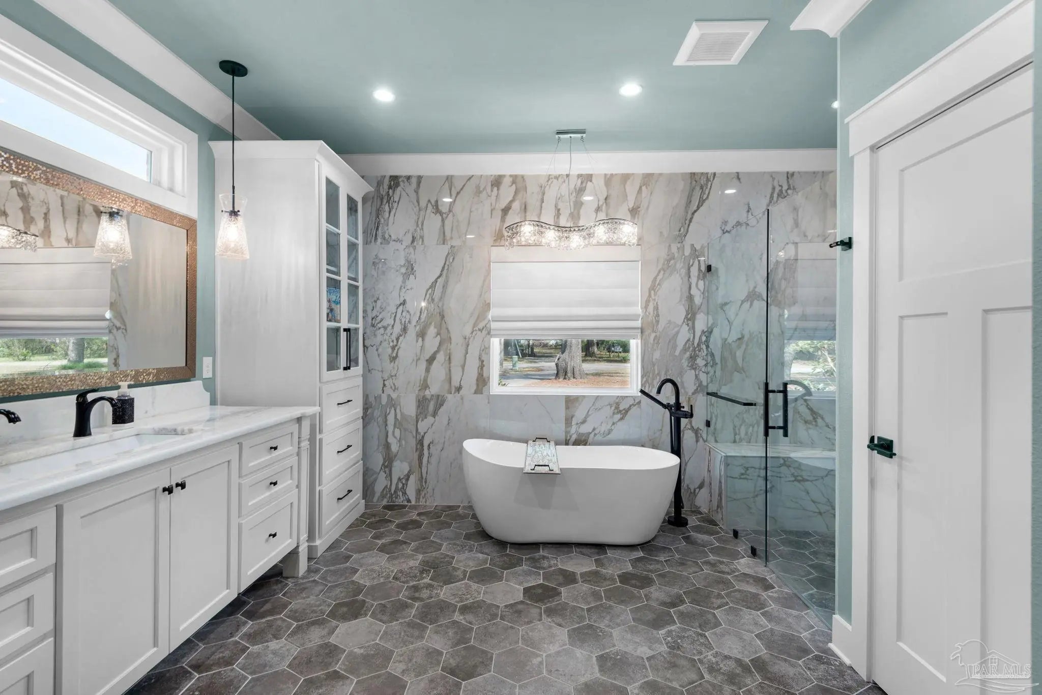 URGENT MUST-SEE! This executive custom home is loaded with upgrades and every bell and whistle, situated on a beautiful one-acre lot in the heart of Pace with no HOA. Offering 5 bedrooms and 4 bathrooms, this stunning home blends luxury finishes, thoughtful design, and incredible indoor and outdoor living. Inside, the welcoming foyer features Chicago brick accents and opens to a spacious living room with beautiful coffered wood beam ceilings. The private primary suite offers tray ceilings, an antique barn door, and a spa-inspired bathroom complete with hexagon tile flooring, a freestanding soaking tub, glass walk-in shower with bench seating, private water closet, and dual custom walk-in closets. The chef’s kitchen is a showstopper featuring quartz countertops, farmhouse sink, and a professional 48" dual-fuel range with a 7-burner gas cooktop, cast iron griddle, and double electric ovens. Additional highlights include a full-size refrigerator and freezer, floor-to-ceiling cabinetry, vent hood, under-cabinet lighting, pull-out microwave drawer, herringbone subway tile backsplash, oversized island, walk-in pantry, and drop zone. Upstairs offers a loft-style bedroom with a full bath, and walk-in attic storage. Step outside to enjoy the in-ground pool with metal safety fence and a covered lanai featuring a gas fireplace and aoutdoor kitchen, perfect for entertaining. Also includes a tankless gas water heater, spray foam installation, sprinkler system, and an oversized garage designed to fit a king-cab truck. Two driveways provide easy access to the impressive 40x80 metal building with a 20-foot open span and 14-foot roll-up doors, ideal for RVs, boats, a workshop, or additional storage. Plus, a air-conditioned workout room with full bath. Homes with this level of custom detail, land, pool, and shop rarely come available. Schedule your private showing today before this incredible property is gone.