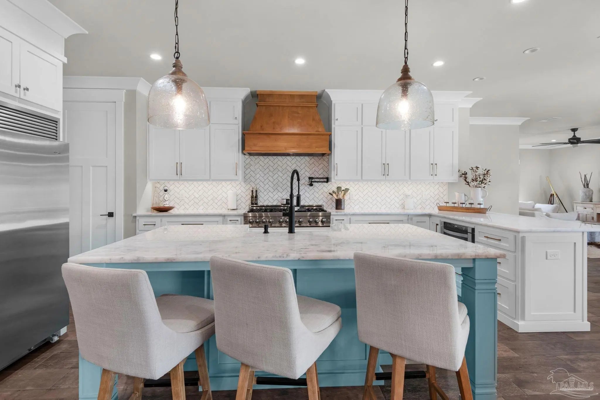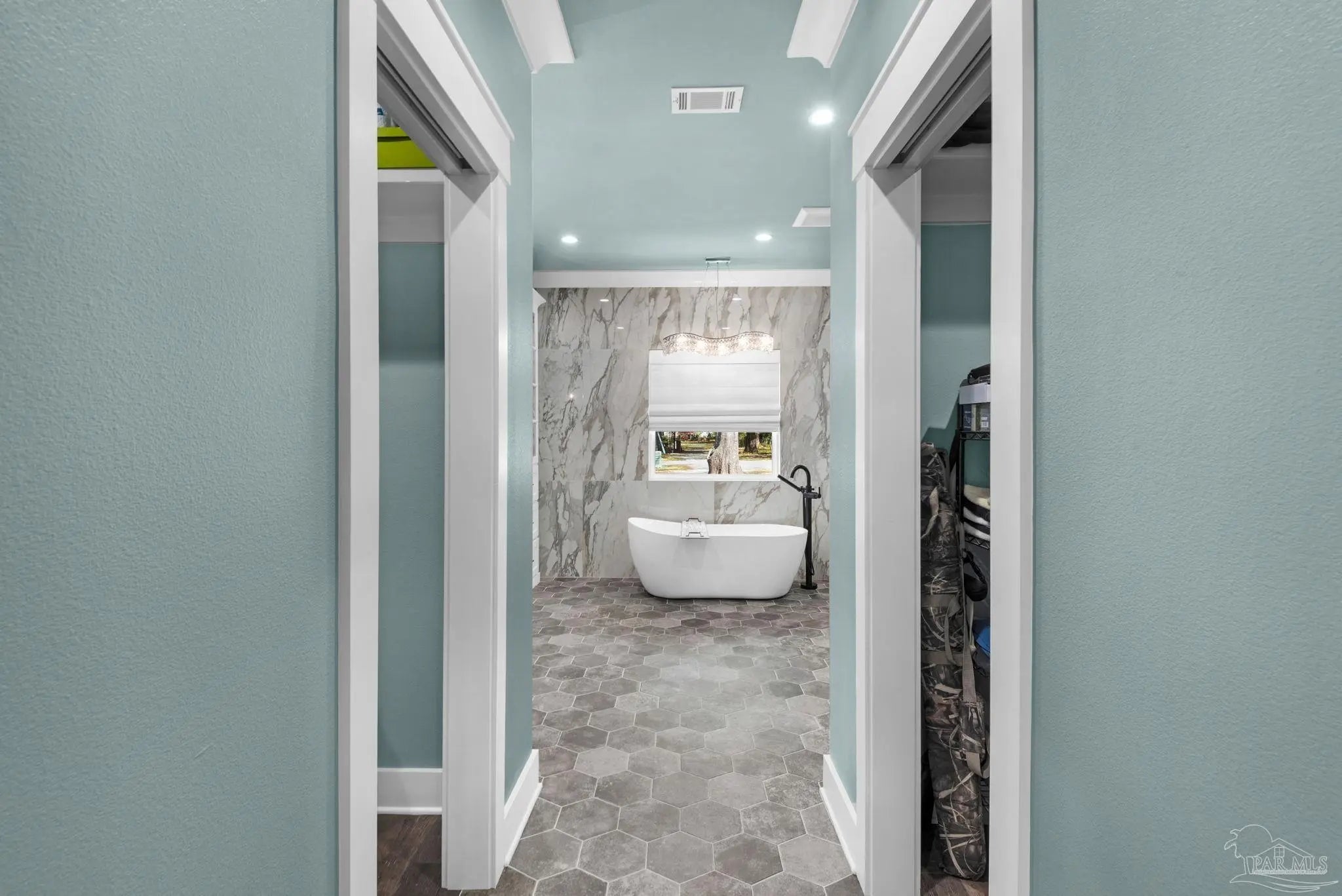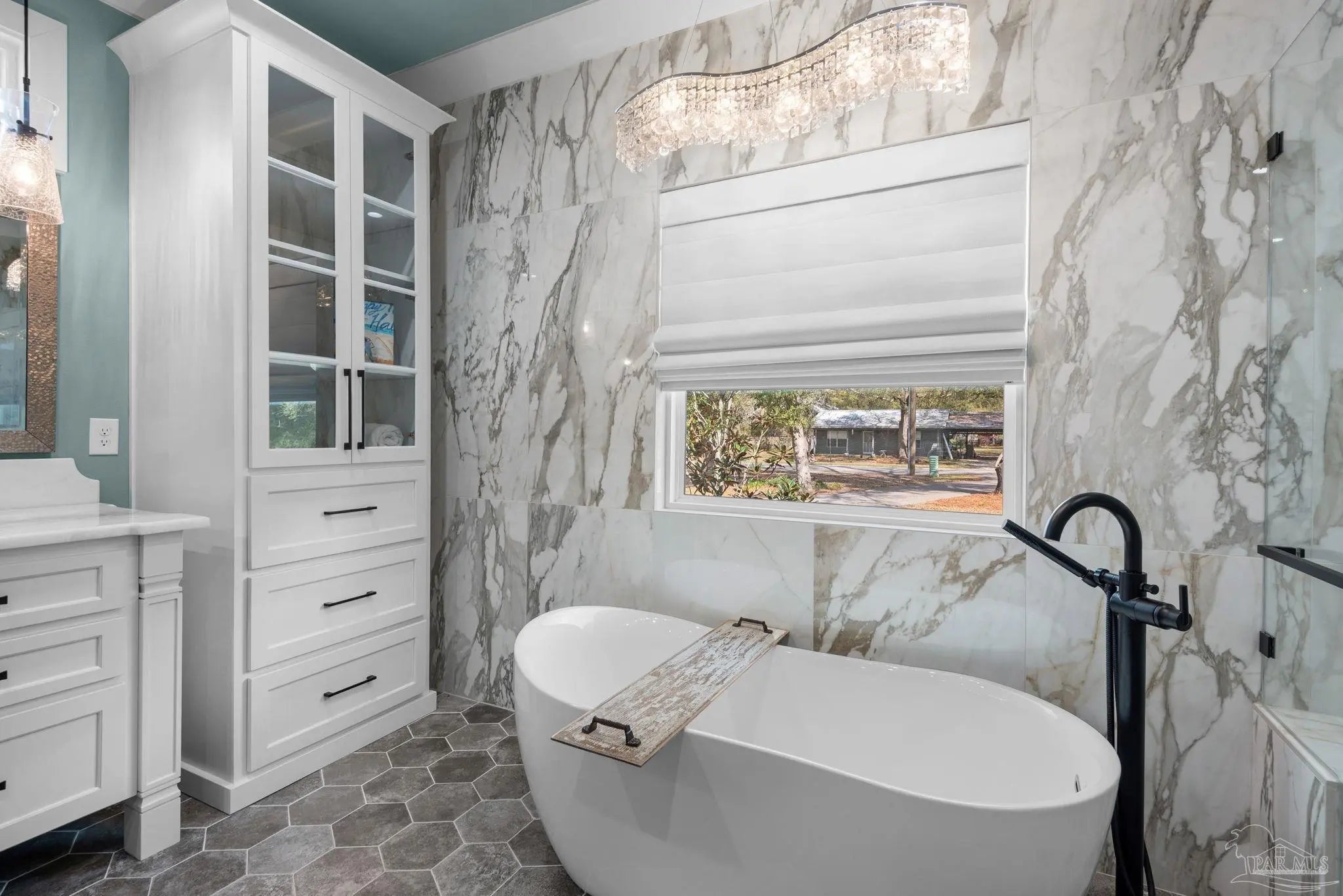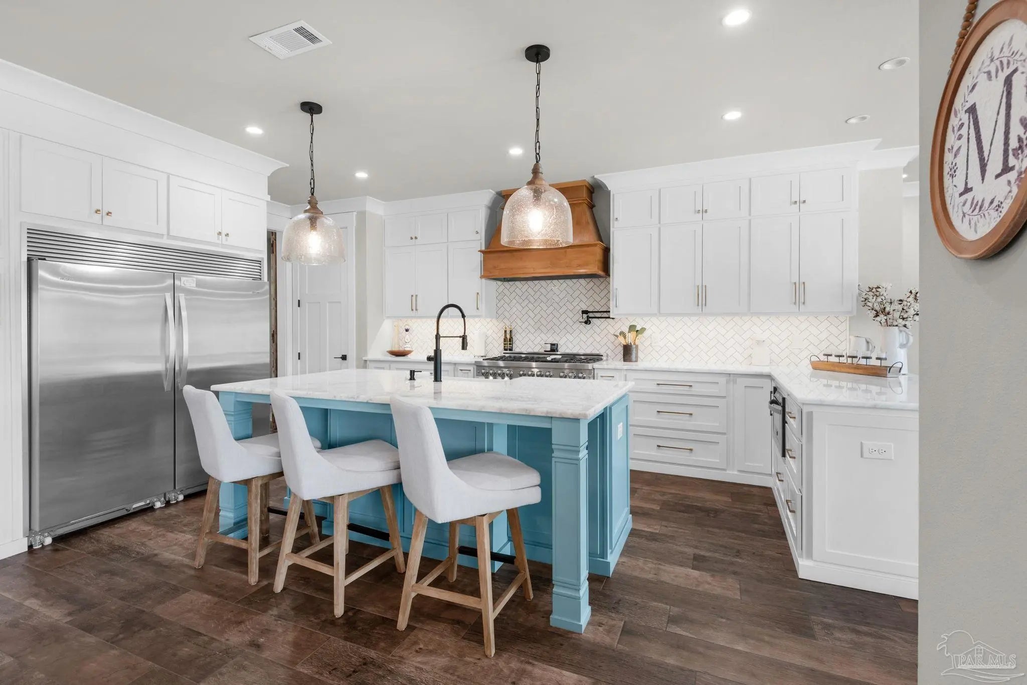 URGENT MUST-SEE! This executive custom home is loaded with upgrades and every bell and whistle, situated on a beautiful one-acre lot in the heart of Pace with no HOA. Offering 5 bedrooms and 4 bathrooms, this stunning home blends luxury finishes, thoughtful design, and incredible indoor and outdoor living. Inside, the welcoming foyer features Chicago brick accents and opens to a spacious living room with beautiful coffered wood beam ceilings. The private primary suite offers tray ceilings, an antique barn door, and a spa-inspired bathroom complete with hexagon tile flooring, a freestanding soaking tub, glass walk-in shower with bench seating, private water closet, and dual custom walk-in closets. The chef’s kitchen is a showstopper featuring quartz countertops, farmhouse sink, and a professional 48" dual-fuel range with a 7-burner gas cooktop, cast iron griddle, and double electric ovens. Additional highlights include a full-size refrigerator and freezer, floor-to-ceiling cabinetry, vent hood, under-cabinet lighting, pull-out microwave drawer, herringbone subway tile backsplash, oversized island, walk-in pantry, and drop zone. Upstairs offers a loft-style bedroom with a full bath, and walk-in attic storage. Step outside to enjoy the in-ground pool with metal safety fence and a covered lanai featuring a gas fireplace and aoutdoor kitchen, perfect for entertaining. Also includes a tankless gas water heater, spray foam installation, sprinkler system, and an oversized garage designed to fit a king-cab truck. Two driveways provide easy access to the impressive 40x80 metal building with a 20-foot open span and 14-foot roll-up doors, ideal for RVs, boats, a workshop, or additional storage. Plus, a air-conditioned workout room with full bath. Homes with this level of custom detail, land, pool, and shop rarely come available. Schedule your private showing today before this incredible property is gone.