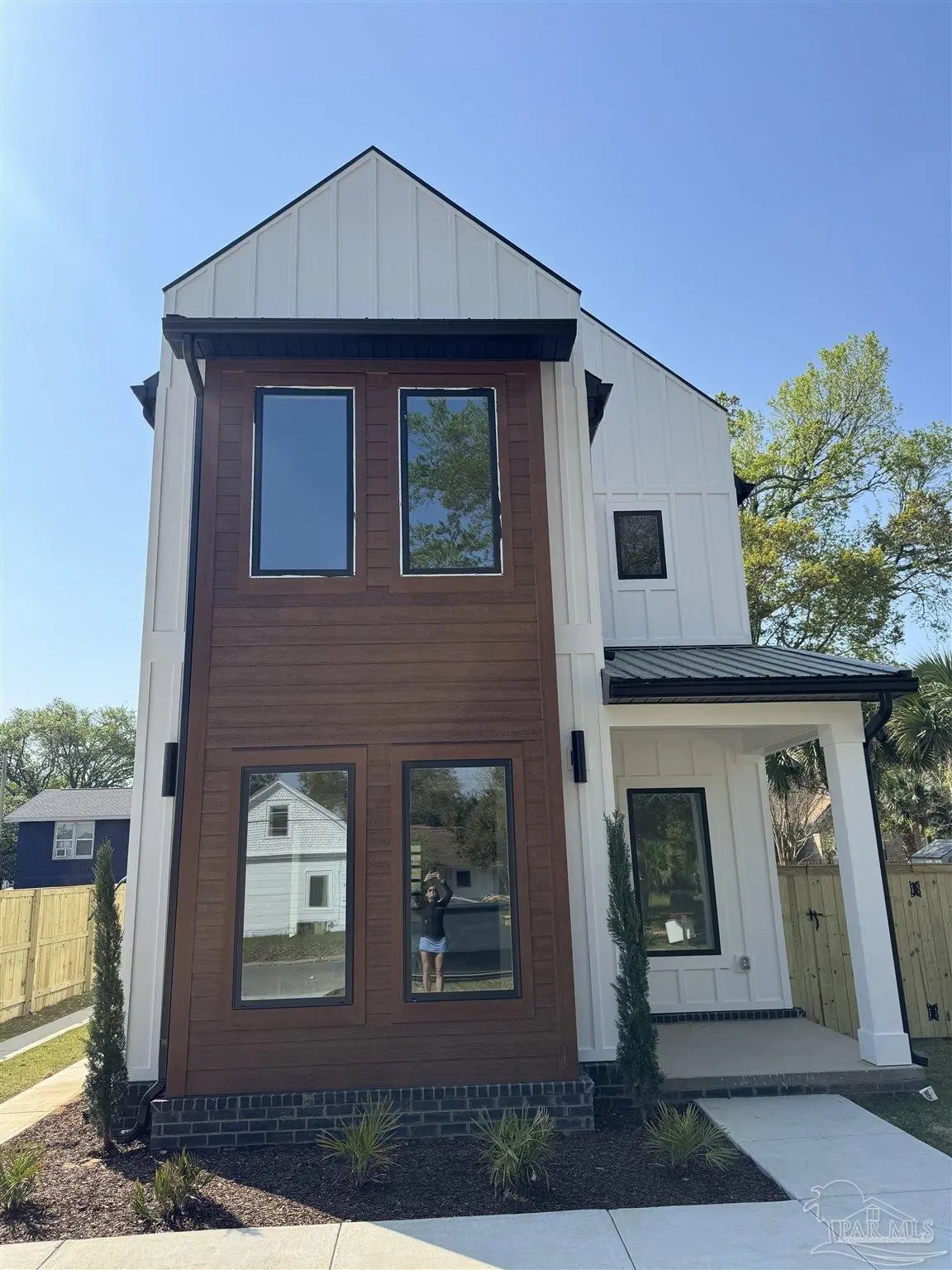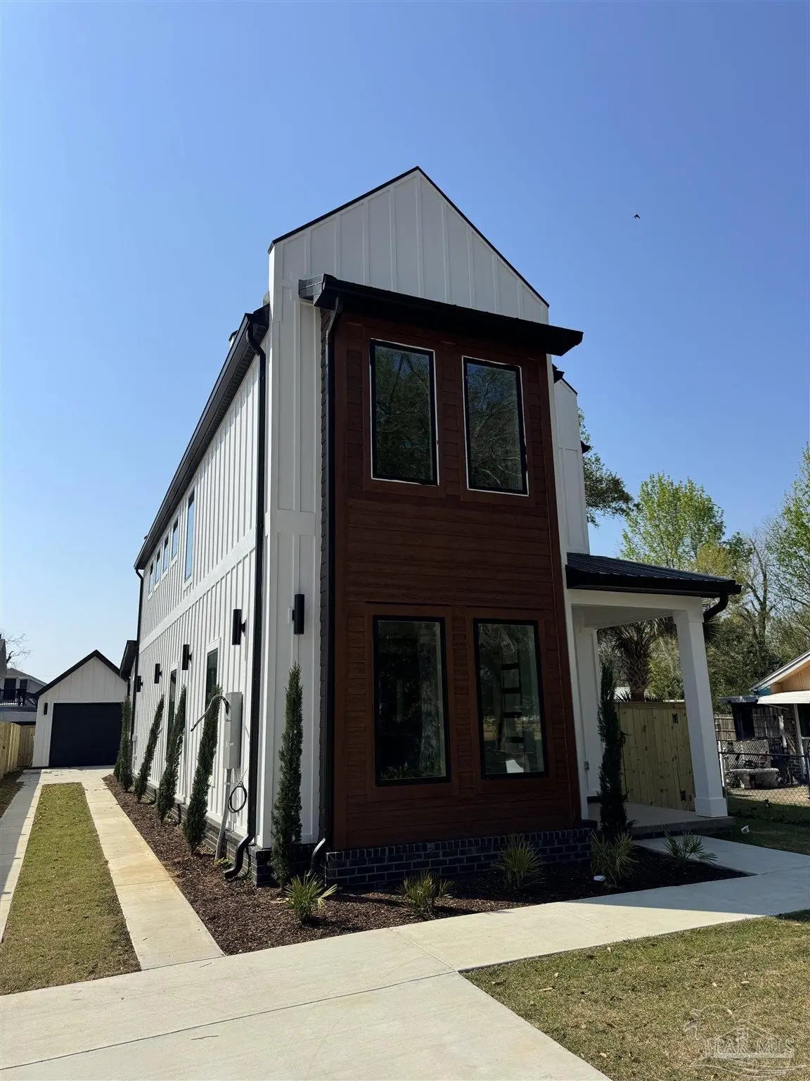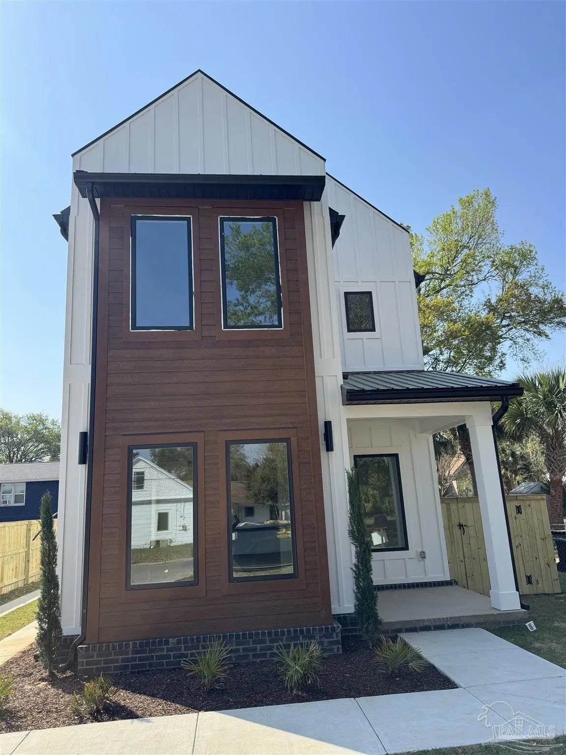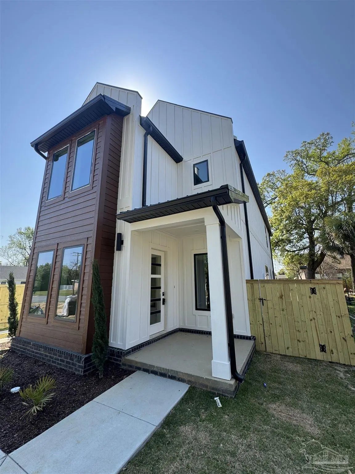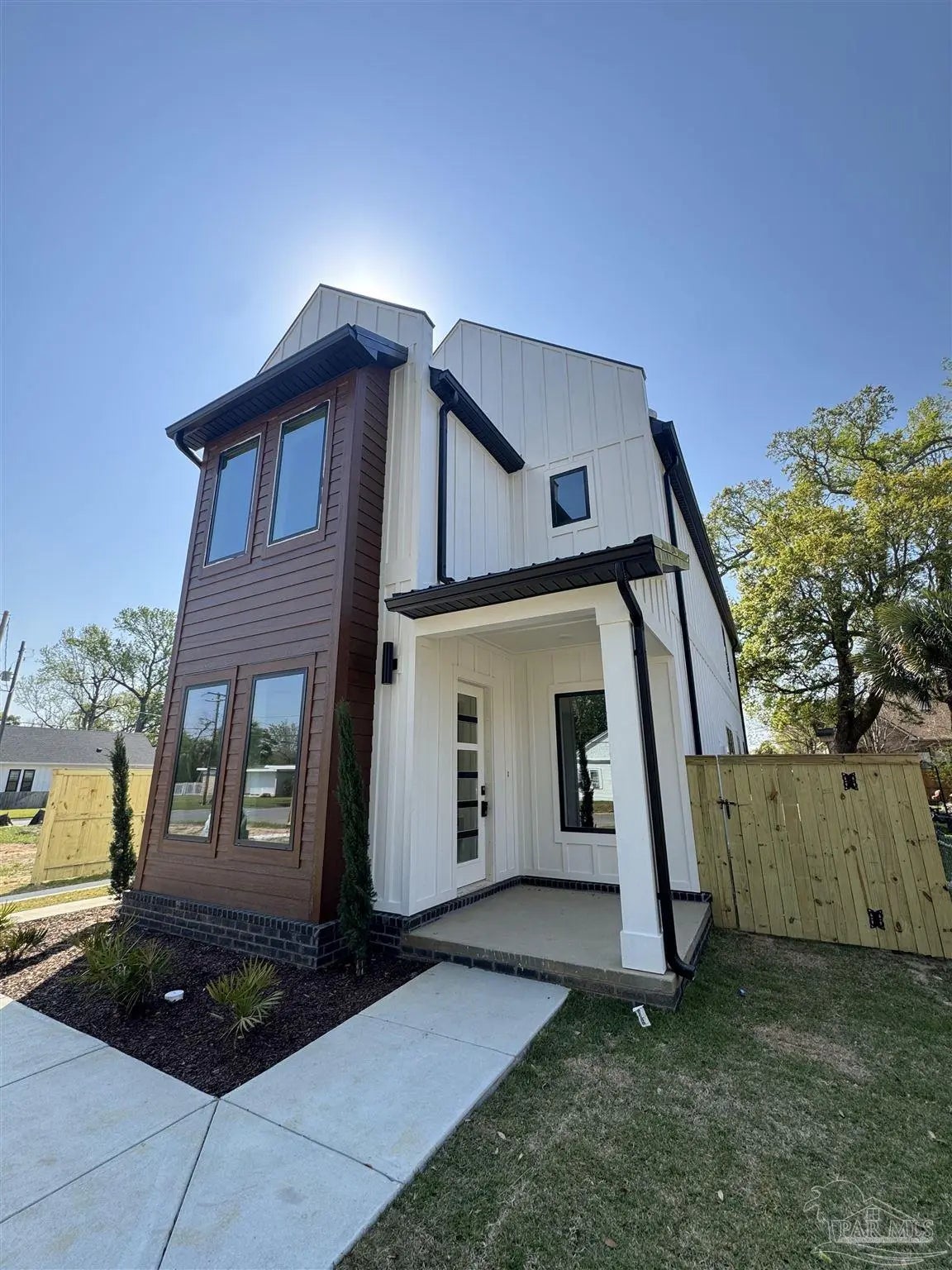 Our most striking design to date, 1519 E Hatton boasts modern charm with an stunning exterior. A unique roofline is immediately eye-catching and makes this home stand out amongst the rest. Soaring ceilings and custom features A second-floor bump-out provides dpeth to the exterior while a first-floor covered patio and kitchenette gives the homeowner a place to relax. The first floor holds an open living and kitchen area complete with custom cabinets, modern plumbing, and a gorgeous fireplace. Off the kitchen, you will find a powder room for guests and a dedicated dining room flush with large windows and natural light. Three bedrooms are located on the second story, including a primary suite and two additional bedrooms. One of the most creative features of this home is that the laundry room is connected to the walk-in closet in the primary suite.