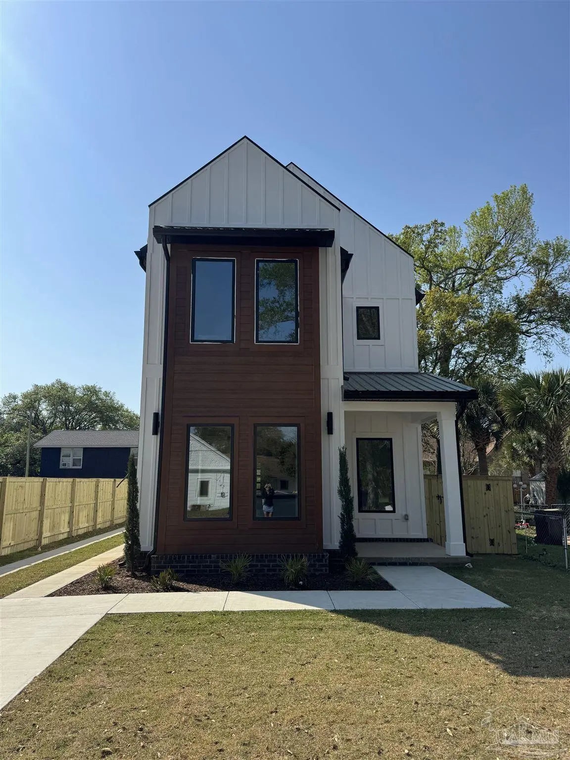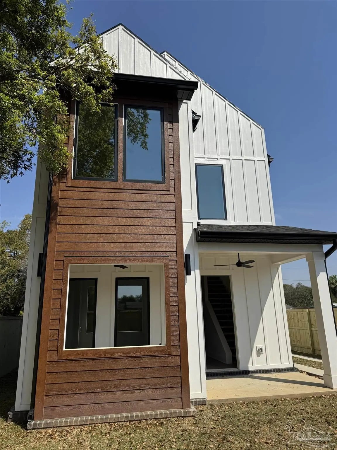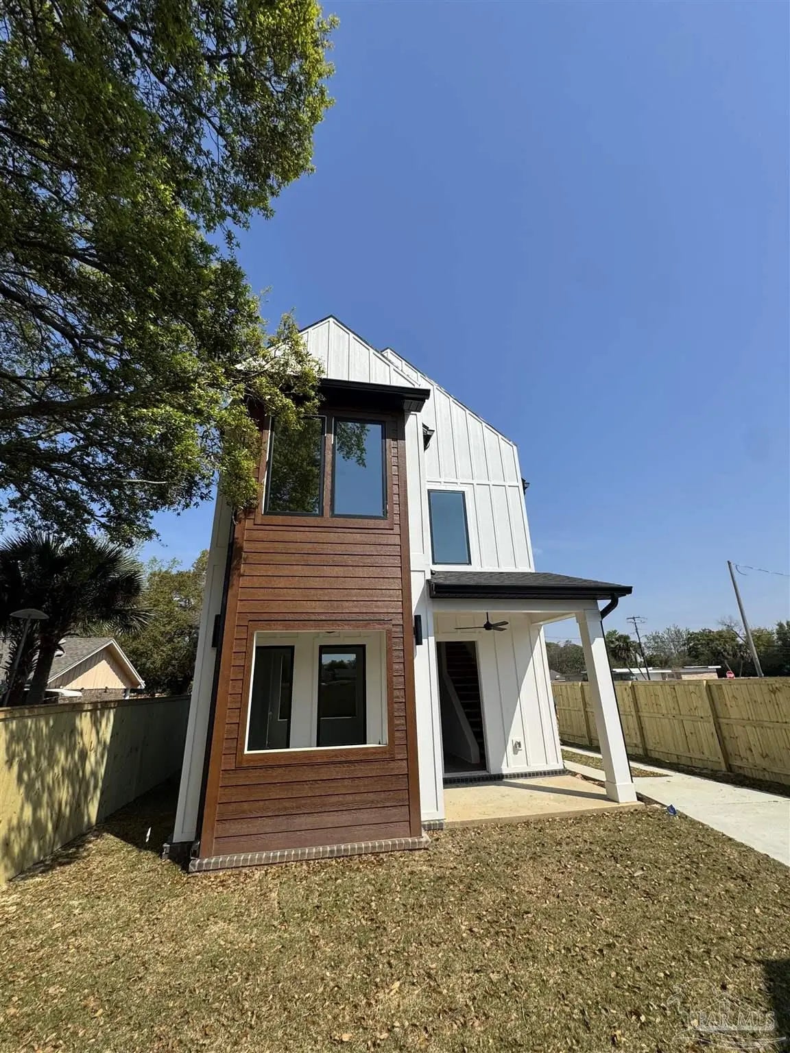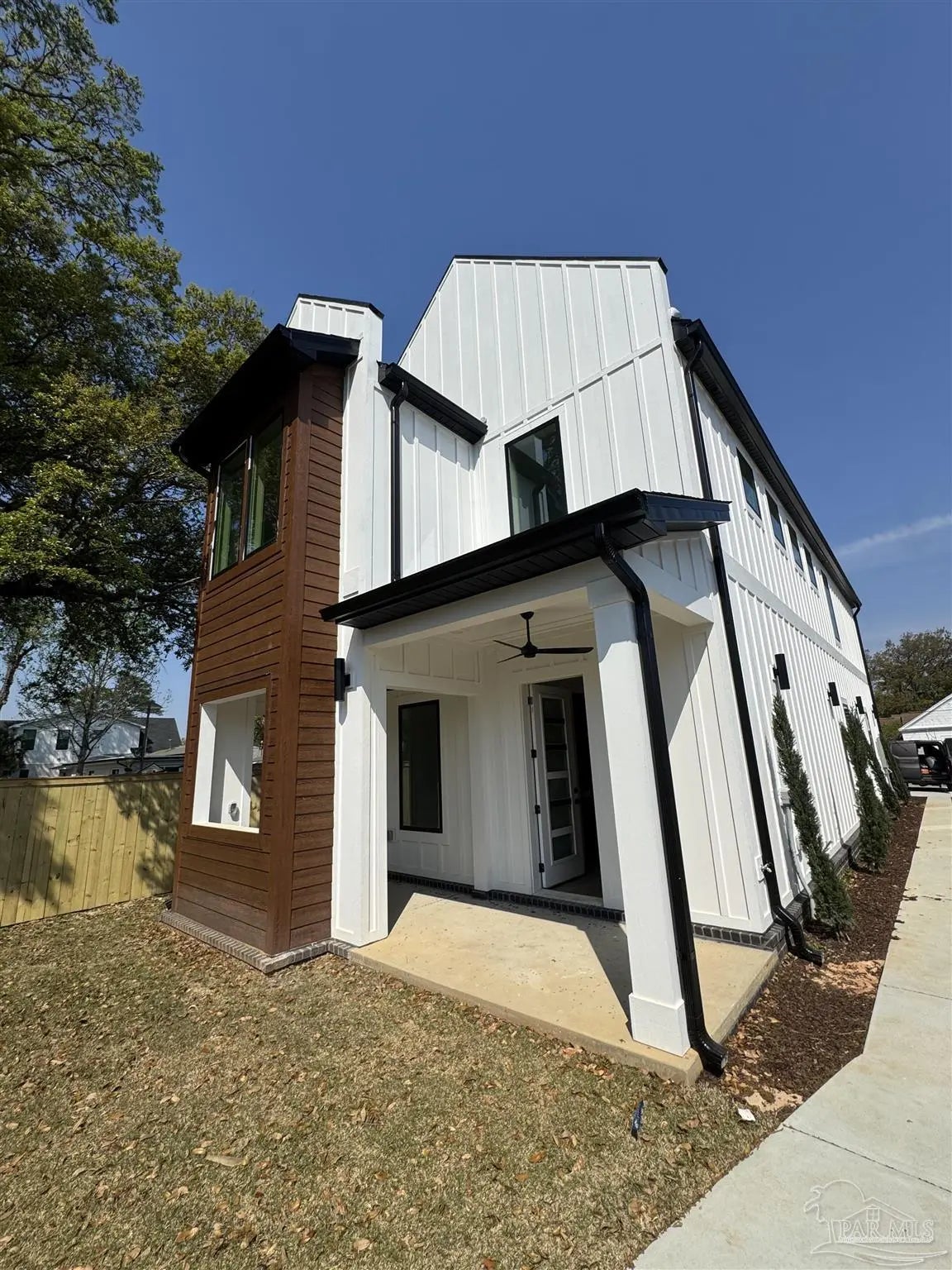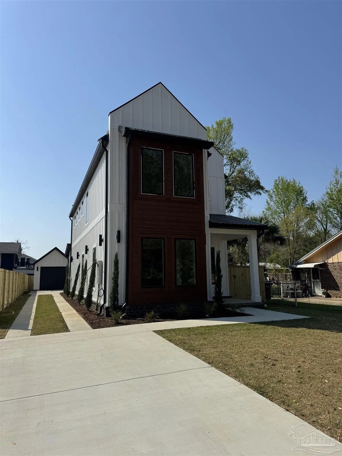 Our most striking design to date, 1519 E Hatton boasts modern charm with an stunning exterior. A unique roofline is immediately eye-catching and makes this home stand out amongst the rest. Soaring ceilings and custom features A second-floor bump-out provides dpeth to the exterior while a first-floor covered patio and kitchenette gives the homeowner a place to relax. The first floor holds an open living and kitchen area complete with custom cabinets, modern plumbing, and a gorgeous fireplace. Off the kitchen, you will find a powder room for guests and a dedicated dining room flush with large windows and natural light. Three bedrooms are located on the second story, including a primary suite and two additional bedrooms. One of the most creative features of this home is that the laundry room is connected to the walk-in closet in the primary suite.