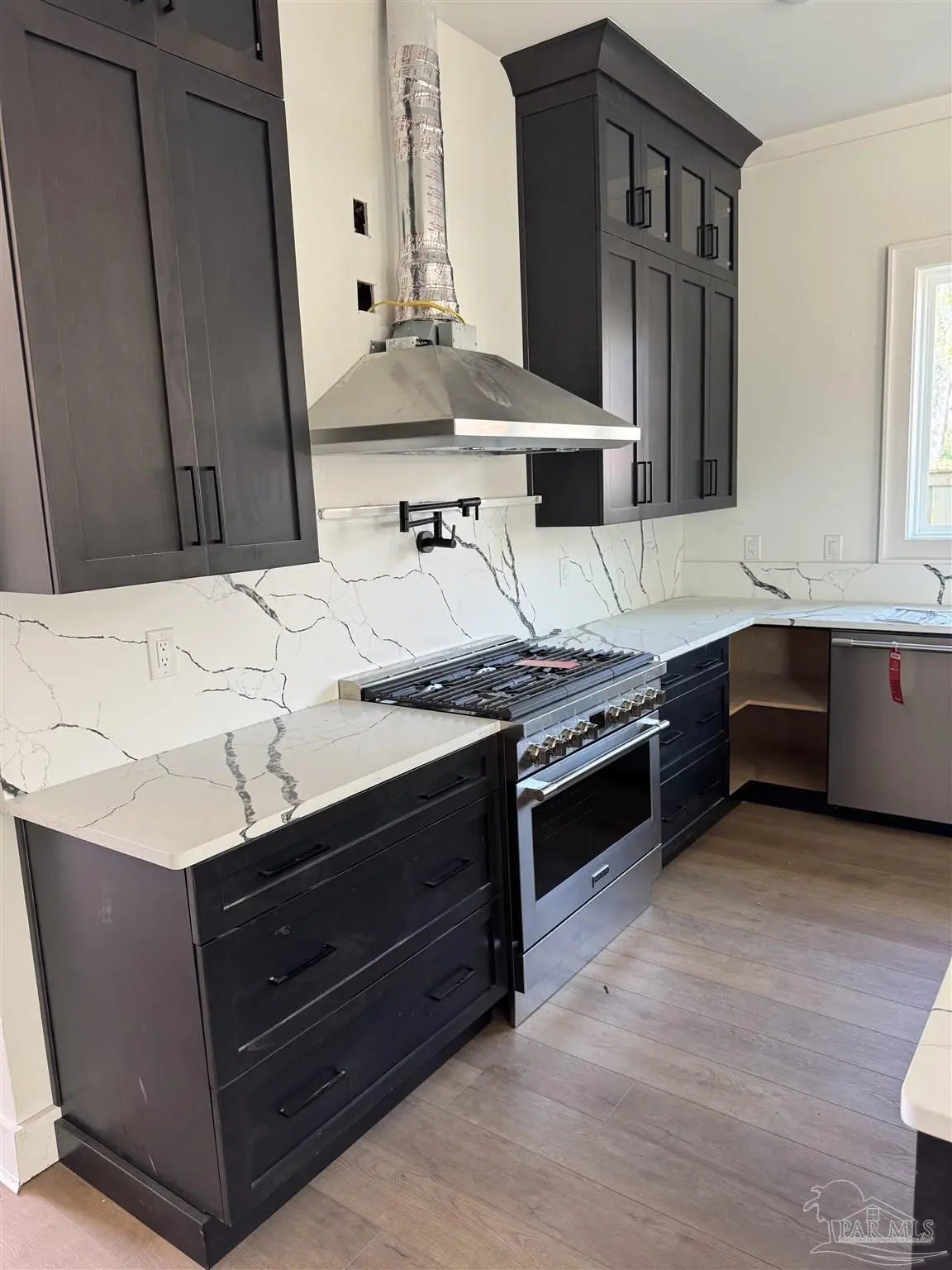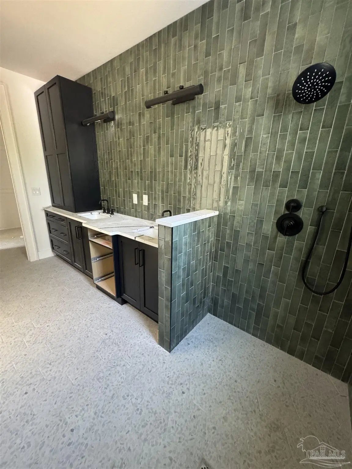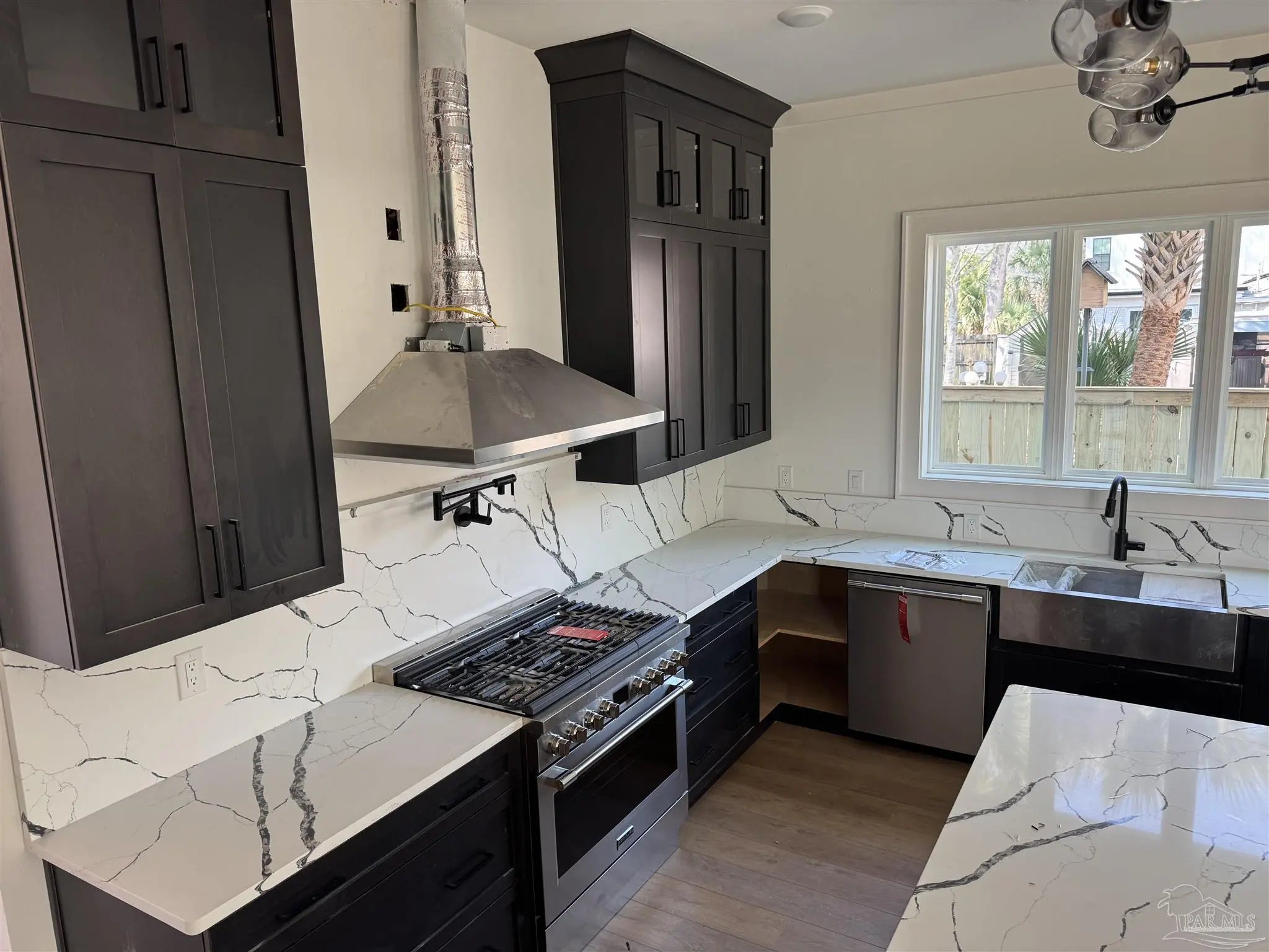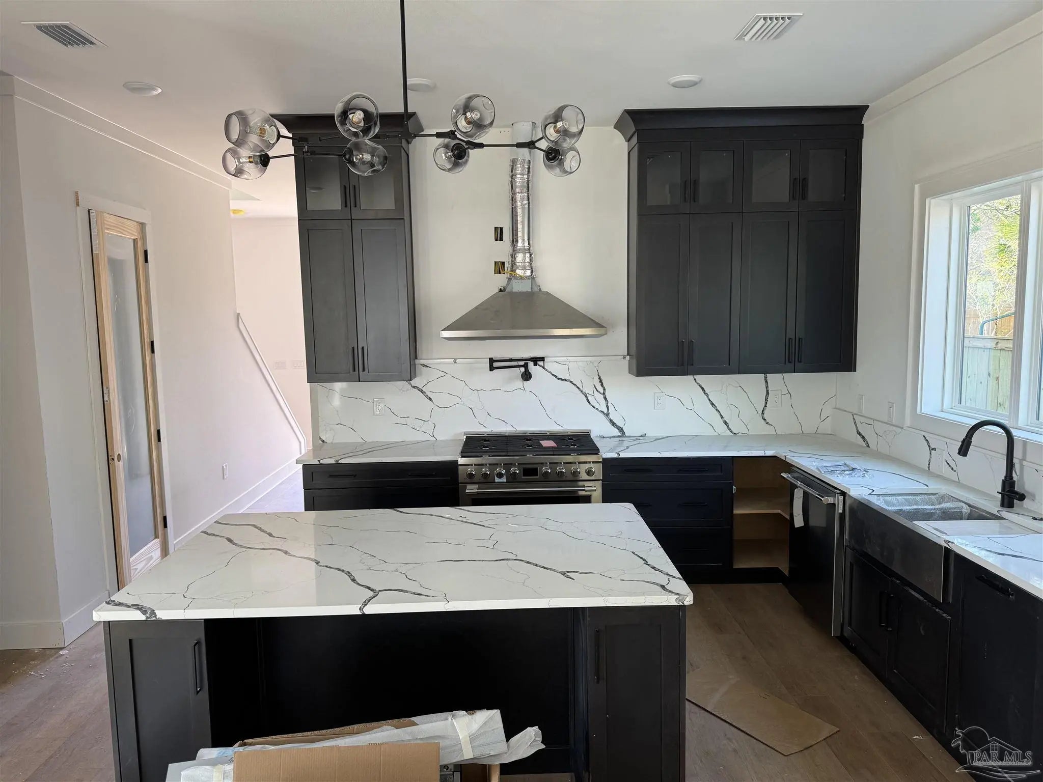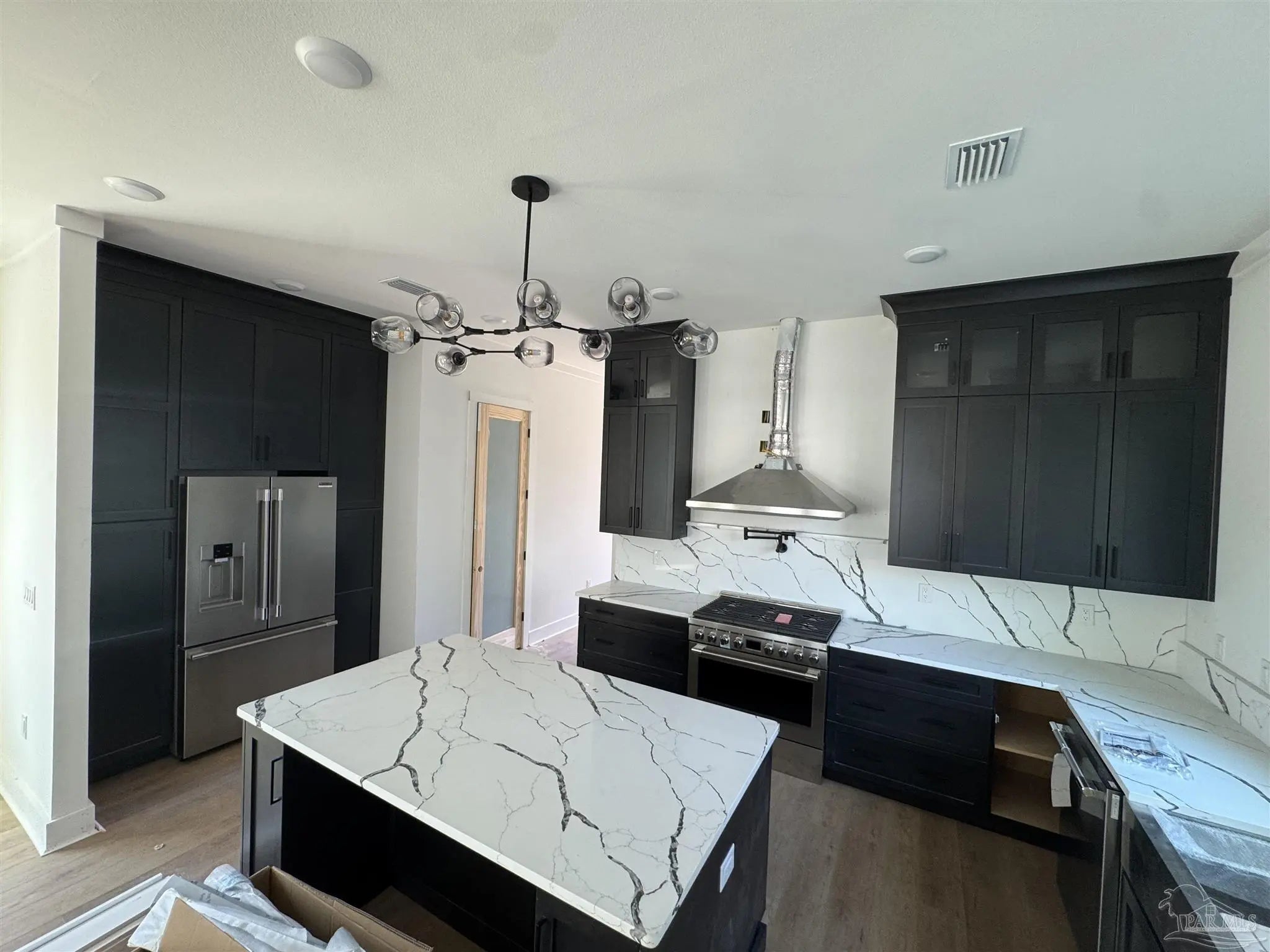 Our most striking design to date, 1519 E Hatton boasts modern charm with an stunning exterior. A unique roofline is immediately eye-catching and makes this home stand out amongst the rest. Soaring ceilings and custom features A second-floor bump-out provides dpeth to the exterior while a first-floor covered patio and kitchenette gives the homeowner a place to relax. The first floor holds an open living and kitchen area complete with custom cabinets, modern plumbing, and a gorgeous fireplace. Off the kitchen, you will find a powder room for guests and a dedicated dining room flush with large windows and natural light. Three bedrooms are located on the second story, including a primary suite and two additional bedrooms. One of the most creative features of this home is that the laundry room is connected to the walk-in closet in the primary suite.