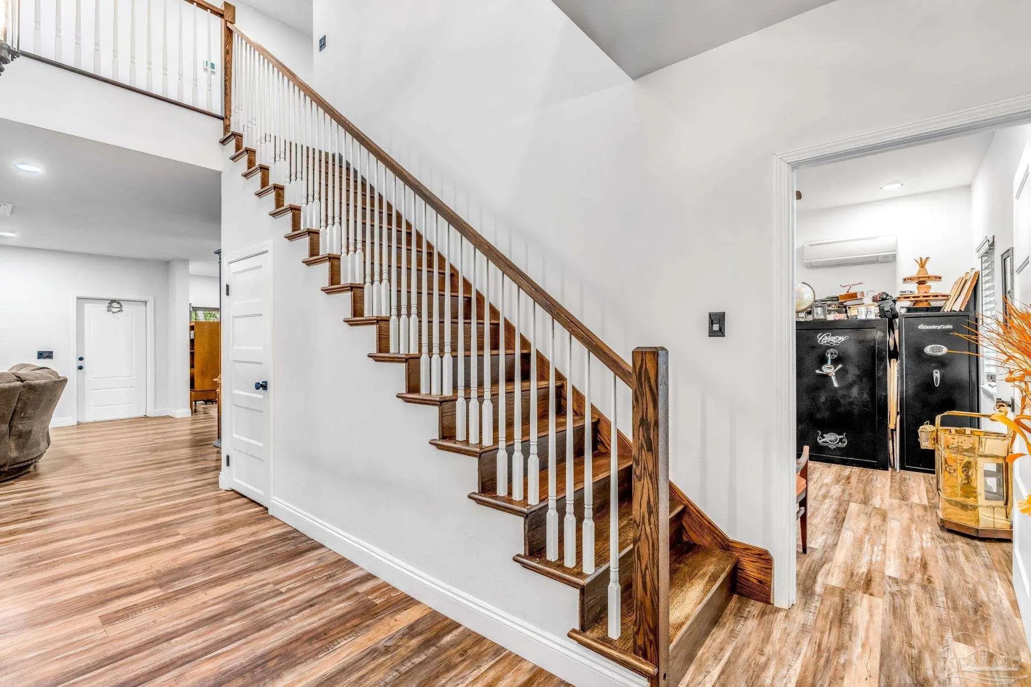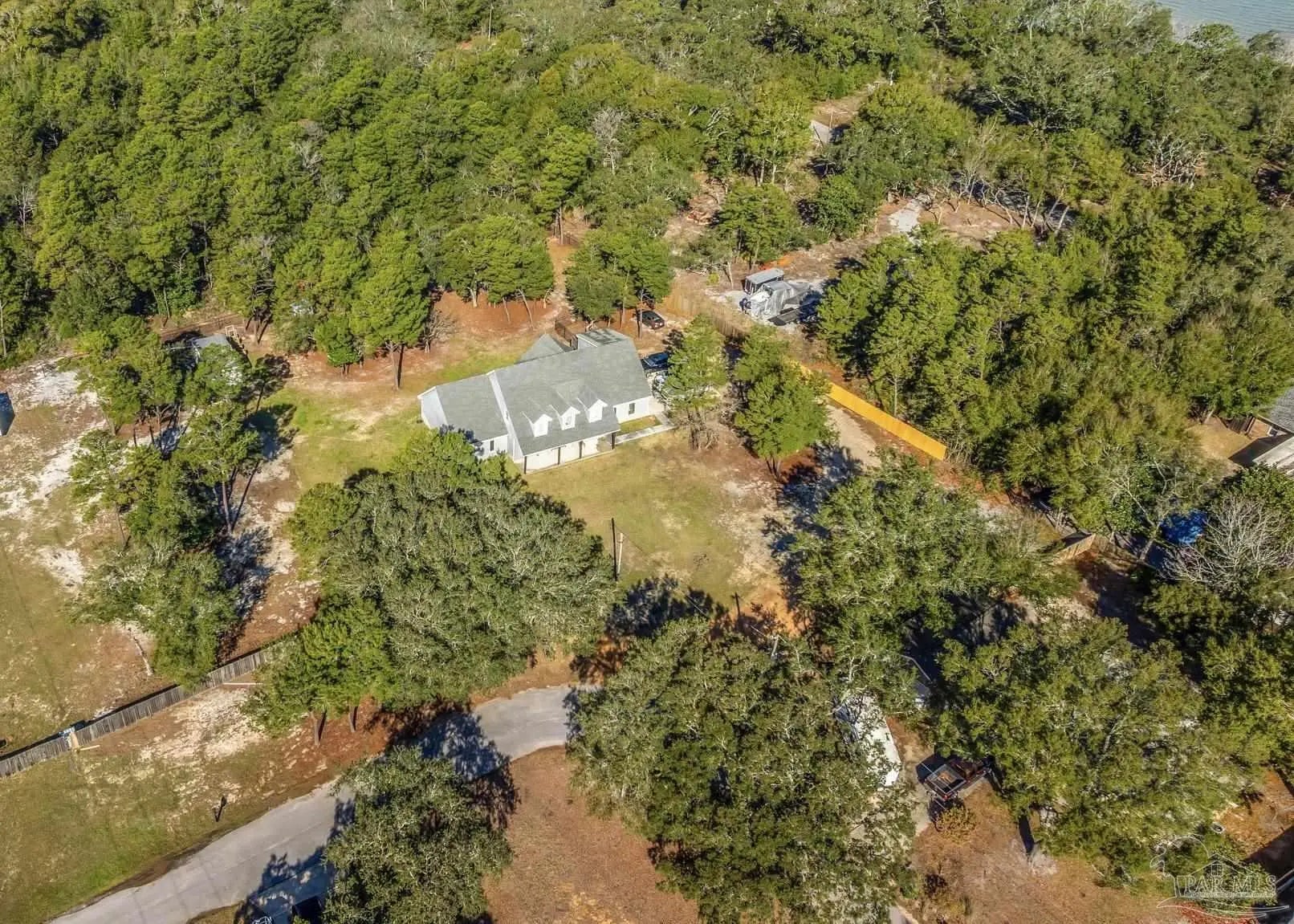 BUILT DIFFERENT. BUILT STRONG. BUILT TO LAST... ONE OF A KIND 5 bedrooms, 3 full bathrooms, plus office/bonus room, Master Bedroom downstairs...STEEL FRAME HOME on 1.412 acres! SEE the Virtual Tour. This is not your average home — and it was never meant to be. Constructed with a steel frame for superior strength and durability, this two-story property stands in a class of its own. Inside, you’ll find 5 oversized bedrooms, and one even opens to a private balcony overlooking your wooded surroundings. 3 full bathrooms, and two laundry rooms — one upstairs and one downstairs — because convenience matters. Spray foam insulation. Split system for lower utility bills. Gas tankless water heater. Three attic spaces. Smart features throughout the home. The kitchen is built to perform with soft-close cabinets, stainless steel appliances, white subway tile, and a chef's pot filler faucet. The temperature-controlled garage adds further flexibility and comfort for those hobbyist who like to work in the garage. Step outside and you’ve got space most buyers only dream about — over 1.4 acres, extended driveway with abundant parking, fruit trees (plum, peach, lemon, lime), irrigation system supplied by a 35' well, and even a negotiable chicken coop with egg laying ladies. Find another steel-frame home on this much land in Gulf Breeze. We’ll wait. This is space. This is strength. This is one of one. What are you waiting for?