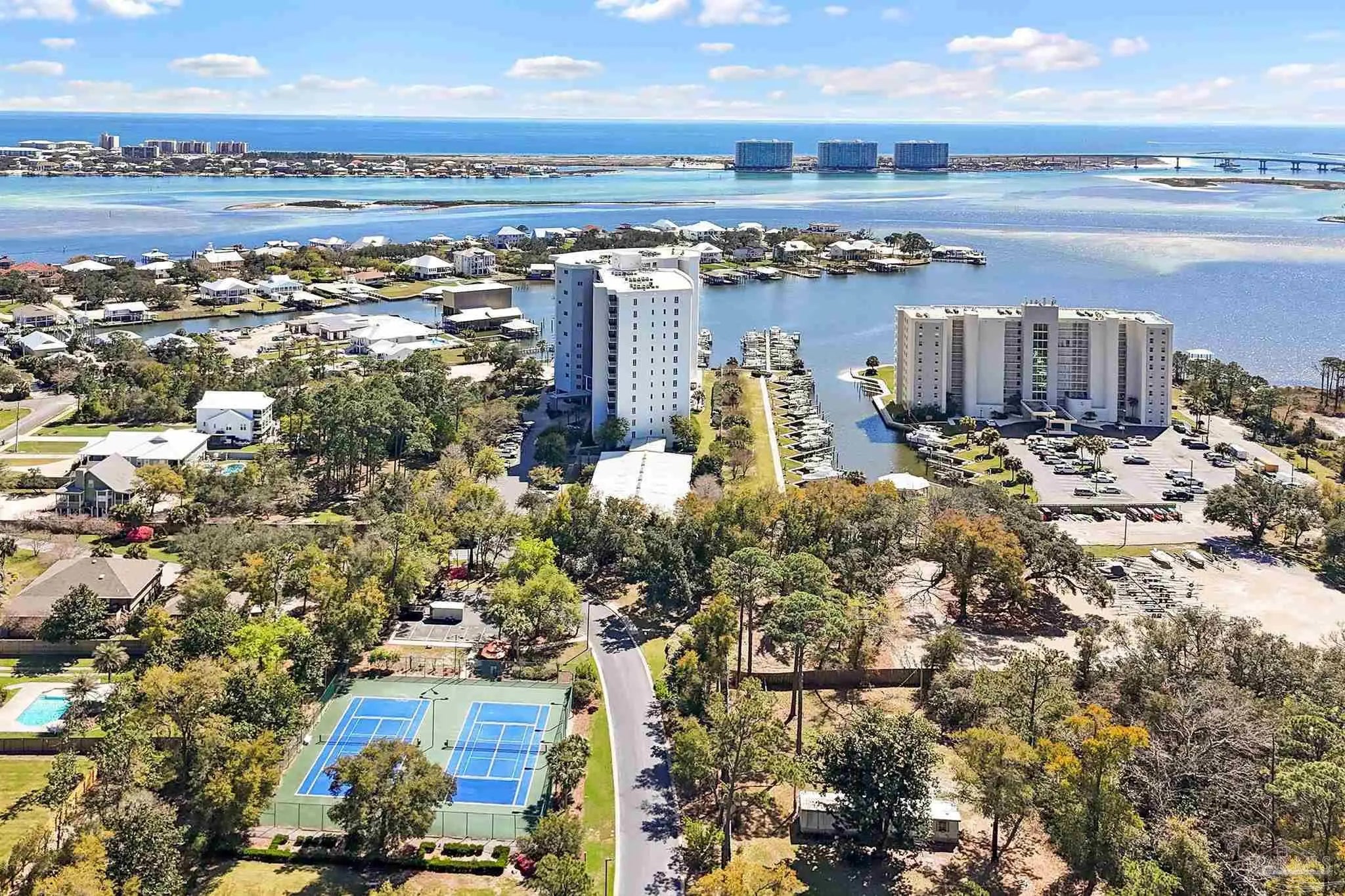 xperience one of the most spectacular coastal views in Orange Beach from this beautifully updated 3-bedroom, 3-bath residence in the prestigious gated community of Bayshore Towers. Wake each morning to breathtaking sunrises over the bay and enjoy serene waterfront living from the expansive private balcony, complete with a brand-new natural gas grill (March 2025), brand new plank flooring in all bedrooms (March 2025) and sweeping views of the pool and bay. Inside, the condo has been thoughtfully upgraded with new hardwood kitchen cabinetry with soft-close doors and drawers, stunning quartzite countertops, new high-end appliances, updated lighting, and fresh paint throughout. New flooring in all bedrooms adds to the refined coastal feel, creating a move-in-ready retreat. This residence is being sold fully furnished and offers peace of mind with a new HVAC system (2022) and new water heater (2023). Set across 7+ beautifully landscaped acres, Bayshore Towers offers exceptional amenities including walking paths, a park, fruit trees, two outdoor pools, tennis and pickleball courts, two fitness rooms, and a spacious owners’ gathering room for private events. The community also features onsite property management and without the congestion of short-term vacation rentals. Covered parking and boat slips are additional deeded options as opportunities are available and at varied additional property values. A rare opportunity in one of Orange Beach’s most sought-after complexes, Bayshore Towers.