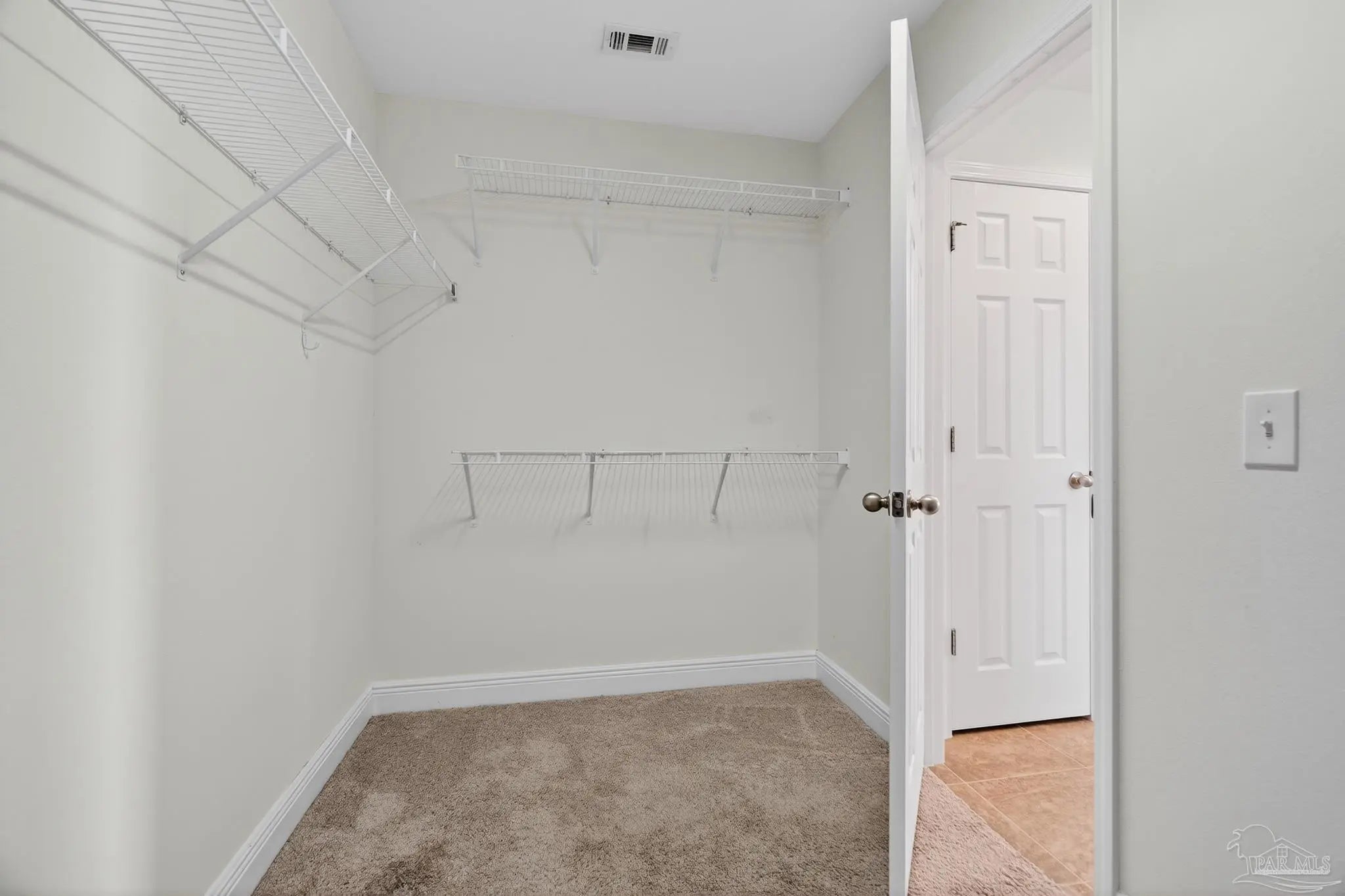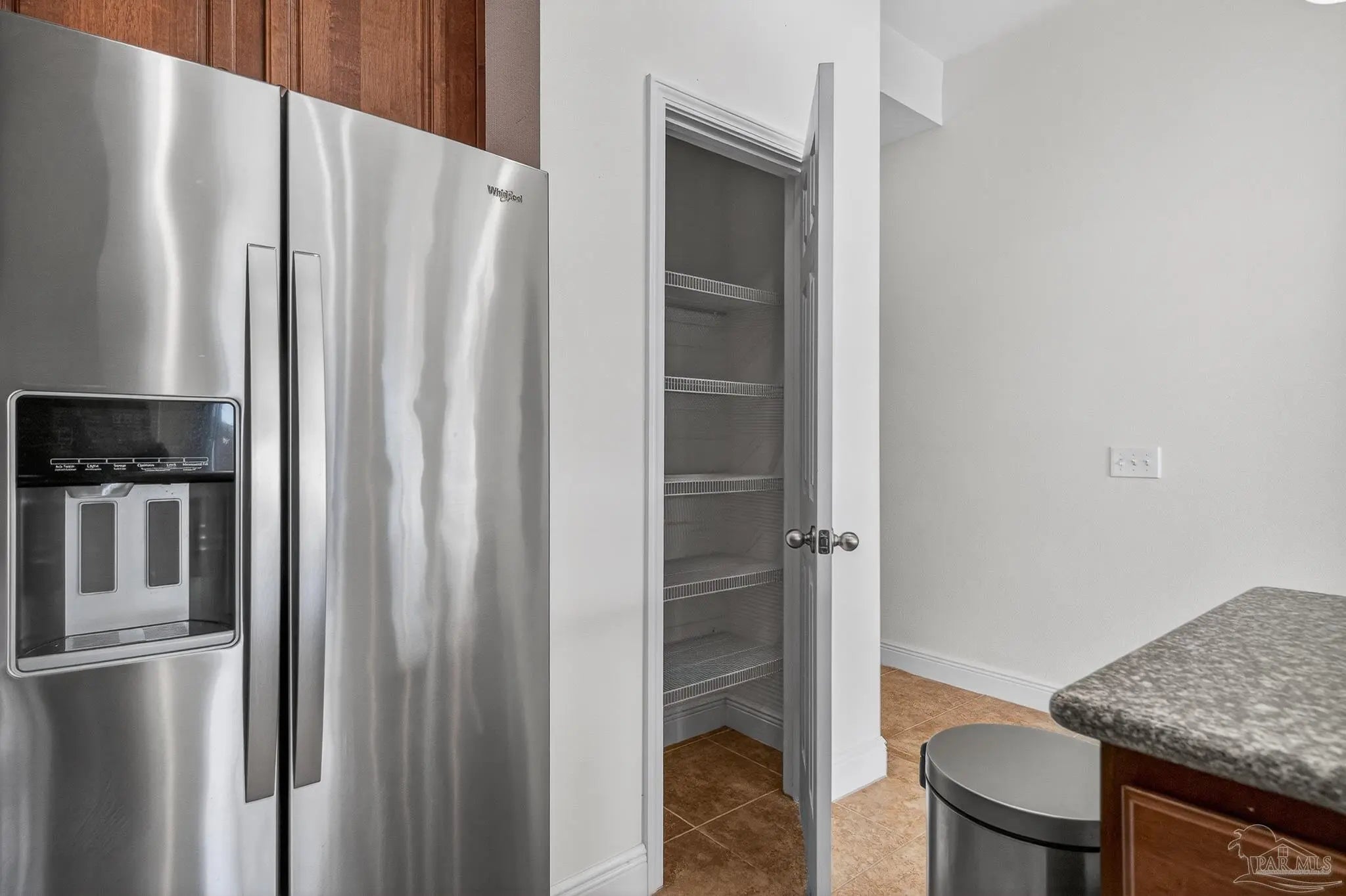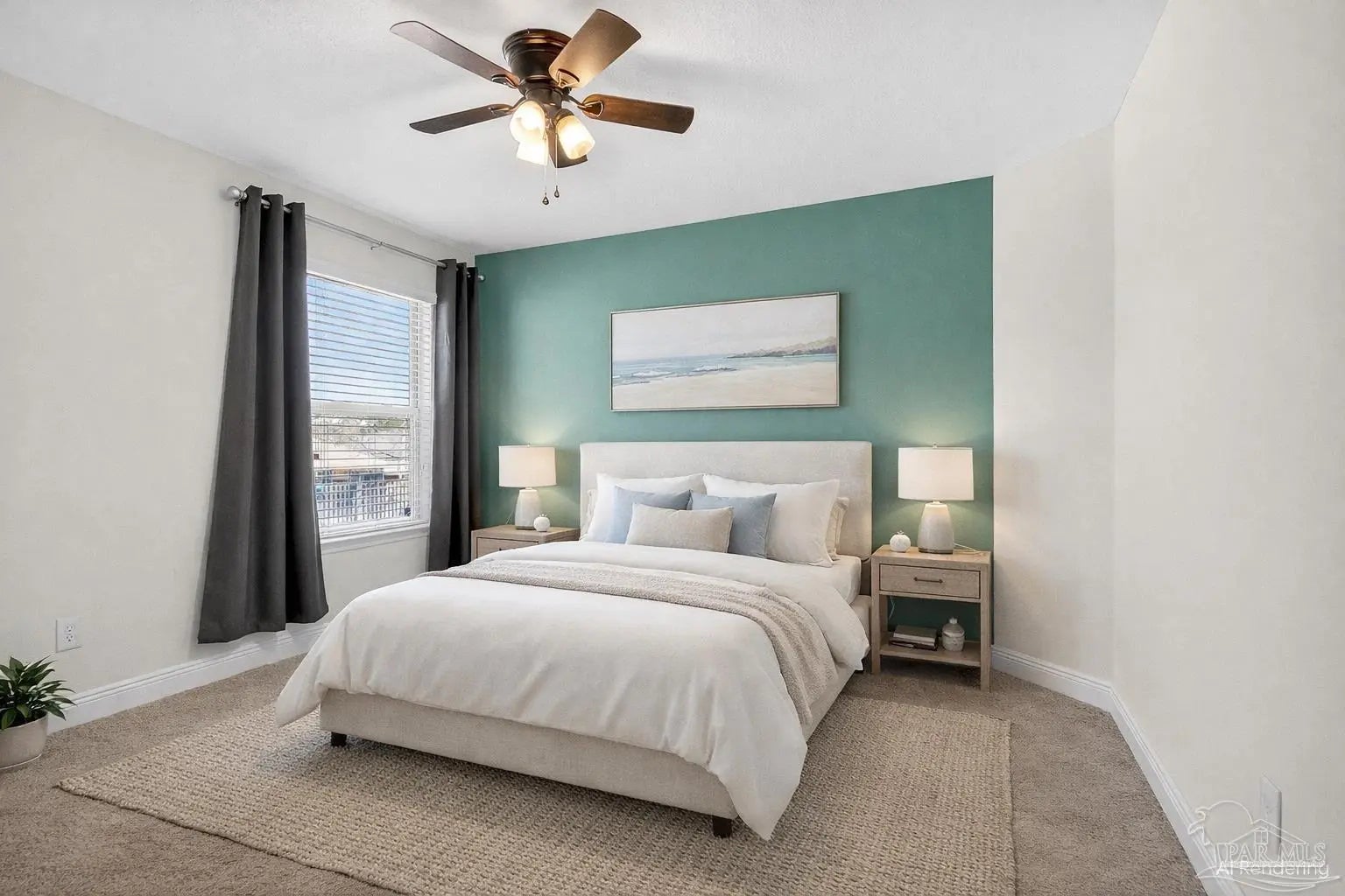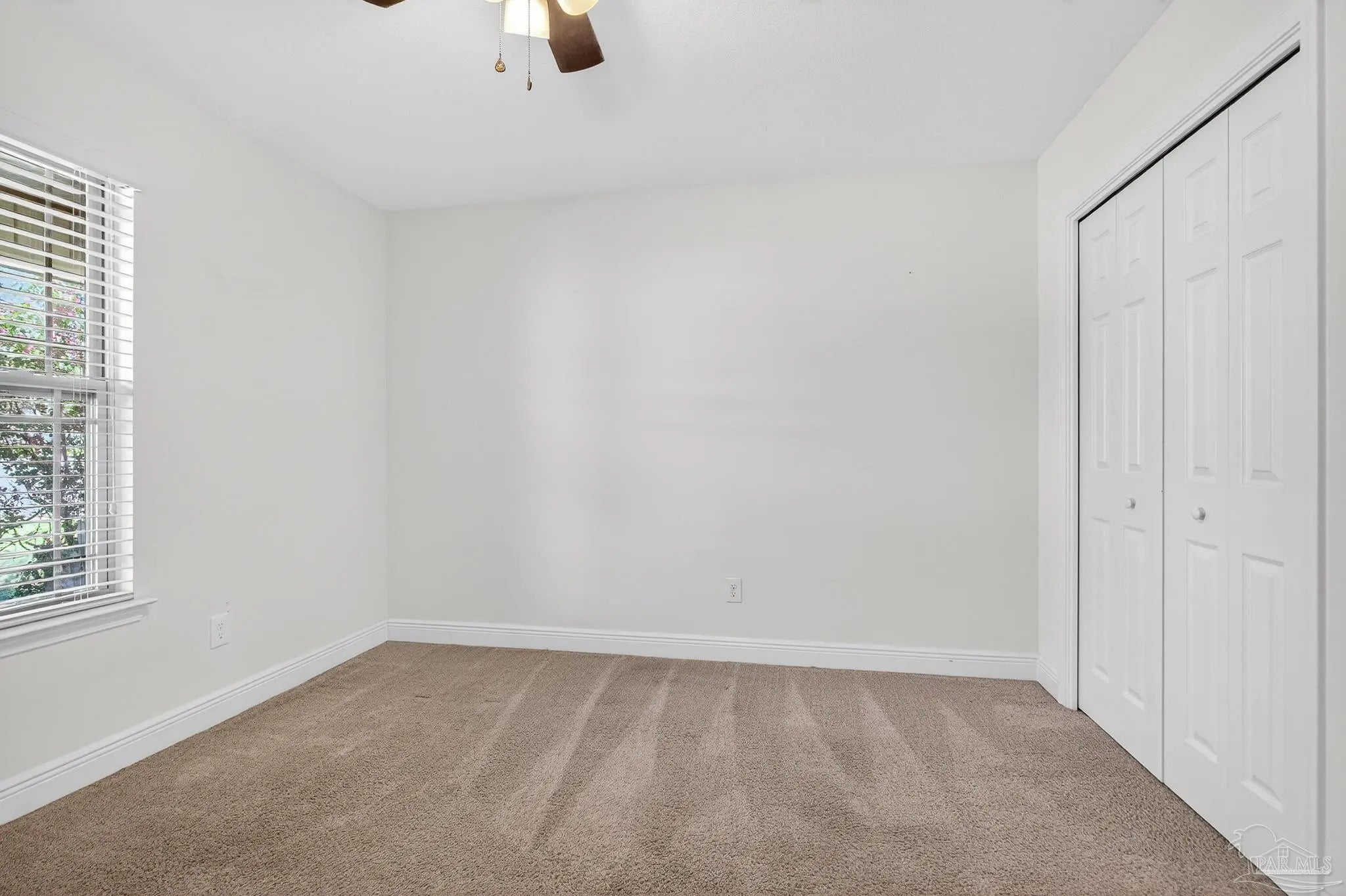 Located on a corner lot in Bon View, this all-brick home offers a comfortable layout, thoughtful details, and a convenient location just minutes from I-10 and about 30 minutes to Pensacola Beach. The heart of the home features an open living, dining, and kitchen space with vaulted ceilings that create an airy feel. A large island anchors the kitchen, complemented by crown-molded cabinetry and a pantry for extra storage. Tile flooring runs throughout the main living areas, laundry room, and bathrooms for durability and easy upkeep. The split bedroom design provides privacy, with two secondary bedrooms and a full bath positioned at the front of the home behind an arched entry. The primary suite is generously sized and includes a tray ceiling, a walk-in closet, and a spacious bath with double vanities, a garden tub, separate shower, and a private water closet. Outdoor spaces are just as inviting. The covered front porch offers shade throughout much of the day, while the fenced backyard features a patio area ideal for grilling or relaxing. Fruit-bearing olive, blueberry, and fig trees add a unique touch to the landscape. Additional highlights include a fully finished two-car attached garage with attic storage and a ¾-horsepower Craftsman opener. Residents of Bon View enjoy annual community gatherings, including Fourth of July celebrations and a neighborhood fall chili cook-off.