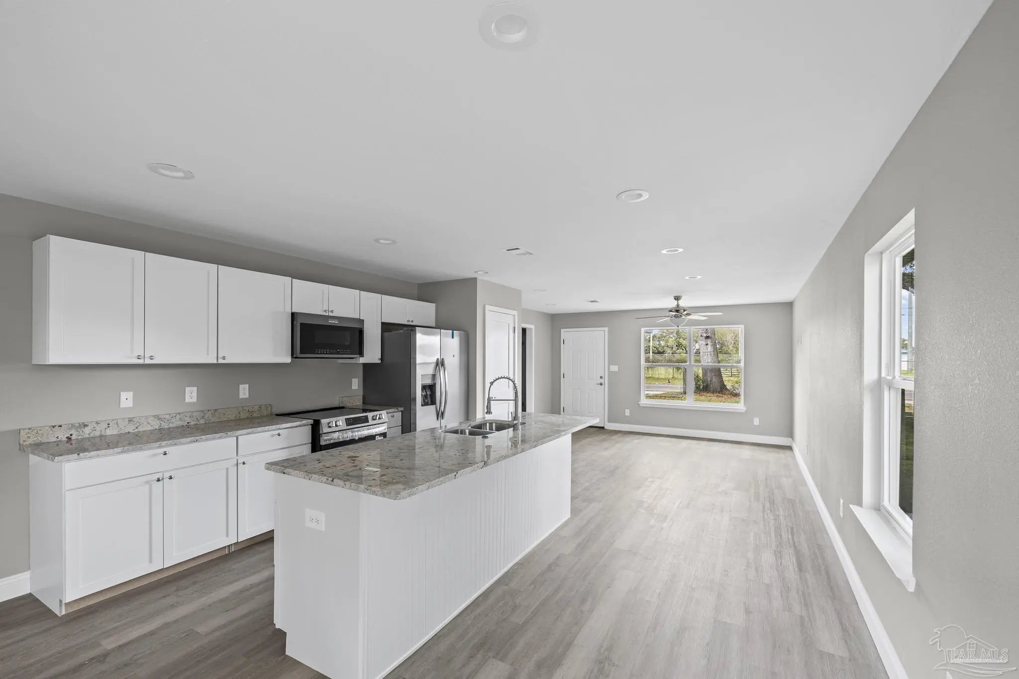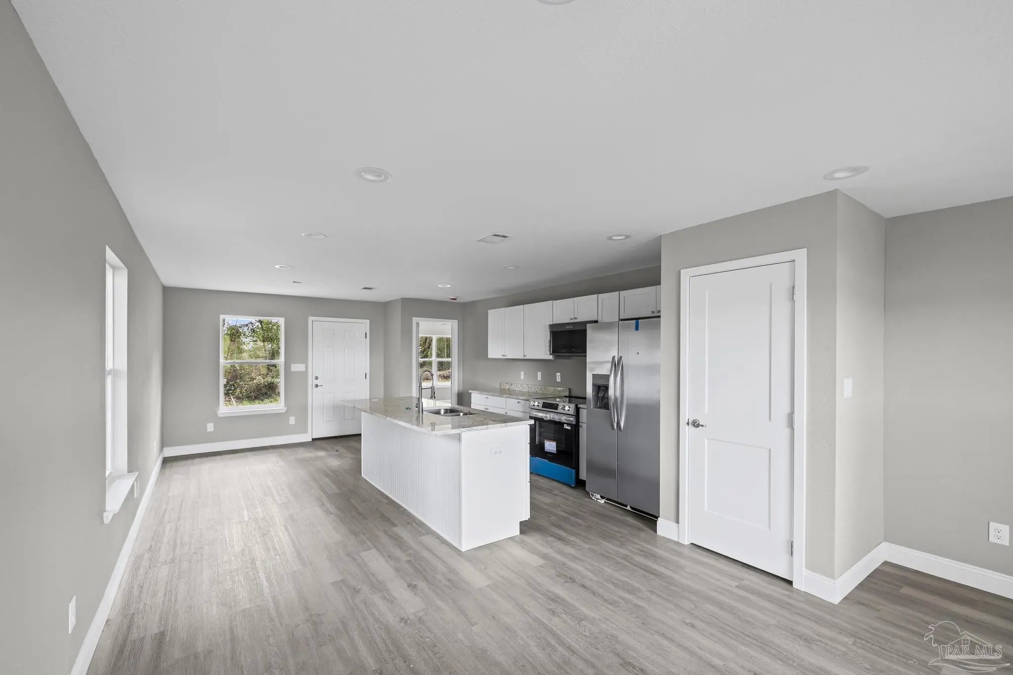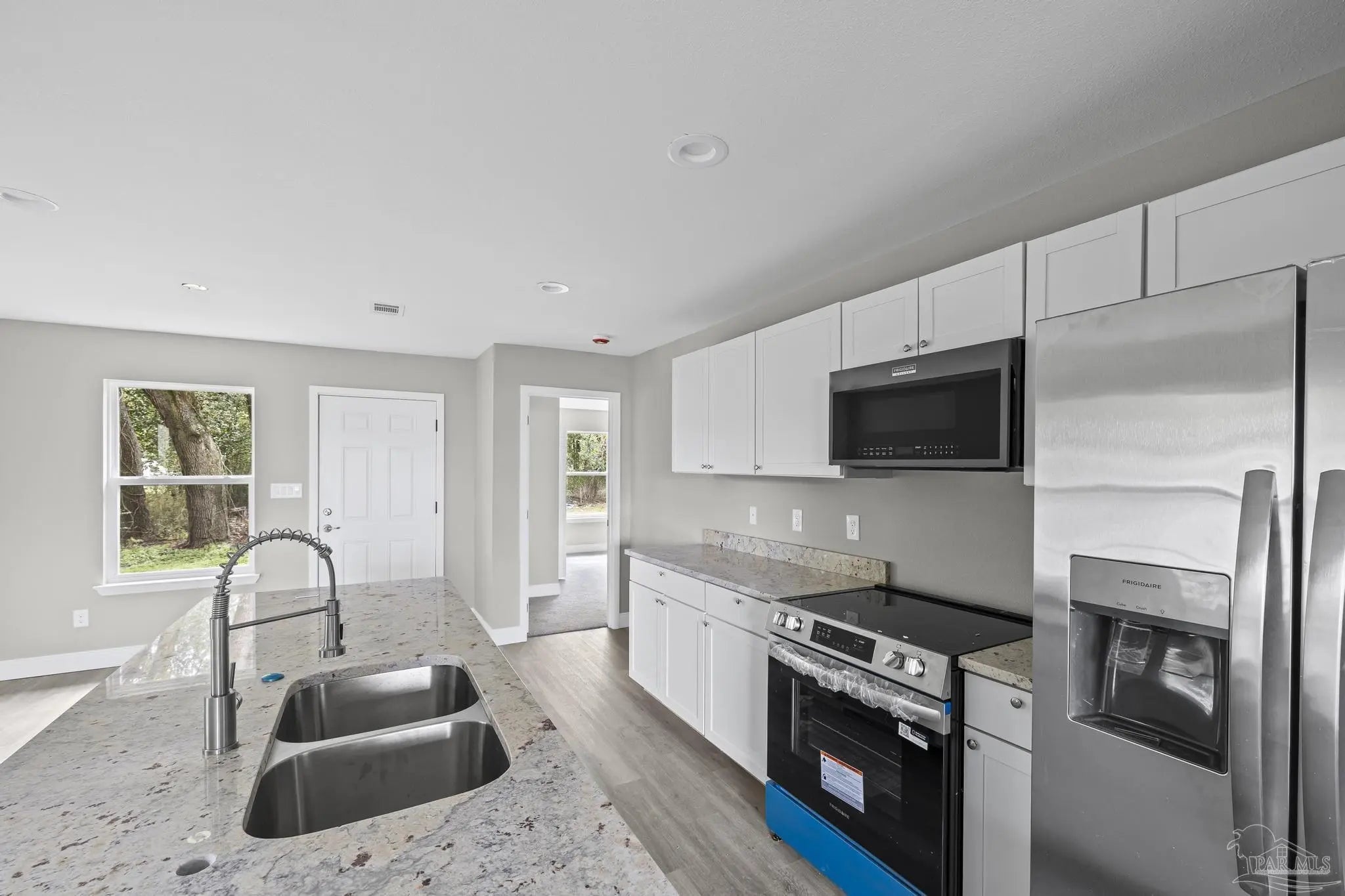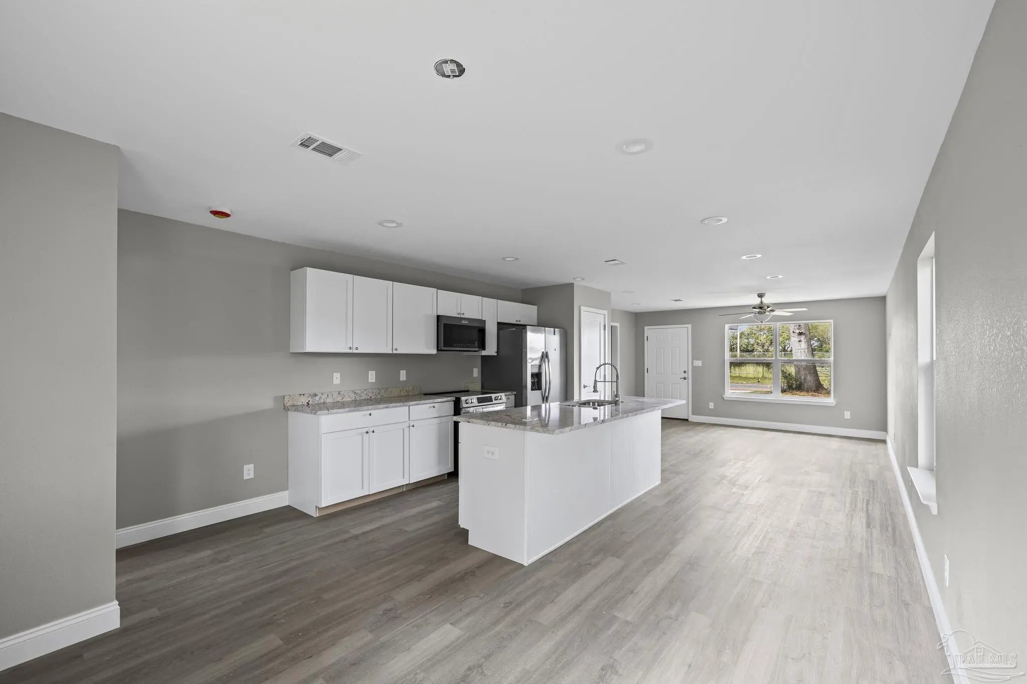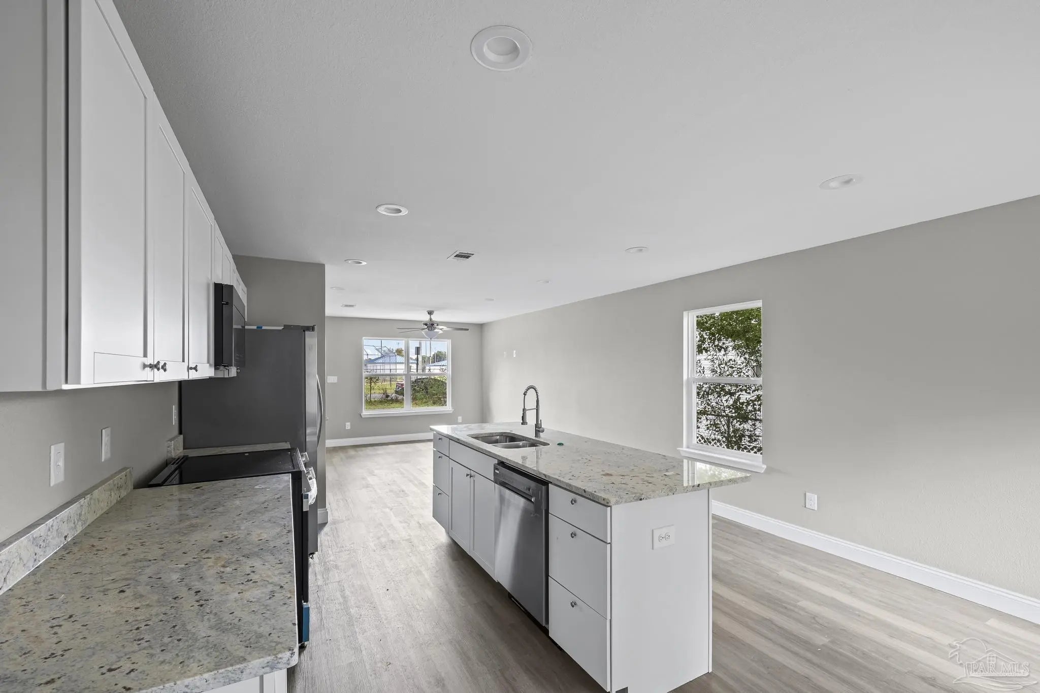 Completed in 2025, this brand-new construction home offers 3 bedrooms and 2 full bathrooms across 1,593 square feet of thoughtfully designed living space, situated on a .15-acre lot. Step inside to a bright, open-concept layout featuring light, modern tones throughout that create an airy and welcoming atmosphere. The kitchen, living, and dining areas flow seamlessly together, making the space perfect for everyday living, gathering with family, or entertaining guests. The kitchen serves as the centerpiece of the home, complete with a large island, crisp white cabinetry, and ample counter space, all overlooking the primary living and dining areas for effortless connection. The bedrooms and bathrooms are thoughtfully positioned to provide comfort and privacy, creating a functional layout that works well for families, guests, or a home office. With modern finishes, a spacious open floor plan, and the benefits of brand-new construction, this home offers a perfect blend of style, comfort, and convenience.
