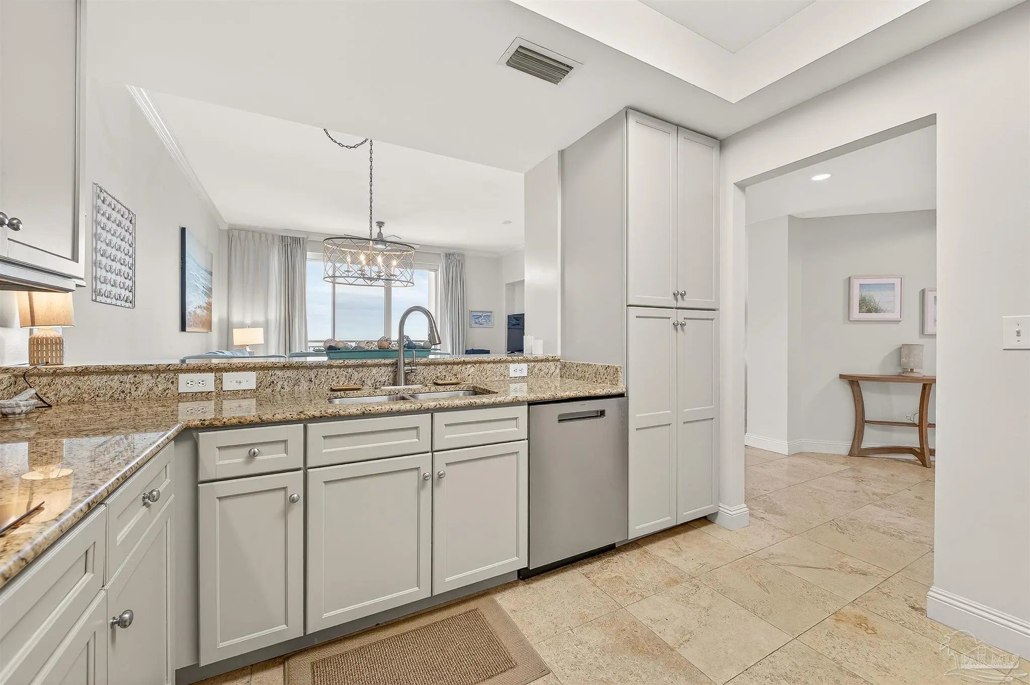 THIS 20TH STORY JUNIOR PENTHOUSE LEVEL 3/3 UNIT WITH HIGH CEILINGS, TRAVERTINE FLOORING, AND NEW LUXURY PLANK FLOORING IN ALL BEDROOMS. CONDO HAS A CUSTOM MINT DECOR INTERIOR DESIGN FURNITURE AND DECOR PACKAGE. UNIT PAINTED AND ALL WINDOW TREATMENTS REPLACED. NEW WATER HEATER, ALL NEW STAINLESS STEEL APPLIANCES IN KITCHEN, CABINETS RECENTLY PAINTED. ALL NEW GULF SLIDER WINDOWS REPLACED IN 2024. A MUST SEE, GREAT VIEWS FROM THE 20TH FLOOR WITH A PRIVATE BALCONY FOR MAXIMUM ENJOYMENT. AMENITIES INCLUDE COMMUNITY ROOM, MOVIE THEATRE,CLIMATE CONTROLLED STORAGE, ZERO ENTRY POOL, HOT TUB, GARAGE PARKING, ON SITE MGMT. NEW WATER HEATER AND REFRIGERATOR. NICELY FURNISHED AND RENT READY.