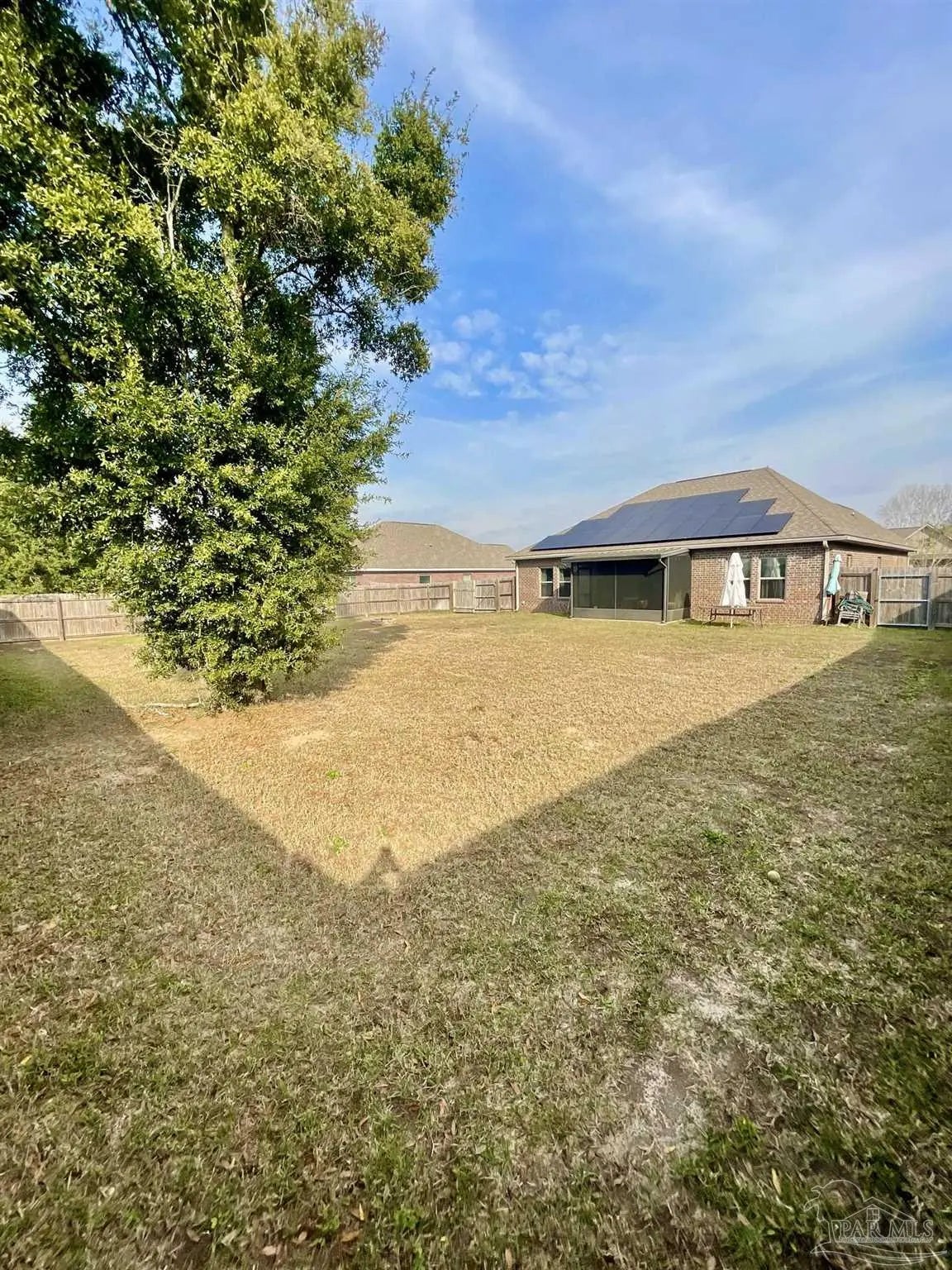 Beautiful home situated on 0.287 acres in the heart of Pace in the desirable Spencer’s Ridge community, featuring included solar panels for exceptional energy savings. Conveniently located between NAS Pensacola and Whiting Field, this home offers easy access to everything Pace has to offer, including the interstate, medical facilities, restaurants, shopping, a movie theater, and nearby colleges such as the University of West Florida and Pensacola State College. Located within an A-rated school district, this property is ideal for families and commuters alike. Inside, the home features a bright kitchen and dining combination with an open floor plan, creating a comfortable space for everyday living and entertaining. The split-bedroom layout provides added privacy, with the spacious primary suite separated from the two additional bedrooms. The primary suite includes a large walk-in closet, double vanity, and a relaxing garden tub with shower combo. Energy-efficient solar power keeps electric bills extremely low—approximately $35 per month—saving hundreds annually. Step outside to an amazing fully fenced backyard, perfect for gatherings, pets, and outdoor relaxation. A long driveway and two-car garage provide plenty of parking and convenience. Washer and dryer are not included. This is the home you’ve been looking for—schedule your showing today!