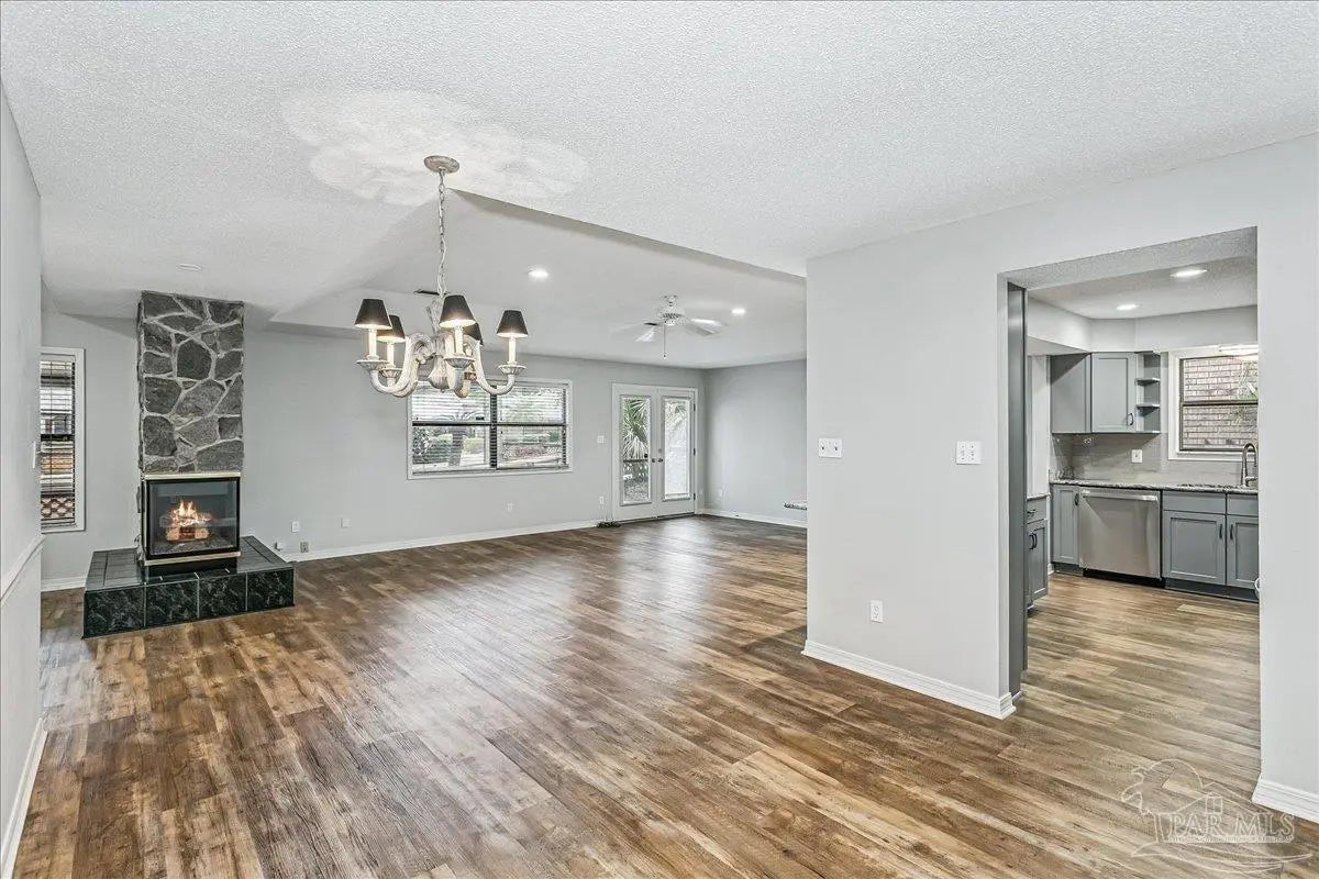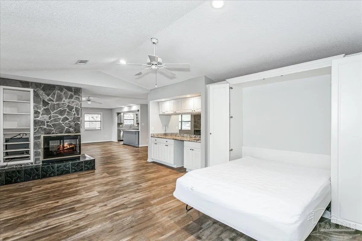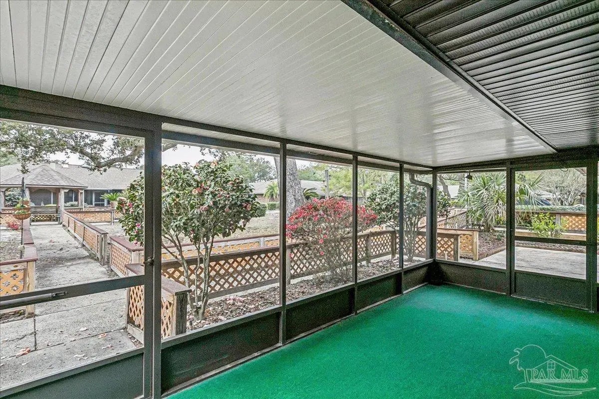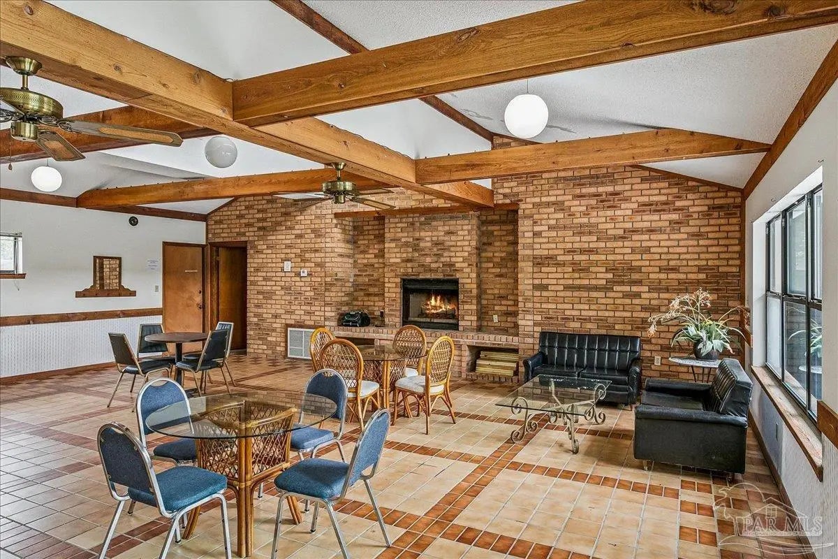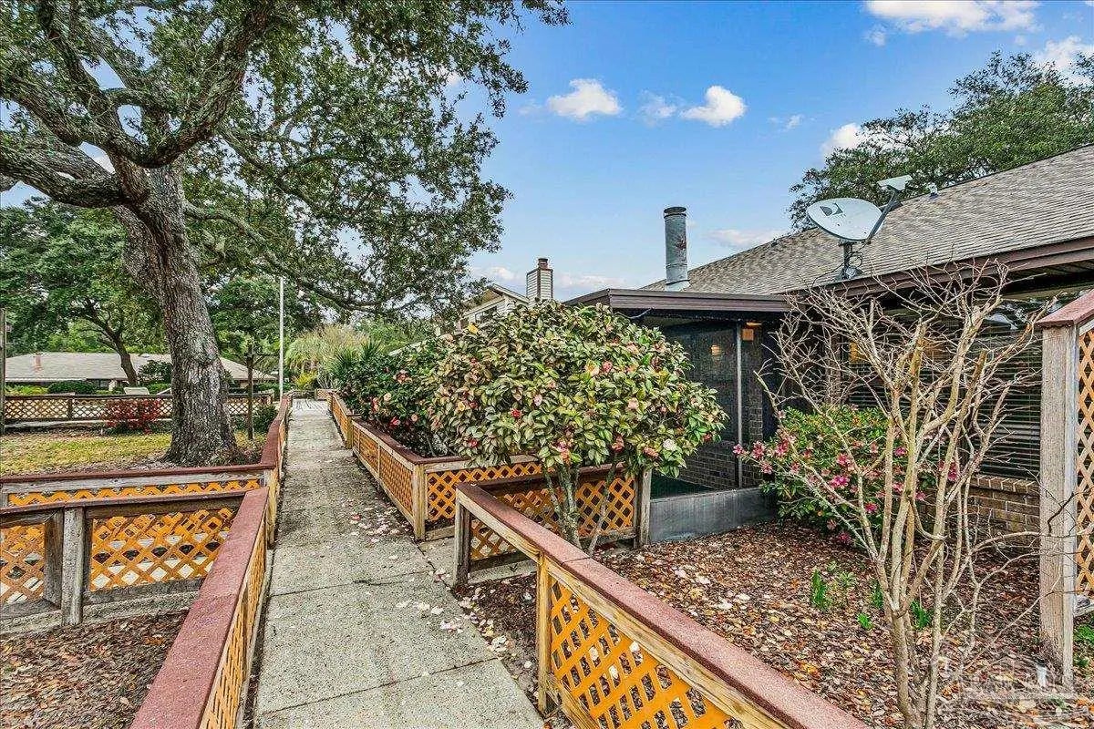 Built in 1995, this spacious 2-bedroom, 2-bath townhouse offers 1,794 square feet of comfortable living space and a desirable 1-car garage. Nestled beneath stunning Live Oak trees and swaying palms, the setting is serene and filled with natural beauty - you’ll often spot local wildlife adding to the charm. Inside, you’ll find a recently renovated kitchen, updated flooring, and kitchen countertops, creating a fresh and inviting space for cooking and gathering. These updates were completed in 2022. The living area features a cozy double-sided gas fireplace and a convenient wet bar, perfect for entertaining or relaxing evenings at home. The large, enclosed lanai provides additional living space to enjoy year-round, whether you’re sipping morning coffee or unwinding at the end of the day. A new roof was installed in 2020 for added peace of mind. Sandspur Townhomes is a 55+ community with no short-term rentals or pets permitted (Service animals only), fostering a quiet and stable environment. Residents enjoy access to a community pool, gazebo, and a welcoming gathering room with a fireplace — ideal for social events and neighborly connection. Low HOA dues of just $400 per month include groundskeeping, water, and garbage collection, making for easy, low-maintenance living. Conveniently located near NAS Pensacola, shopping, dining, and the beautiful beaches of Perdido Key, this is a wonderful opportunity to enjoy relaxed coastal living in a charming, established community. Don’t miss your chance to own in this rarely available development!