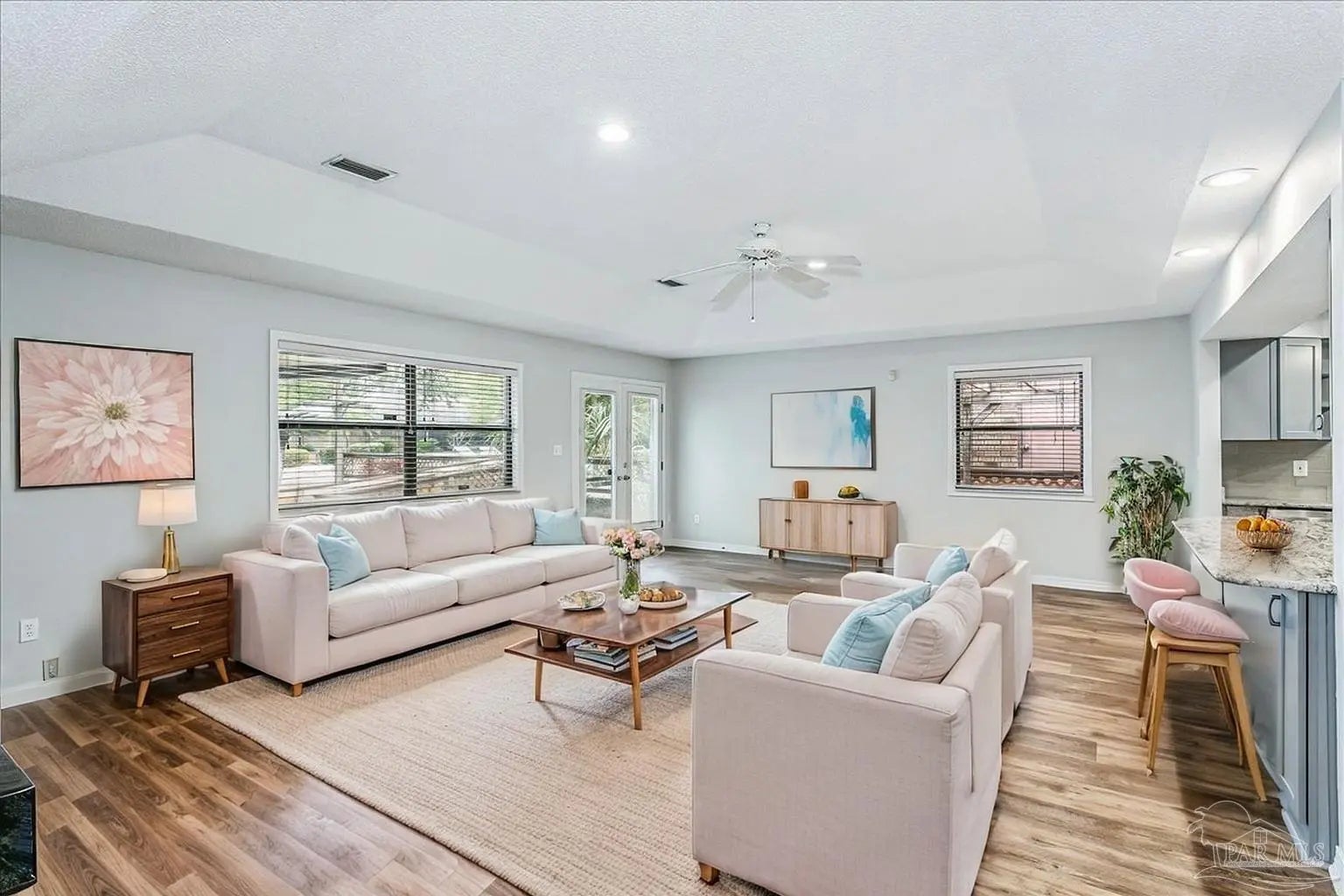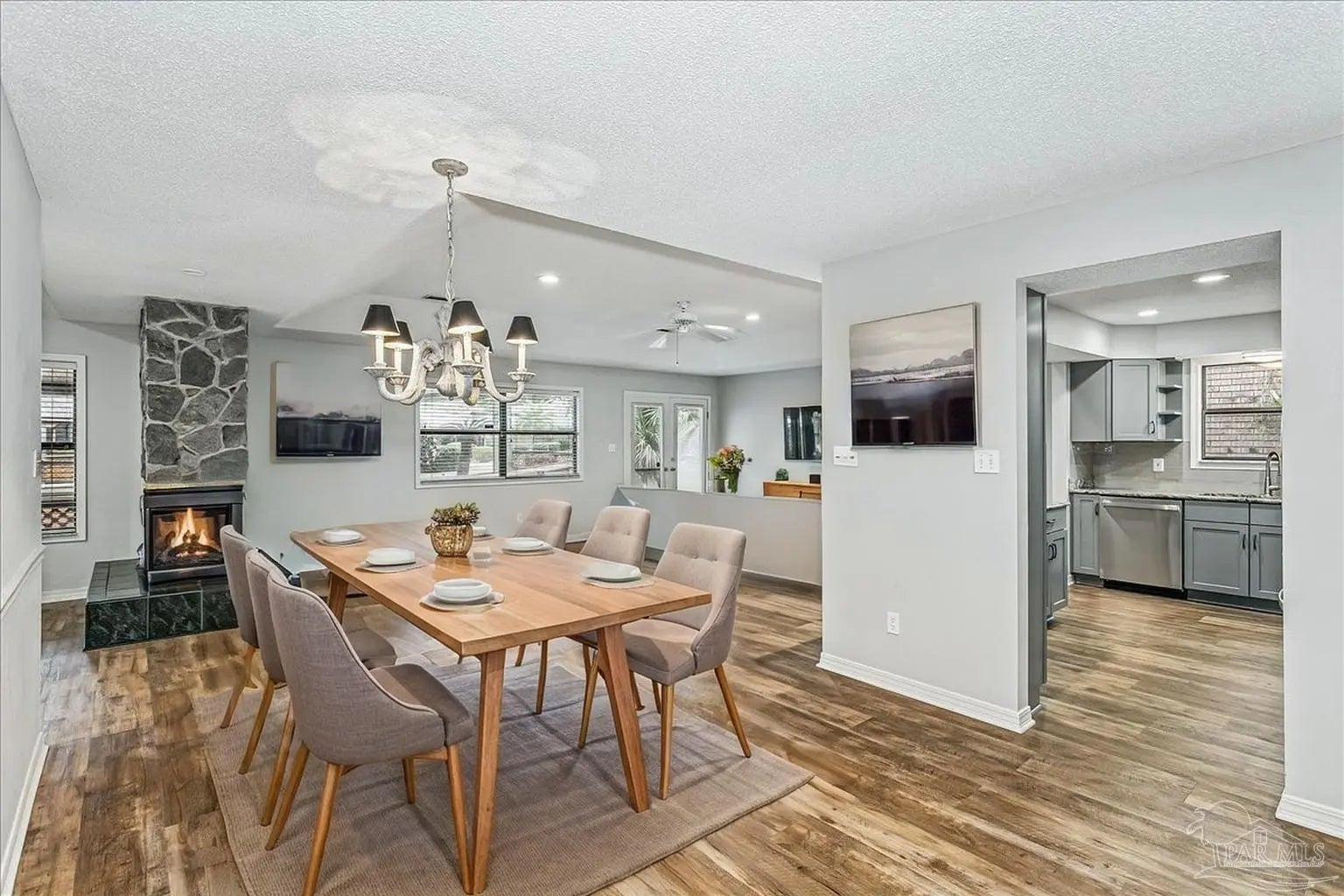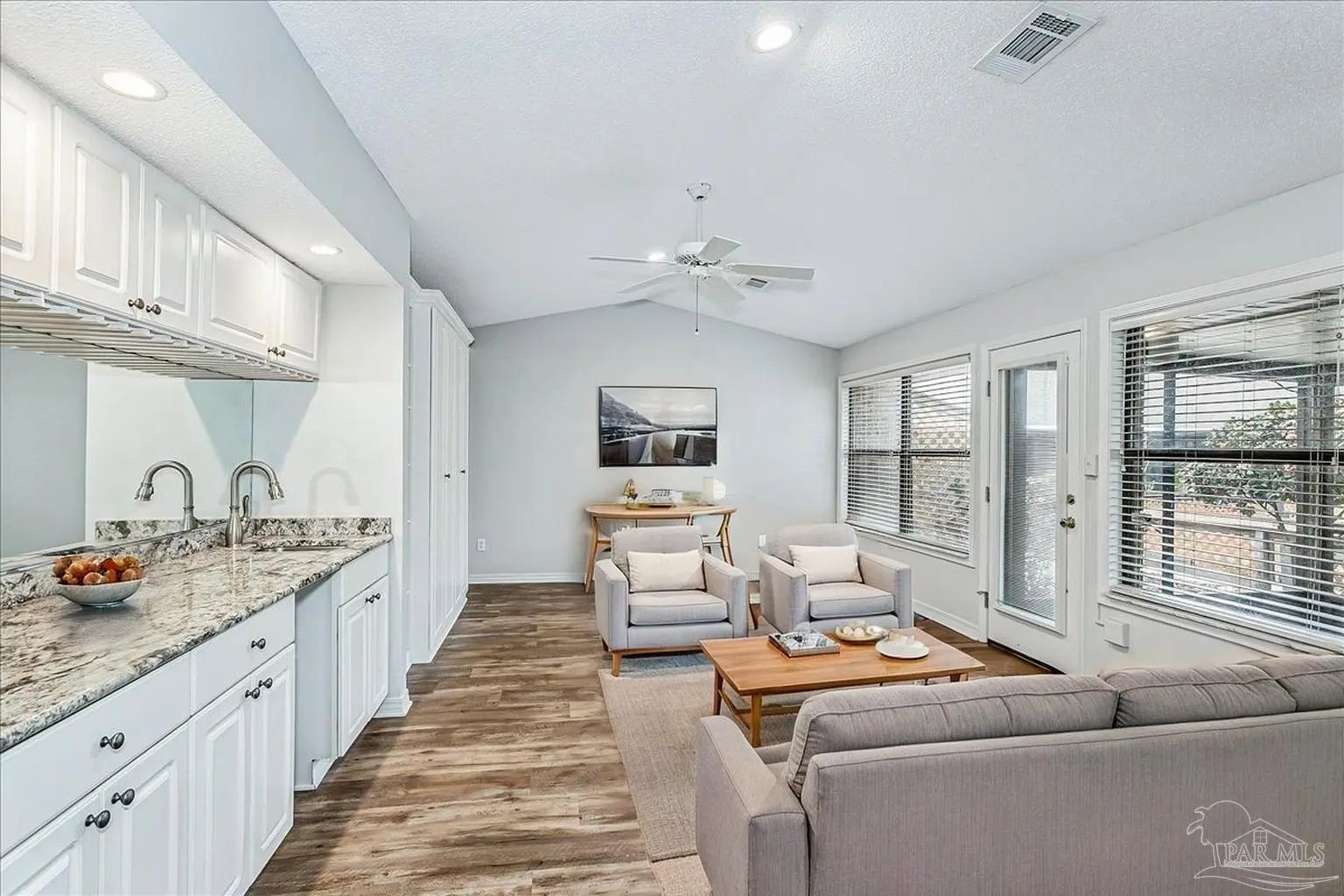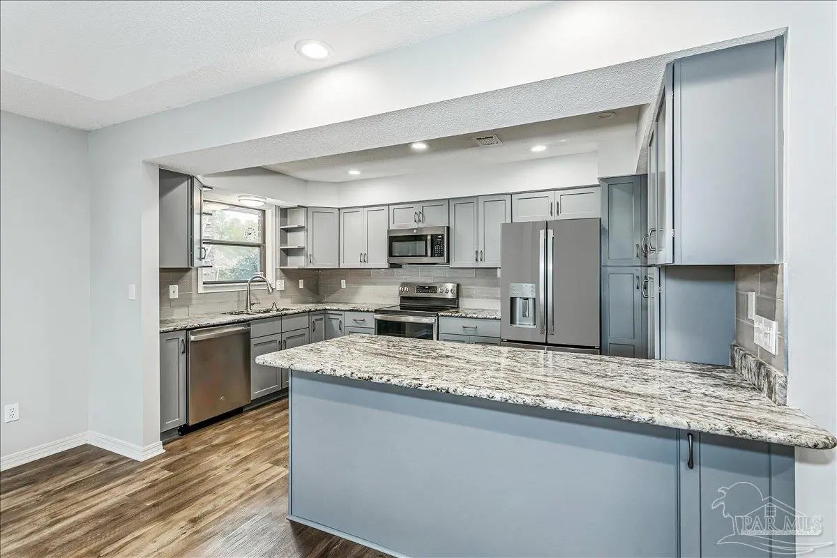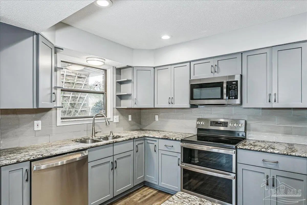 Built in 1995, this spacious 2-bedroom, 2-bath townhouse offers 1,794 square feet of comfortable living space and a desirable 1-car garage. Nestled beneath stunning Live Oak trees and swaying palms, the setting is serene and filled with natural beauty - you’ll often spot local wildlife adding to the charm. Inside, you’ll find a recently renovated kitchen, updated flooring, and kitchen countertops, creating a fresh and inviting space for cooking and gathering. These updates were completed in 2022. The living area features a cozy double-sided gas fireplace and a convenient wet bar, perfect for entertaining or relaxing evenings at home. The large, enclosed lanai provides additional living space to enjoy year-round, whether you’re sipping morning coffee or unwinding at the end of the day. A new roof was installed in 2020 for added peace of mind. Sandspur Townhomes is a 55+ community with no short-term rentals or pets permitted (Service animals only), fostering a quiet and stable environment. Residents enjoy access to a community pool, gazebo, and a welcoming gathering room with a fireplace — ideal for social events and neighborly connection. Low HOA dues of just $400 per month include groundskeeping, water, and garbage collection, making for easy, low-maintenance living. Conveniently located near NAS Pensacola, shopping, dining, and the beautiful beaches of Perdido Key, this is a wonderful opportunity to enjoy relaxed coastal living in a charming, established community. Don’t miss your chance to own in this rarely available development!