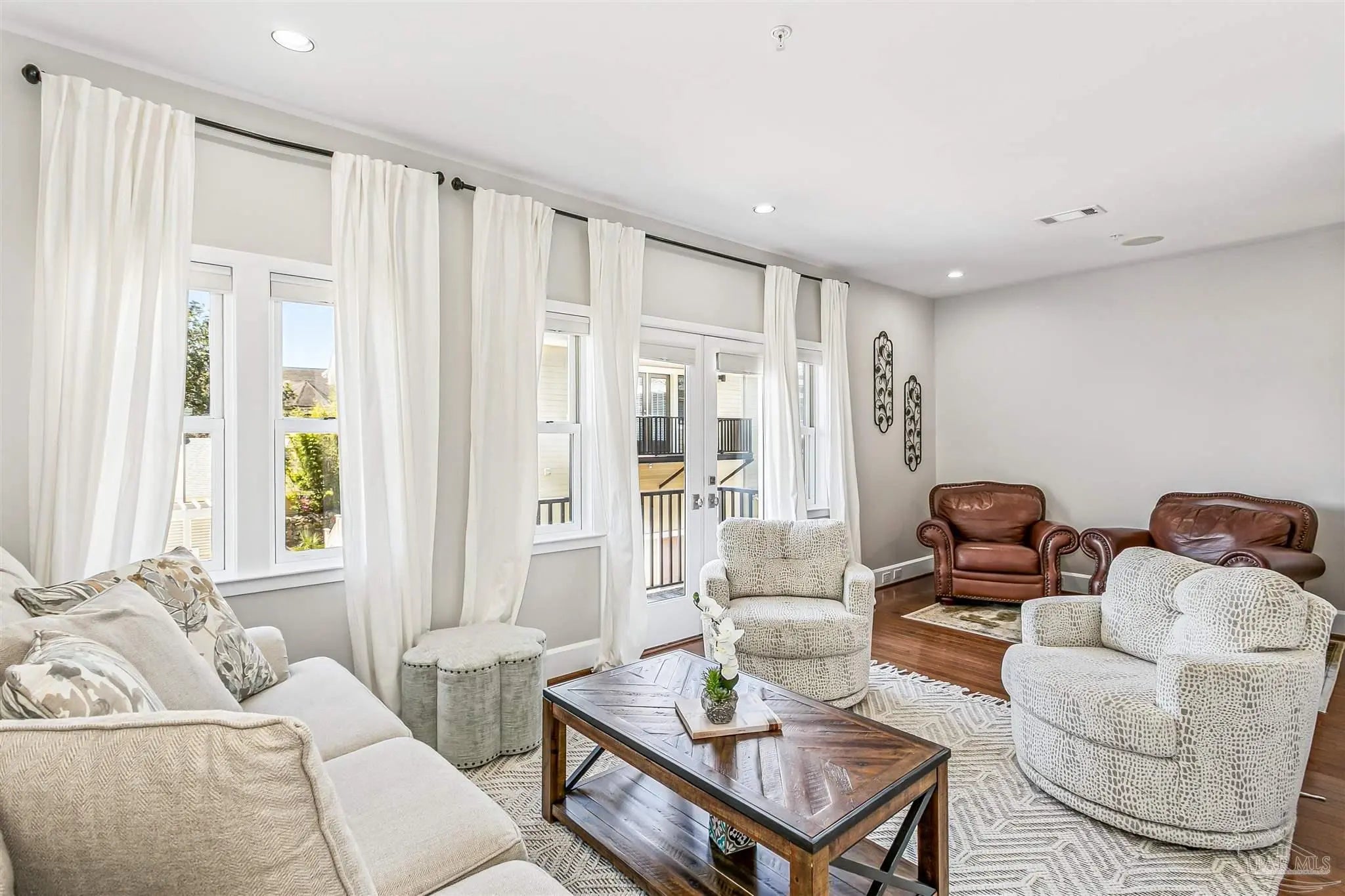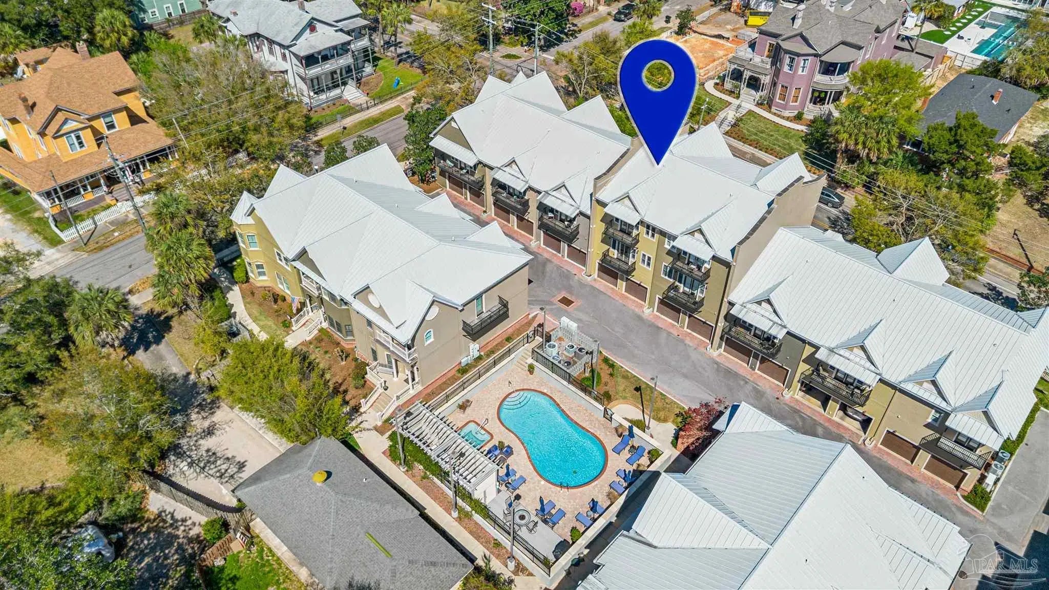 This highly desirable luxuriously appointed condominium situated within a gated community featuring a full 2 car garage, private elevator and it is offered exquisitely furnished ensuring a seamless transition for its' next owner. This property features three spacious ensuite bedrooms, three private balconies, 2 offering unobstructed views of the pool, high ceilings, and expansive closets, providing ample room and comfort. Built with solid, hurricane-rated construction, this residence is designed for both safety and durability. It offers a perfect blend of modern amenities and elegant design, ensuring a private and effortless living experience for owners and their guests alike. Situated in the heart of our award-winning highly sought-after historic downtown district, this condo presents a unique blend of private, upscale living with convenient access to urban amenities, festivals, restaurants, bars and shops. Enjoy close proximity to the revitalized Palafox Street, the Blue Wahoos Stadium, Pensacola Bay (where the American Magic sailing team trains), the new Reverb/Hard Rock Hotel, the Maritime Community Park and 20 minutes to beautiful sandy white beaches. This condo is an unbelievable opportunity to live in vibrant downtown Pensacola. Don't miss out. Tour this property today.