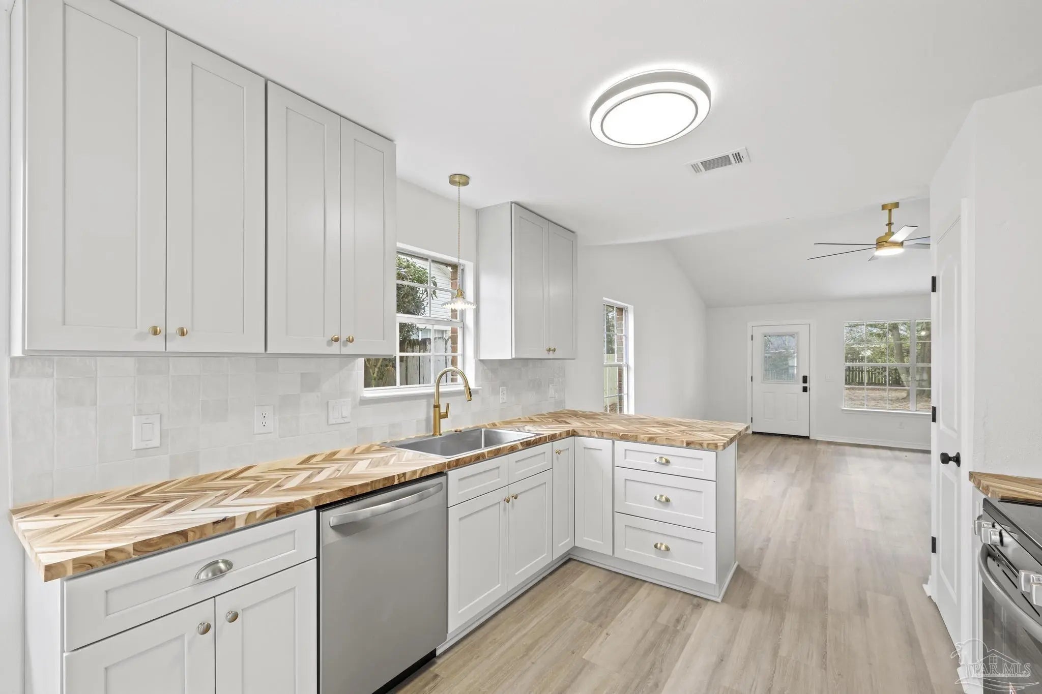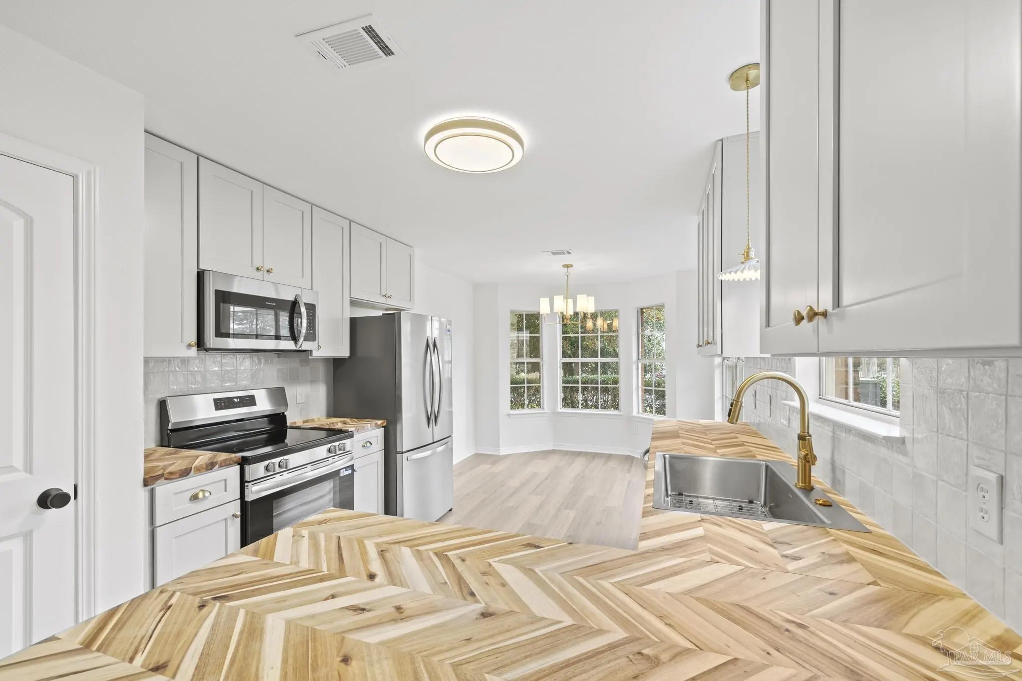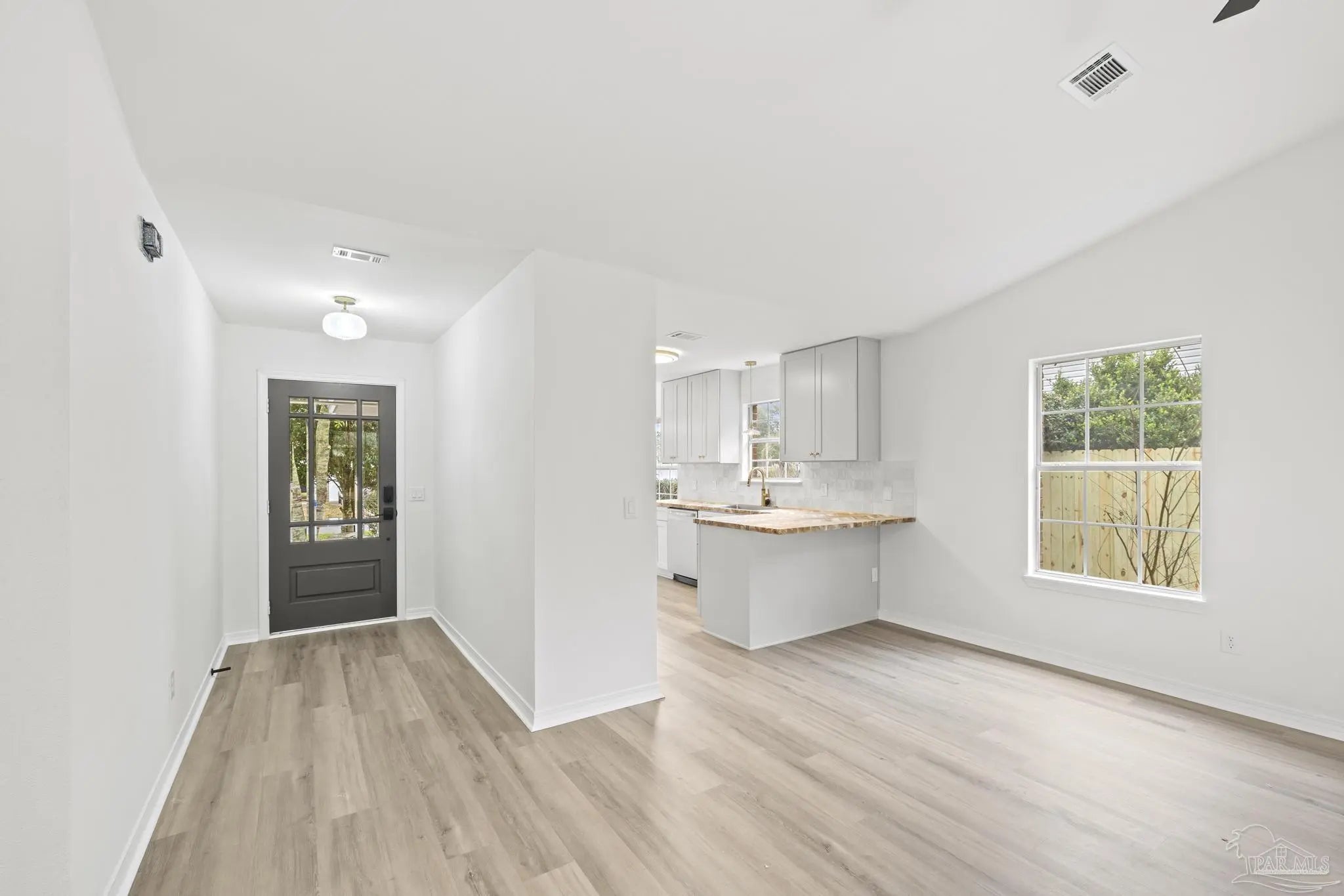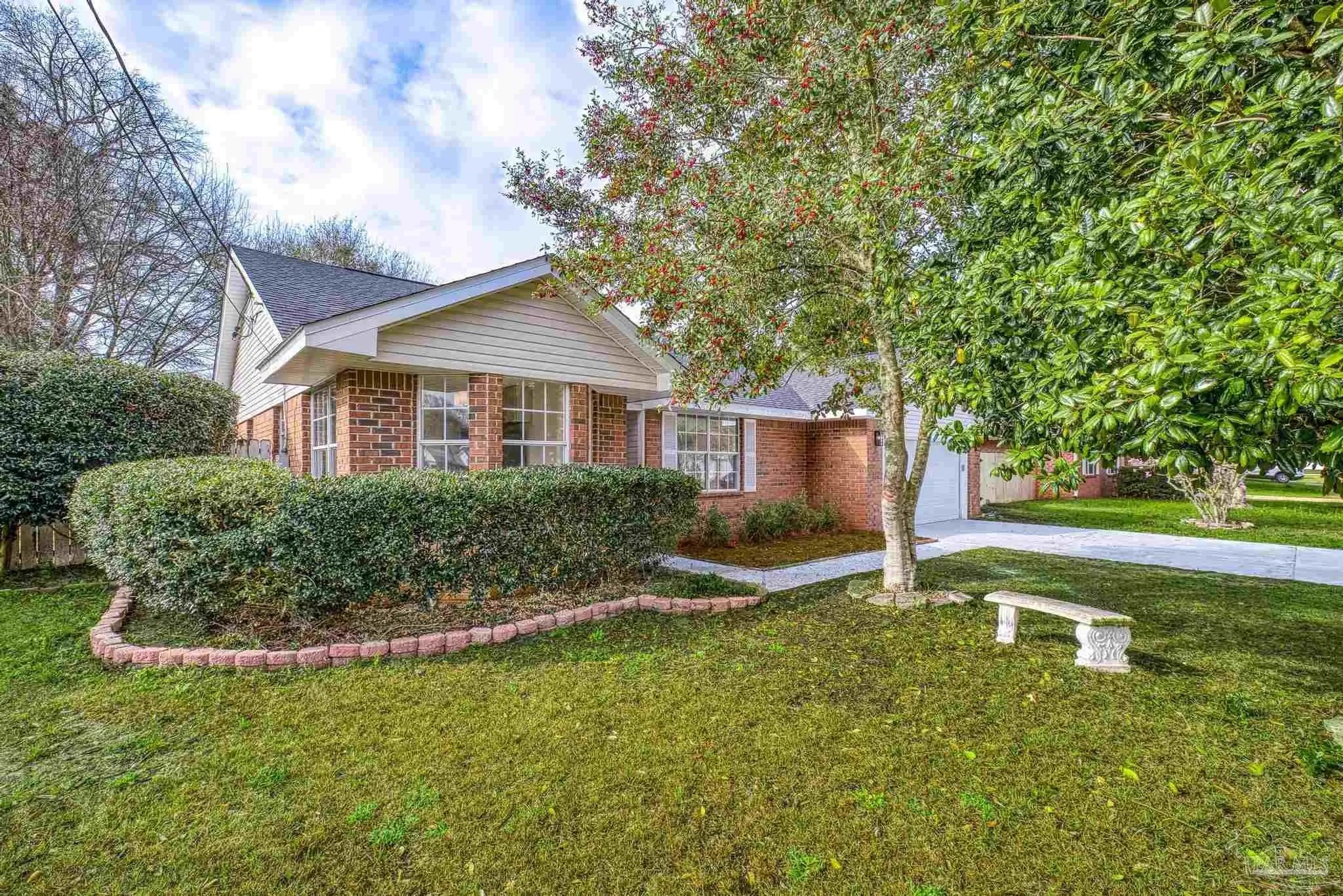 BUYER CONCESSIONS AVAILABLE ~ TOTALLY UPDATED ~ NO CARPET ~ NEW KITCHEN ~ NEW BATHS ~ FENCED YARD ~ Don't miss this UPDATED and MOVE IN READY home near NAS Whiting Field. Cute curb appeal leads to entry with LVP throughout. GREAT ROOM has vaulted ceiling leads to KITCHEN with new cabinets, butcher block countertops, new appliances, plus bay window for eat in area. PRIMARY BEDROOM is spacious with ensuite bath - tiled shower, double vanities with butcher block countertop and vessel sinks, and large walk in closet. Two additional bedrooms (with large closets) share a hall bathroom that has a single vanity and tub/shower combo with beautiful tile surround. Other amenities include: LAUNDRY ROOM (updated lighting); 2 car garage w/ pull down stairs; ROOF 2020; HVAC 2025; epoxied garage floor; Water Heater 2018. Hurry to see this one and get your offer in!