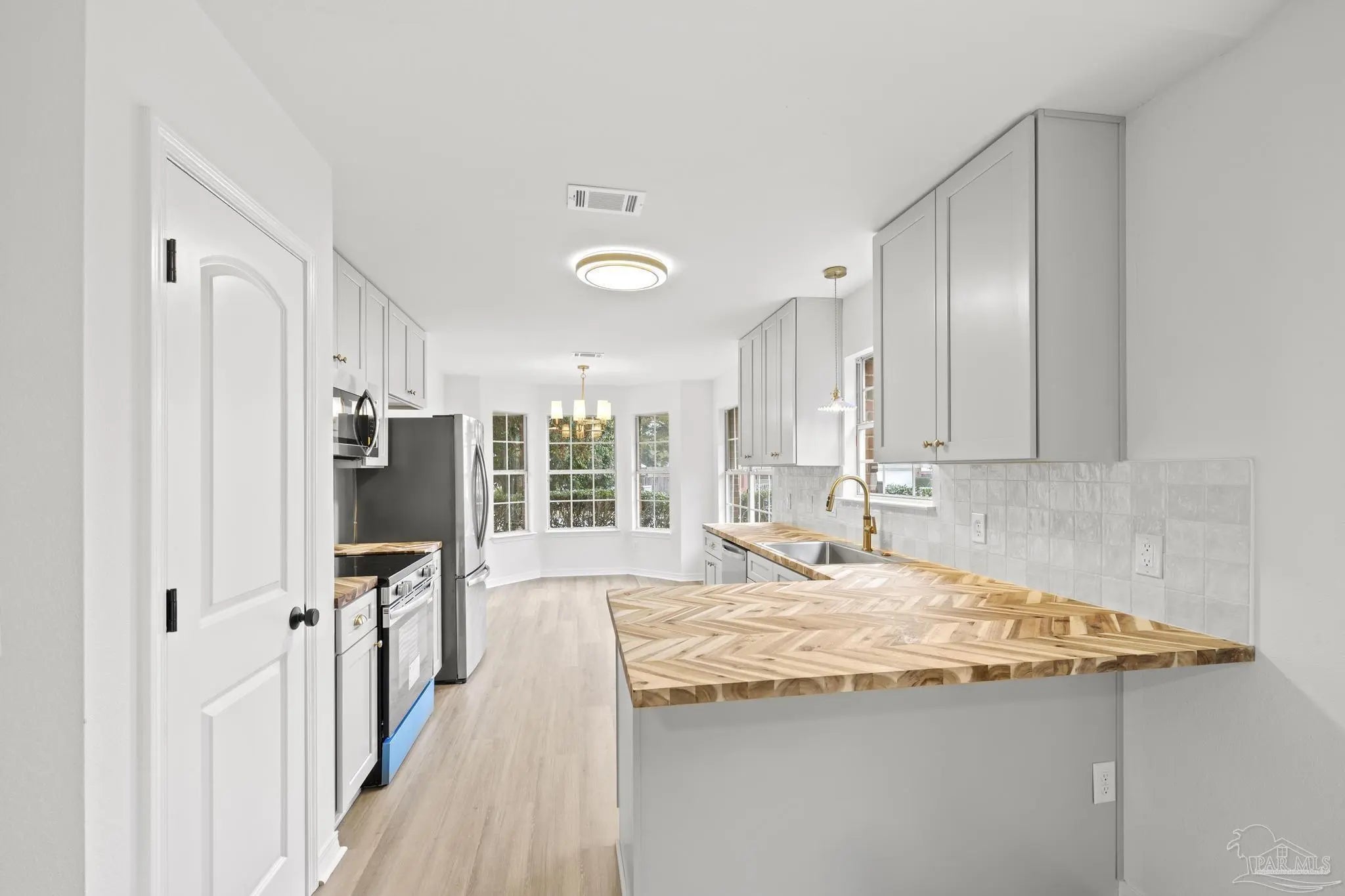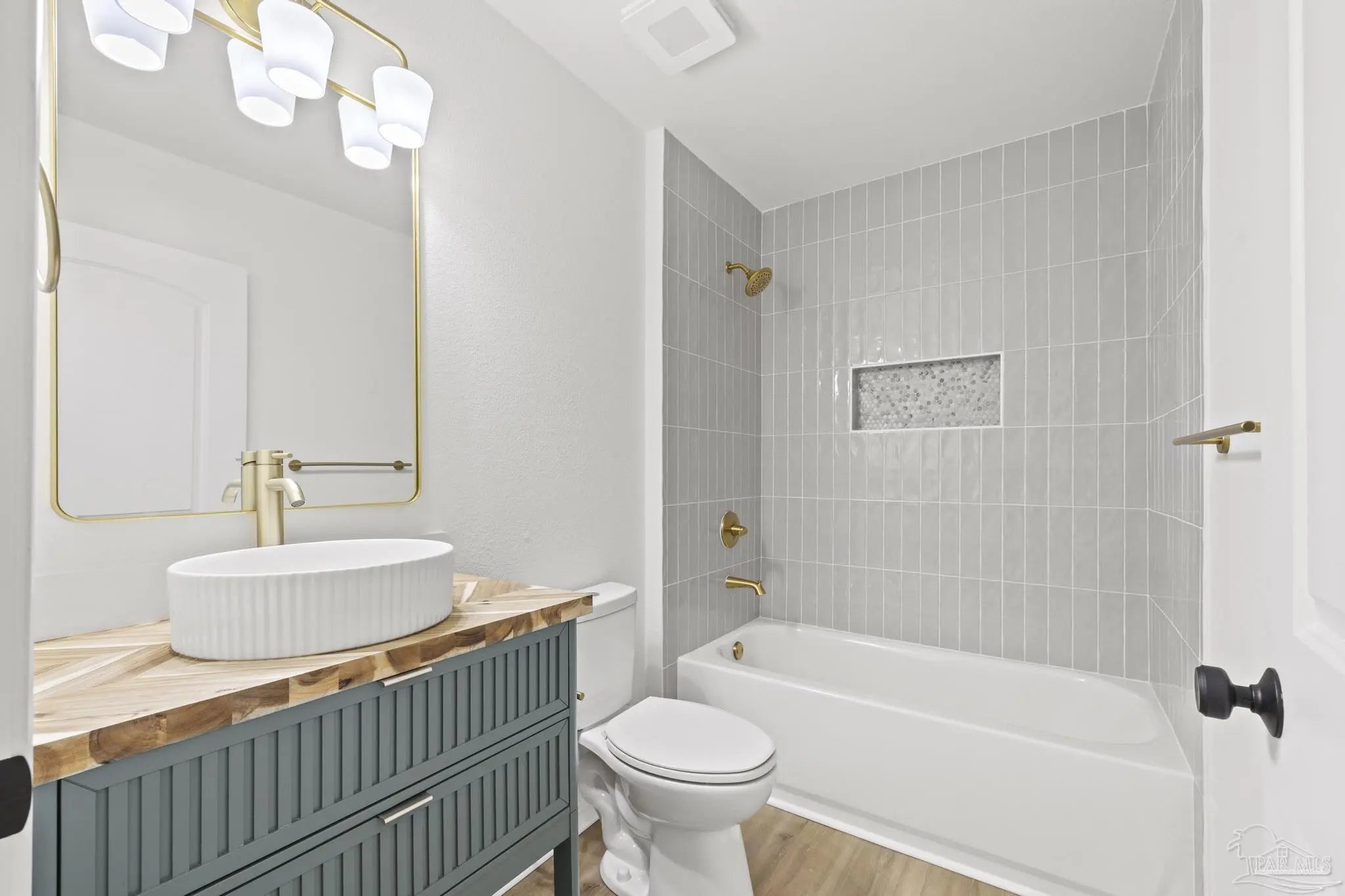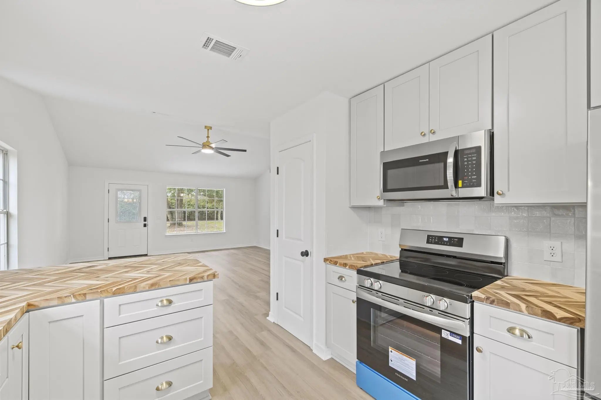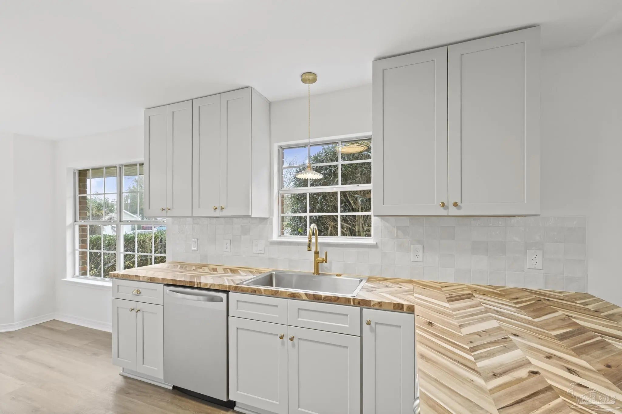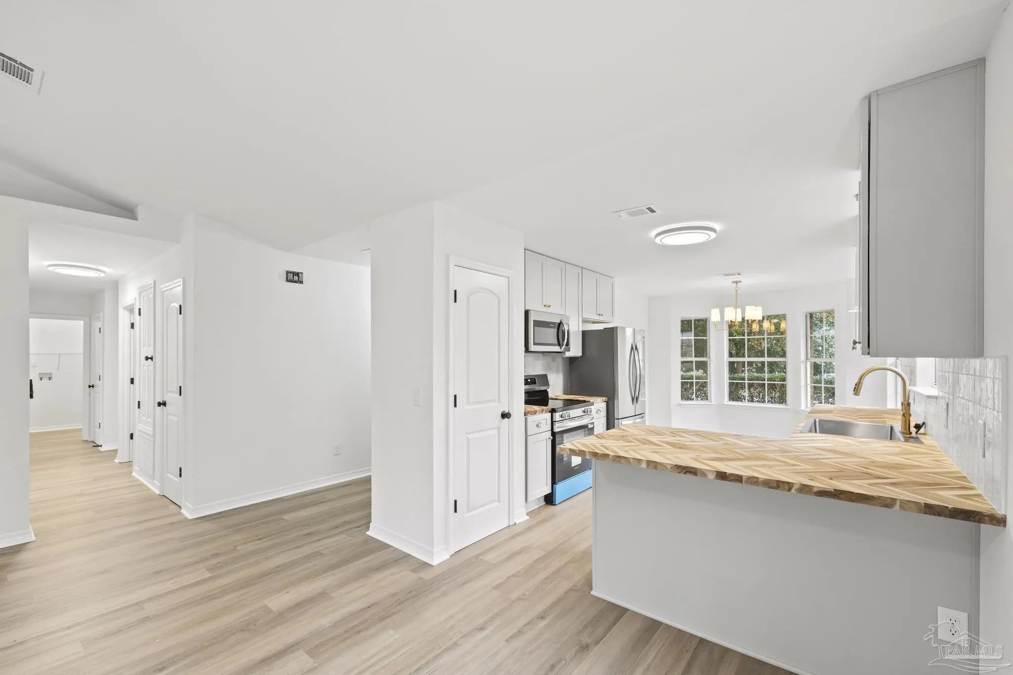 BUYER CONCESSIONS AVAILABLE ~ TOTALLY UPDATED ~ NO CARPET ~ NEW KITCHEN ~ NEW BATHS ~ FENCED YARD ~ Don't miss this UPDATED and MOVE IN READY home near NAS Whiting Field. Cute curb appeal leads to entry with LVP throughout. GREAT ROOM has vaulted ceiling leads to KITCHEN with new cabinets, butcher block countertops, new appliances, plus bay window for eat in area. PRIMARY BEDROOM is spacious with ensuite bath - tiled shower, double vanities with butcher block countertop and vessel sinks, and large walk in closet. Two additional bedrooms (with large closets) share a hall bathroom that has a single vanity and tub/shower combo with beautiful tile surround. Other amenities include: LAUNDRY ROOM (updated lighting); 2 car garage w/ pull down stairs; ROOF 2020; HVAC 2025; epoxied garage floor; Water Heater 2018. Hurry to see this one and get your offer in!