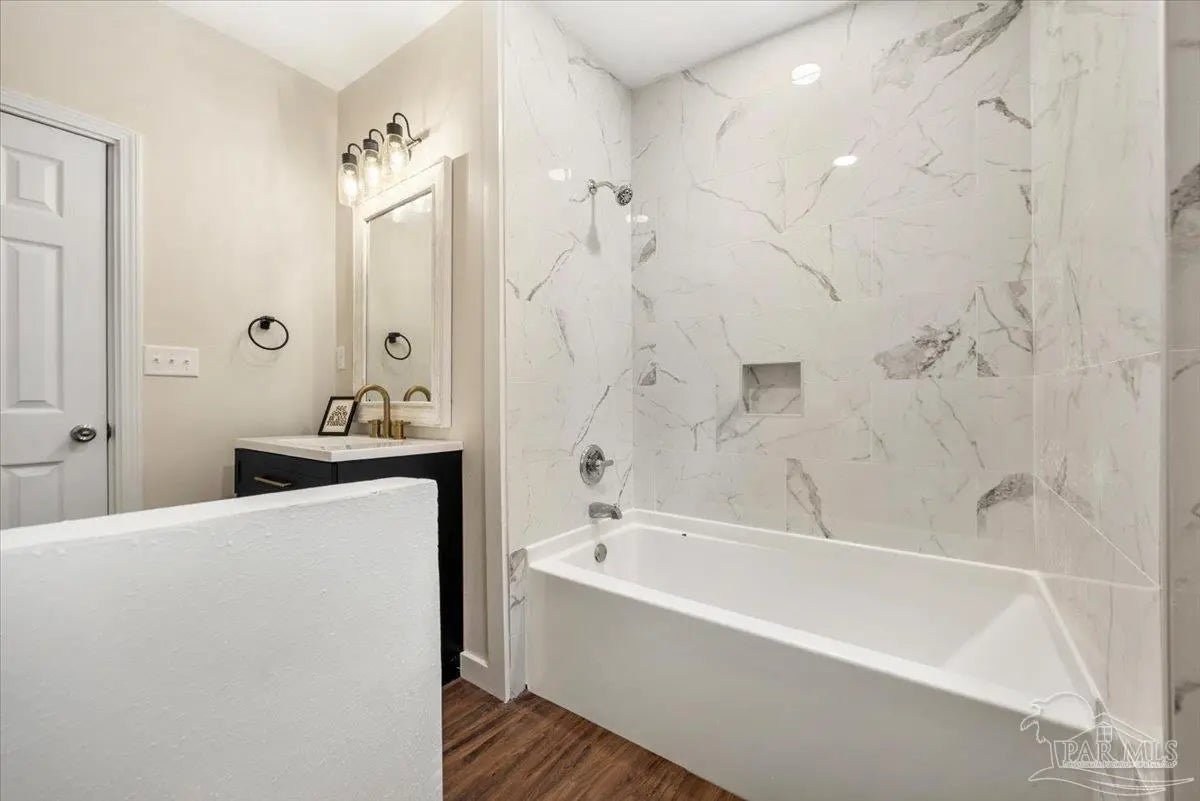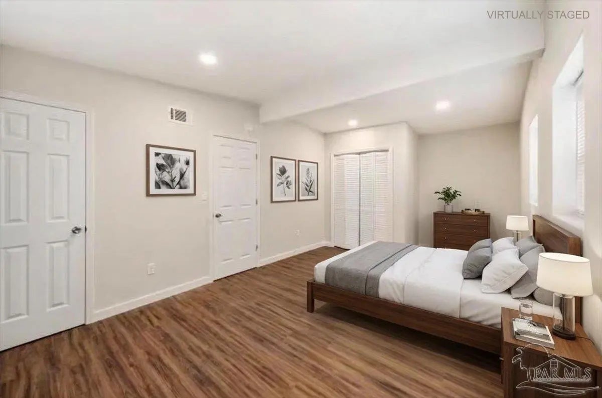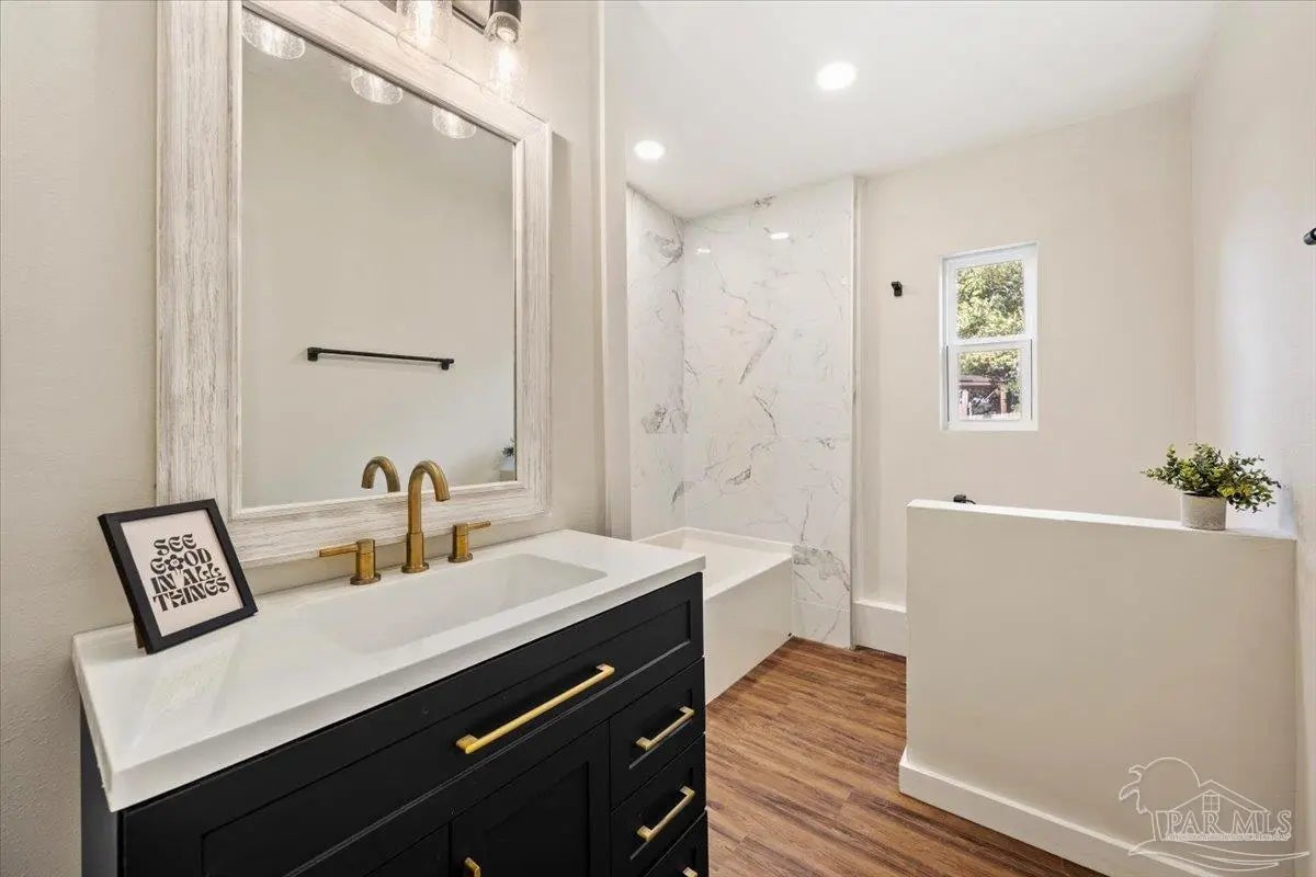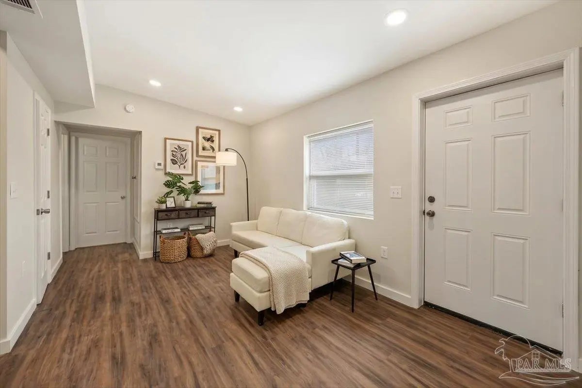 Fully remodeled 3 bedroom 1 bath home on a large lot with major updates already completed. This home offers affordable ownership without the typical repair costs. The big ticket items are already done. Brand new HVAC. Brand new hot water heater. New electrical. New plumbing. New windows and doors with hurricane protection that can help lower insurance costs. Durable metal roof for long term peace of mind. Inside you will find modern finishes including butcher block counters and a tile shower. The home feels clean, updated, and move in ready. Large lot with privacy in the front and back yard. A park across the street and easy access to I-10 for those who need to commute to downtown or even Mobile. This home is perfect for your family! With no expenses spared, this is an easy decision--move in by the end of the month!