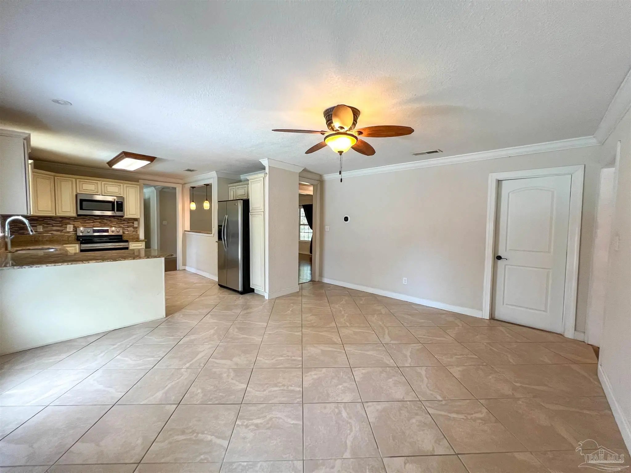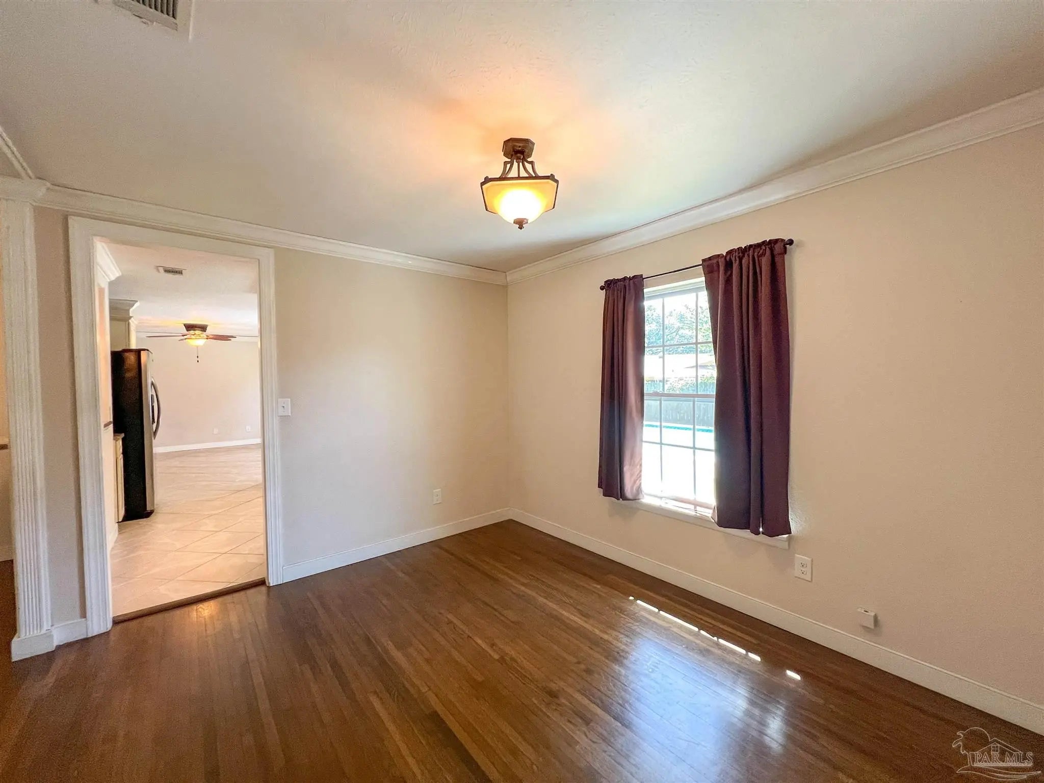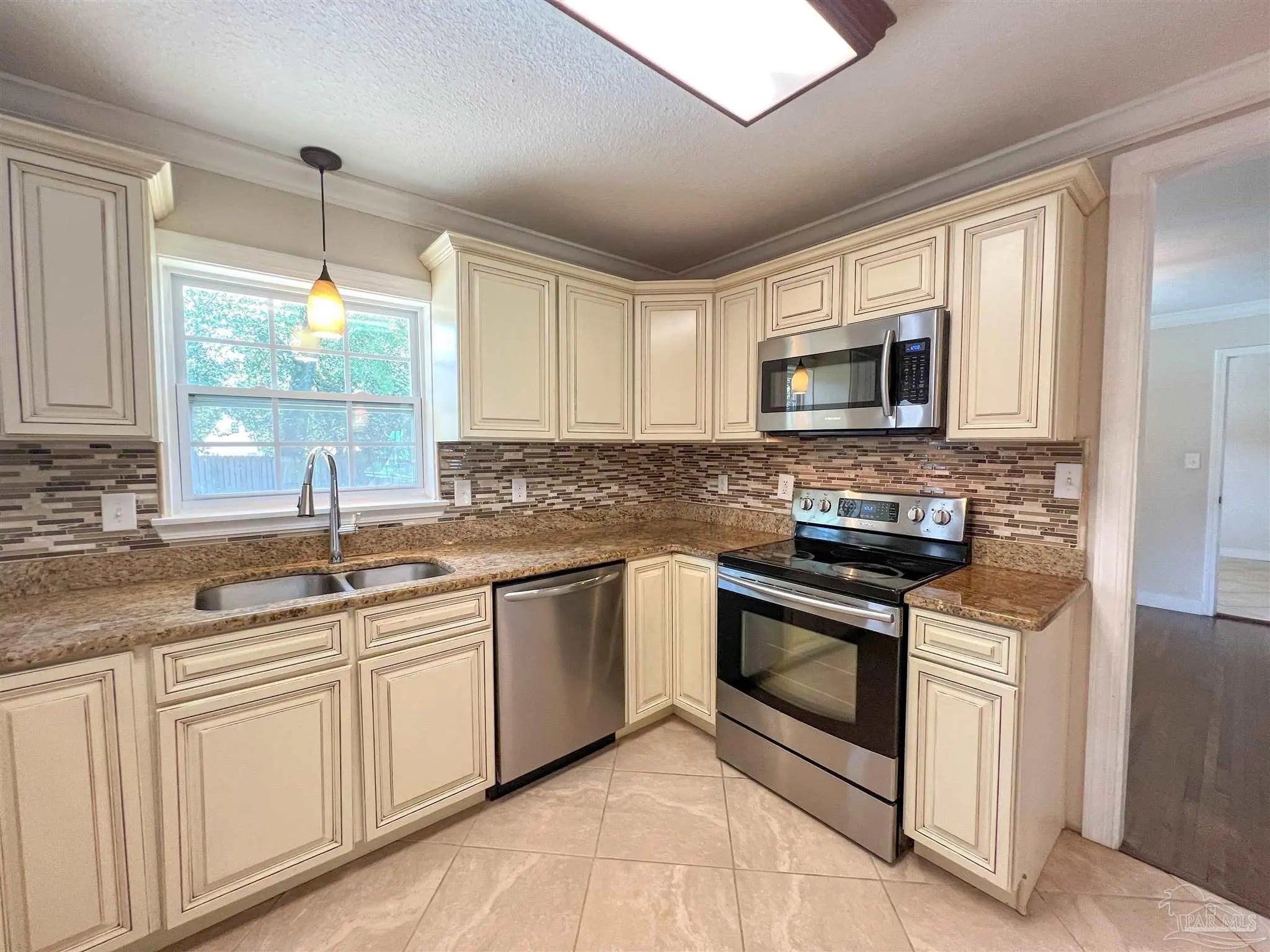 4-bedroom, 2.5-bath long-term rental home with nearly 1,900 square feet of living space and situated on a large cul-de-sac lot with an in-ground pool and a fenced backyard. The home features an open floor plan with refinished original hardwood floors in the living and dining areas, crown molding, modern lighting, and ceiling fans throughout. The kitchen is well-appointed with newer cabinets, stainless steel appliances, granite countertops, a mosaic glass backsplash, a stainless steel sink, and updated tile flooring. Additional features include a large laundry room with tile flooring, a half bath conveniently located near the pool, a granite pass-through and breakfast bar with pendant lighting, and an extra storage room off the garage. The bathrooms have been updated with furniture-grade cabinetry, push-button toilets, and stylish plumbing fixtures, while the walls and ceilings feature a Spanish lace finish for added character. Located in a neighborhood, this home is tucked away on a cul-de-sac while still offering quick access to the VA hospital, Pensacola NAS, Corry Station, restaurants, and shopping. All Hometown Properties of the Gulf Coast residents are enrolled in the Resident Benefits Package (RBP) for $50.00/month which includes liability insurance, credit building to help boost the resident’s credit score with timely rent payments, up to $1M Identity Theft Protection, HVAC air filter delivery (for applicable properties), our best-in-class resident rewards program, on-demand pest control, and much more! More details upon application.