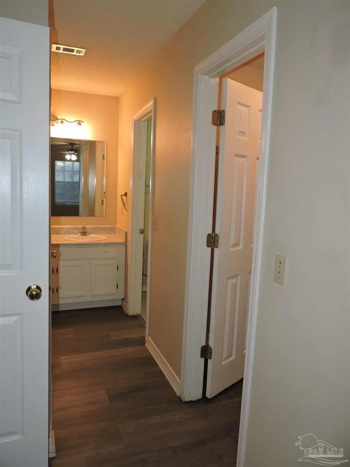 Downstairs unit that's centrally located! Easy access to interstate, schools & shopping. Wood-look vinyl plank flooring in main living areas. Tile flooring in kitchen & baths. Living room with ceiling fan & french doors to covered patio. Separate dining area. Fully equipped kitchen with pantry. Main suite has oversized closet & double vanity. Inside laundry. Ceiling fans in both bedrooms. Storage room off porch. No pets. Increased security deposit may be required for roommates.