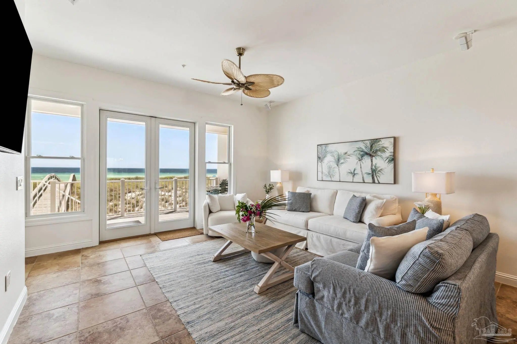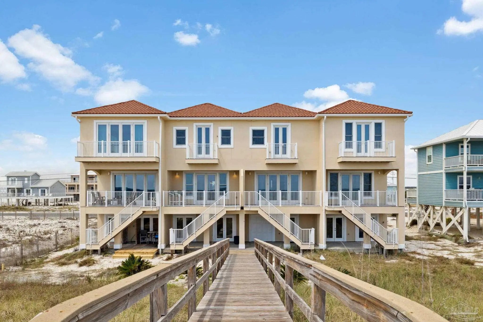 ''At Last'' located at 8037 Gulf Blvd awaits! Your fully furnished immaculate beach front Florida dream townhome with 4 bedrooms, 3 baths is fittingly named At Last! A few highlights include elevator with stops on each floor, incredible Gulf and Sound views, open floor plan, balconies, convenient beach walkover, fabulous floor plan with tall ceilings throughout, freshly painted exterior, tandem 2 car garage, plus NO HOA FEES. The garage with ample storage features two sets of exterior French doors which led to a ground floor patio the width of the townhome. It's easy ''At Last'' to set up for a day at the beach. As you enter the townhome foyer through the front door, you find gracious storage for all your gear. The foyer leads to the elevator and stairwell which is also accessible from the garage. Once you reach the main living area beautiful views of the Gulf of America unfold before your eyes and you are drawn to the outdoor living space and beach walkover leading to an expansive beach. The main living area with open floor plan features a bedroom and views of the Gulf and the Sound. The kitchen with walk in pantry and island perfect for bar stools marries the dining and living room. The resident chef can entertain while cooking the day's catch. Ascending to the 3rd floor via elevator or stairs, the Primary Ensuite Bedroom with Romeo & Juliet balcony is graciously sized and allows room for a king size bed plus seating. Two of the guest bedrooms, one of which features a balcony, share a Jack n Jill Bathroom with dual lavatories separated by a door allowing privacy from the tub/shower and toilet. Two of the three guest bedrooms enjoy Sound views. Don't miss this opportunity to Live and Play in beautiful Navarre Beach. Navarre Beach was recently featured in Coastal Living as one of the Gulf's best kept secrets. We invite you to the sugary white sands of 8037 Gulf Boulevard near the Gulf Islands National Seashore and the serene Santa Rosa Sound's intracoastal waterway.