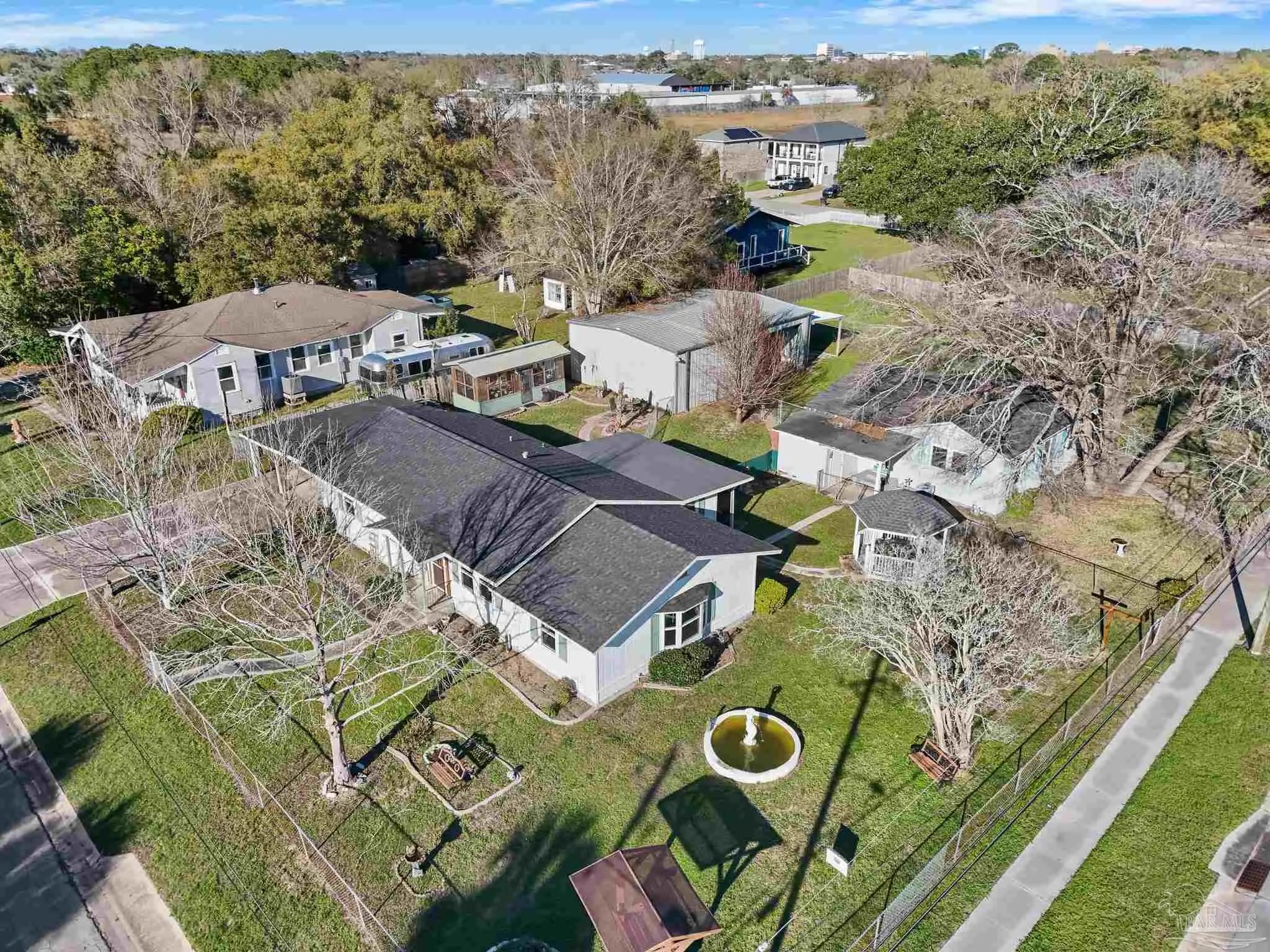 Opportunities like this are nearly impossible to find in Sanders Beach. This rare 0.46-acre (125’ x 160’) corner parcel, zoned Multi-Family, offers a prime opportunity for investors, builders, or those looking to secure a large homesite near the water in Pensacola. Positioned with views of Pensacola Bay at the end of K St and just minutes from downtown, the property is within walking distance to the Pensacola Yacht Club, MarineMax Marina, waterfront park, kayak launch, pier, and boardwalk, Sander Beach community center (Free gym use at the community center for owners in Sanders Beach) and located in a golf cart-friendly coastal neighborhood. Recent comparable sales indicate the primary value is in the land, making this a compelling redevelopment opportunity with multiple exit strategies. Preliminary layout suggests potential to subdivide into five 30’ x 125’ lots (buyer to verify with local zoning and planning). The main home (1975) offers 1,491 SF, 2 bedrooms and 2 bathrooms, with key updates already completed including roof (2021), HVAC (2020), and windows (2022—ideal for interim rental income or use while planning redevelopment. A beautiful 20’ x 40’ x 12' metal building (2008), wind-rated to 140 mph, adds significant value with workshop space, storage, and an upper-level office/apartment with full bath. A second home (1950s) is present and will require significant renovation or removal. A greenhouse is also on site and in need of repair. Demolition estimates are available for each building. Large, multi-family zoned parcels this close to the water are increasingly scarce in Pensacola—making this a standout opportunity for development, long-term hold, or building a custom coastal residence.