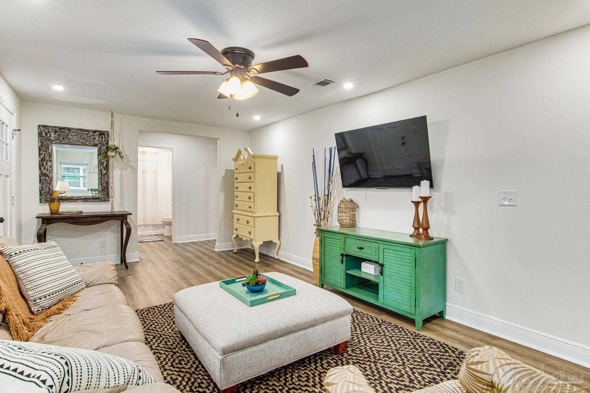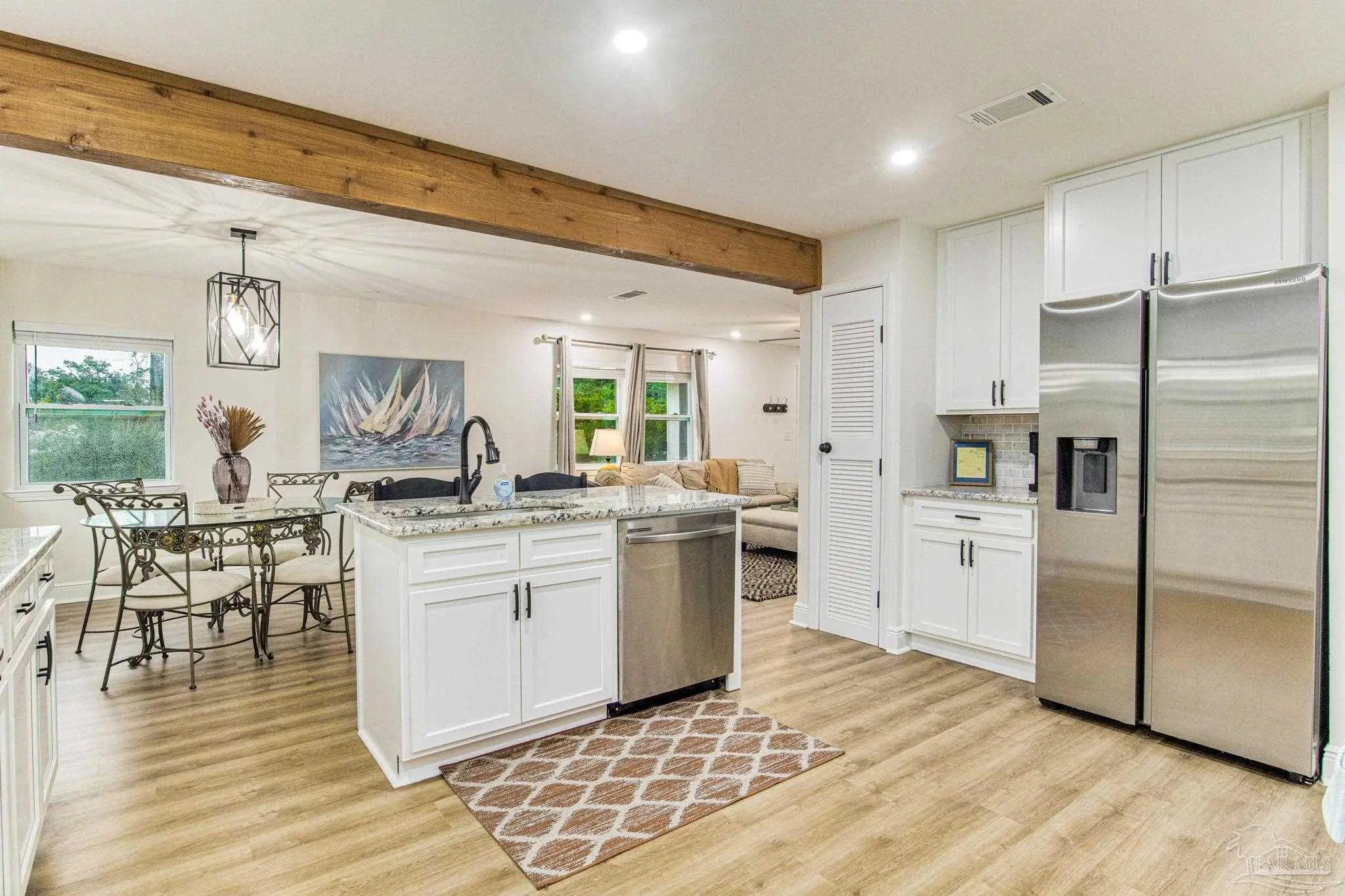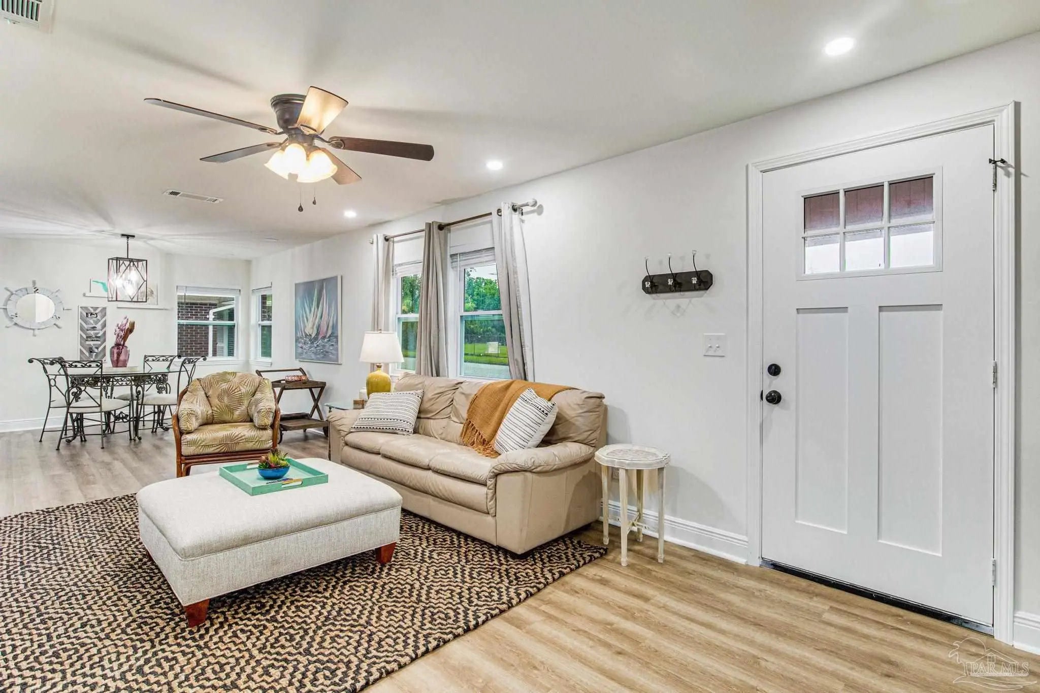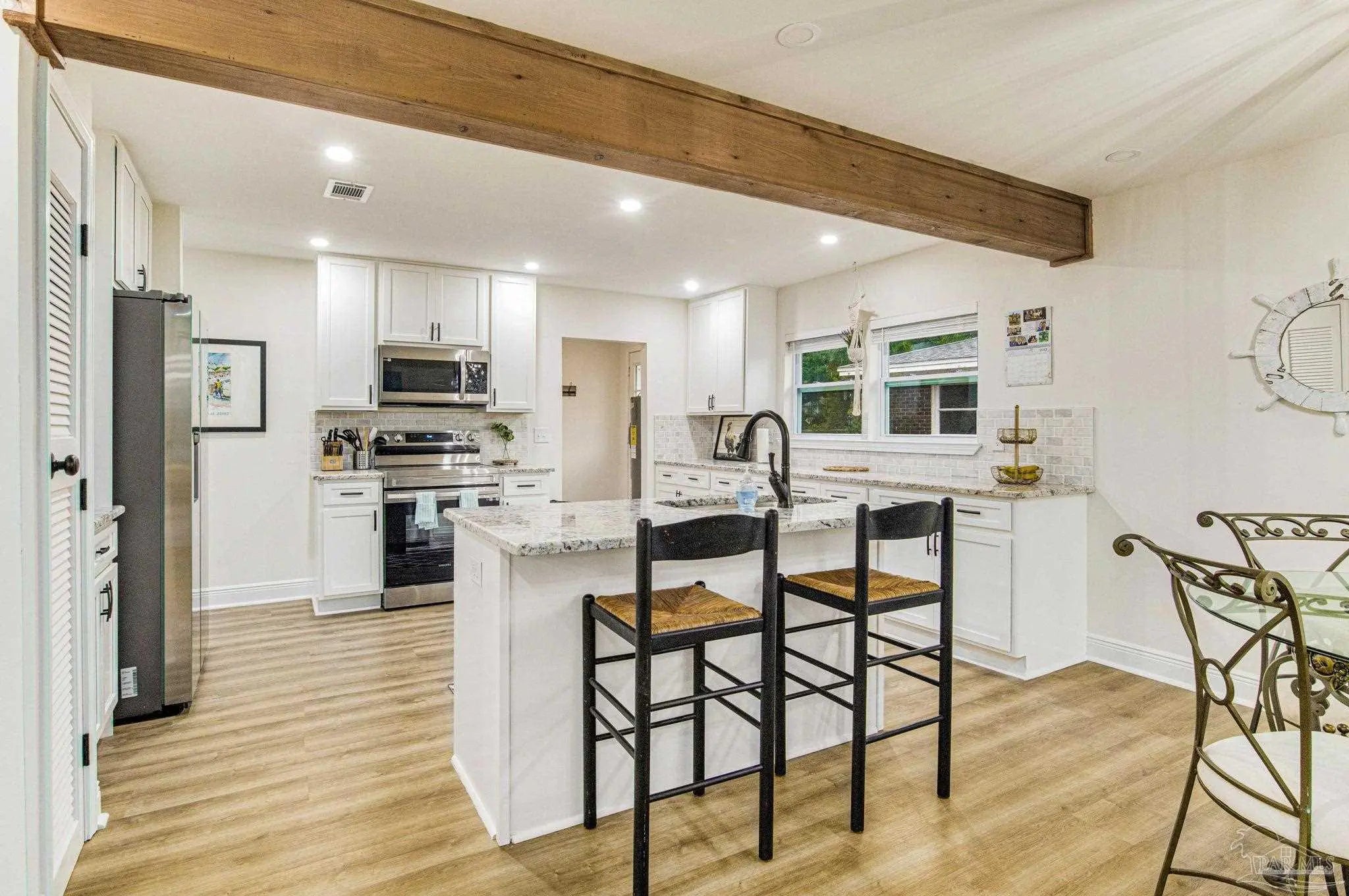 Fully renovated 3 bedroom, 2 bathroom home centrally located near downtown Pensacola. The home was completely remodeled in 2022 with city-approved permits and inspections, including new roof, HVAC, framing/layout updates, sheetrock, full electrical rewire, plumbing, cosmetic finishes, and windows with hurricane protection. The property includes a shared driveway that opens to a spacious gravel parking area with three designated spots. The building across the street is used by the Escambia County School District for operations and typically remains quiet with minimal activity.