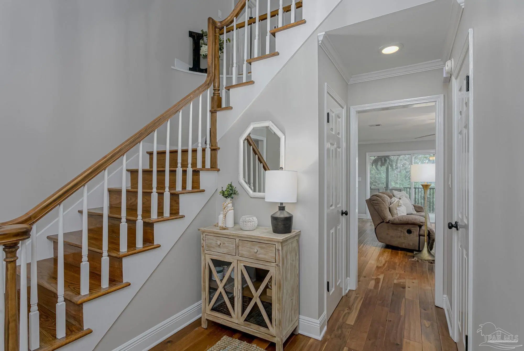 Beautifully updated 3 bed, 2.5 bath home located on a quiet cul-de-sac in Gulf Breeze Proper, within walking distance to top-rated schools and just minutes from Downtown Pensacola and Pensacola Beach. The home features a large living room with a brick fireplace and built-in shelving, plus a screened-in patio overlooking the backyard—perfect for relaxing or entertaining. The renovated primary suite includes new flooring, an updated bathroom and redesigned closets. Upstairs you'll find two bedrooms with individual sinks and closets connected by a shared bath layout. Additional spaces include a separate office and formal dining room, a dedicated laundry room with washer and dryer, and a large two-car garage. Downstairs also offers a bonus room with an additional refrigerator, ideal for extra living space, hobbies, or storage. Located in a highly desirable area with convenient access to schools, shopping, downtown Pensacola, and the beaches.