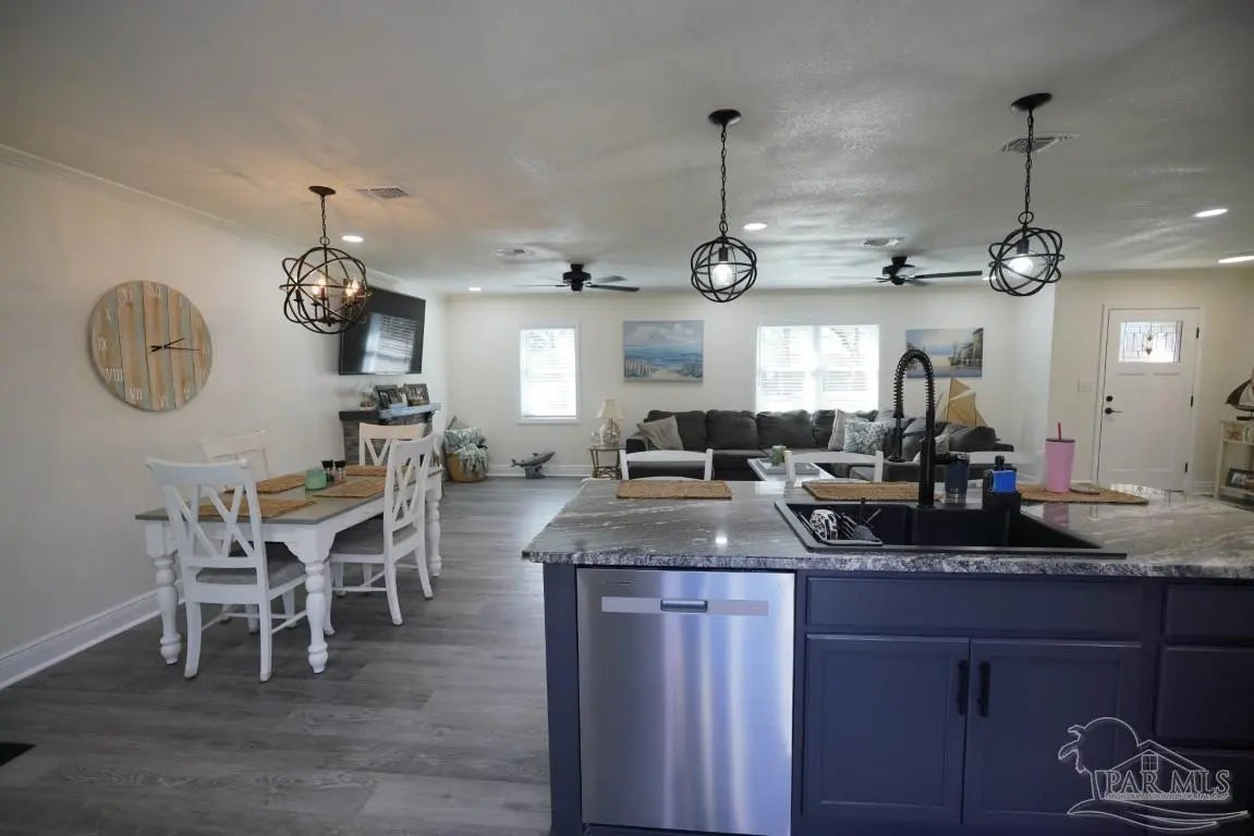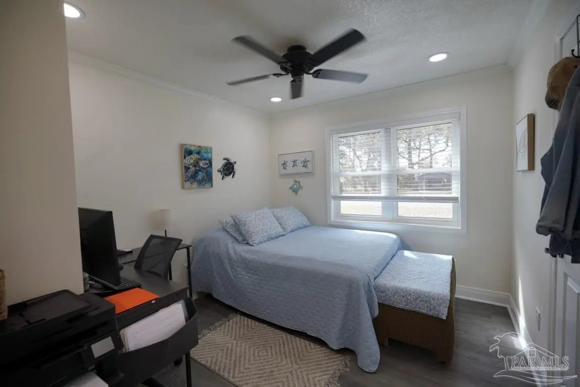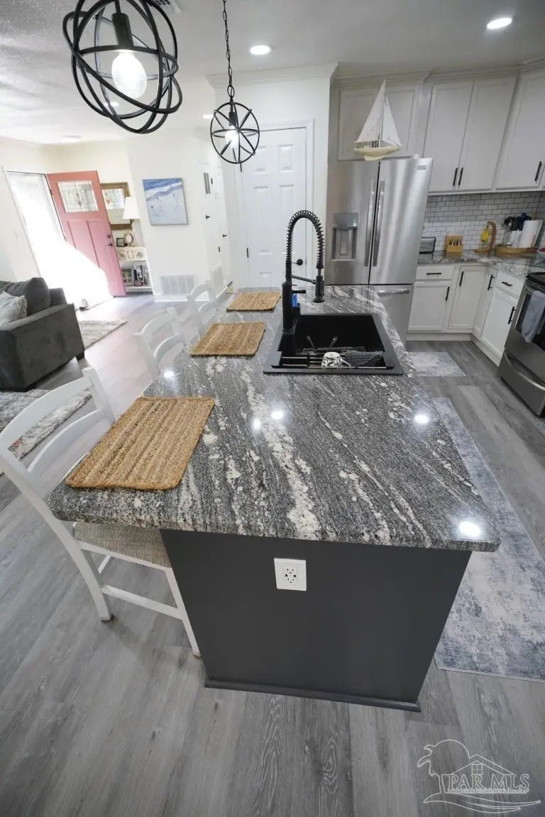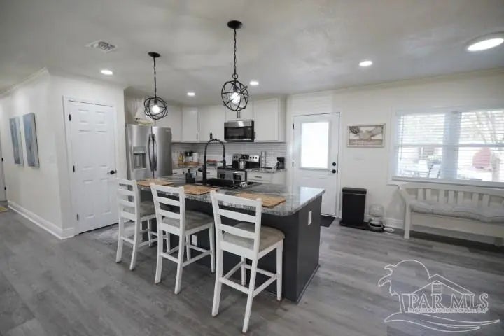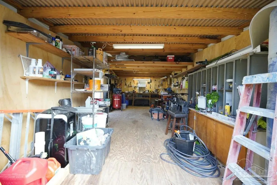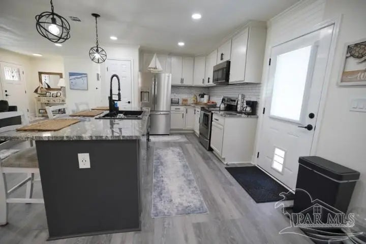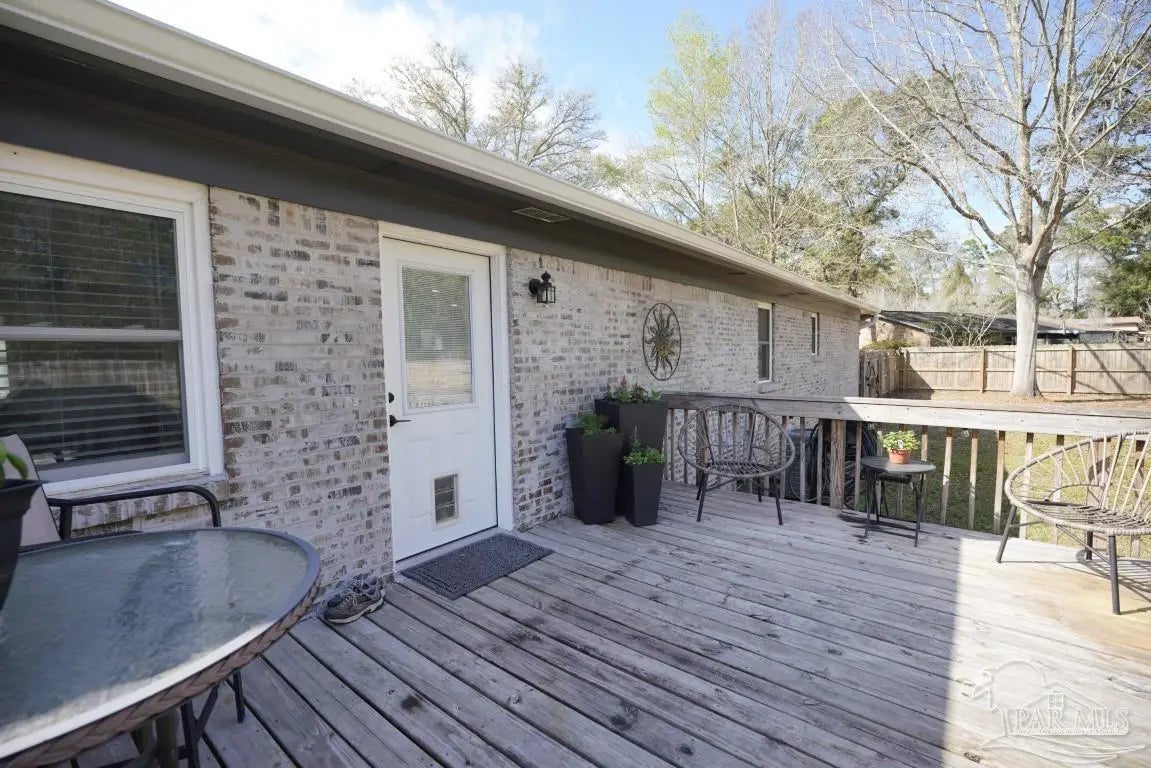 Rare find! Nearly half an acre in Pace with no HOA—bring your boat, RV, and more! This home is tucked inside a beautiful, quiet neighborhood that feels peaceful and private, yet is minutes from all major shopping centers and restaurants. Pristine condition! The all-brick ranch-style home offers an open-concept kitchen-dining-living room. The huge great room offers an abundance of natural light which opens to a dining and kitchen area. The kitchen is a complete remodel with new cabinets, new granite countertops, new granite Island, pantry and new stainless appliances. Under-cabinet lighting added for improved countertop visibility and modern functionality. Other new improvements include, Luxury vinyl flooring installed throughout the home for durability, water resistance, and a modern, cohesive look. All new interior doors with ergonomic hardware. Can lighting installed in every room for consistent, modern, energy-efficient illumination. All new lighting fixtures throughout the home. Down the main hallway are three bedrooms with closets and ceiling fans, plus a shared bathroom with a shower/tub combo. At the end of the hall, the master bedroom includes a closet, ceiling fan, and a private bath with beautiful tile floors, a vanity area, and a shower. Enjoy the rear deck overlooking a fully fenced backyard with two double gates leading to powered workshops/sheds measuring about 11' x 11' and 11' x 27. There is also a carport, and an additional overhang for extra covered storage. Entire exterior professionally German Schmear applied, provides a durable, long-lasting finish with a timeless European-style appearance. Full plumbing replacement throughout the home, complete electrical system upgrade (wiring, outlets, switches, fixtures). All new windows installed. Fully encapsulated crawlspace with professional dehumidifier. Transferable warranty included. Location is convenient to military bases, schools, hospitals and minutes from Navarre and Pensacola beaches!!!!