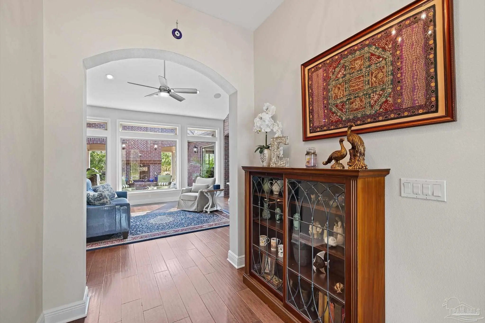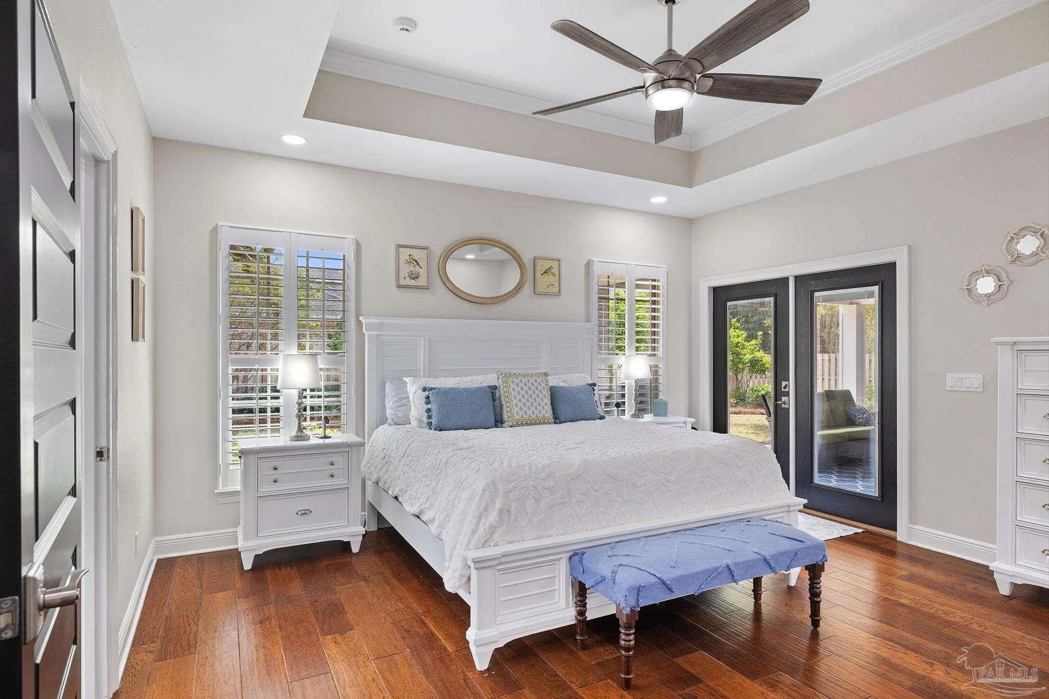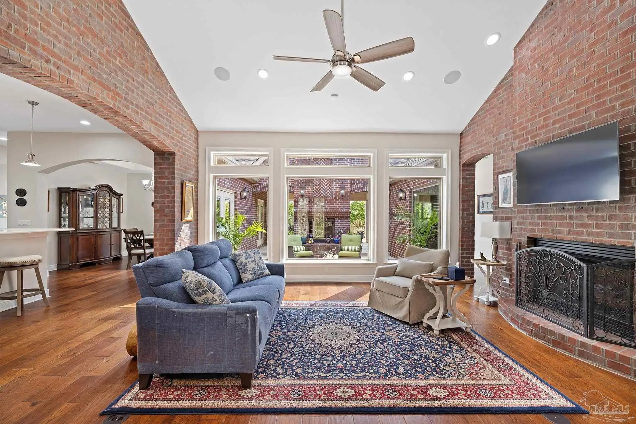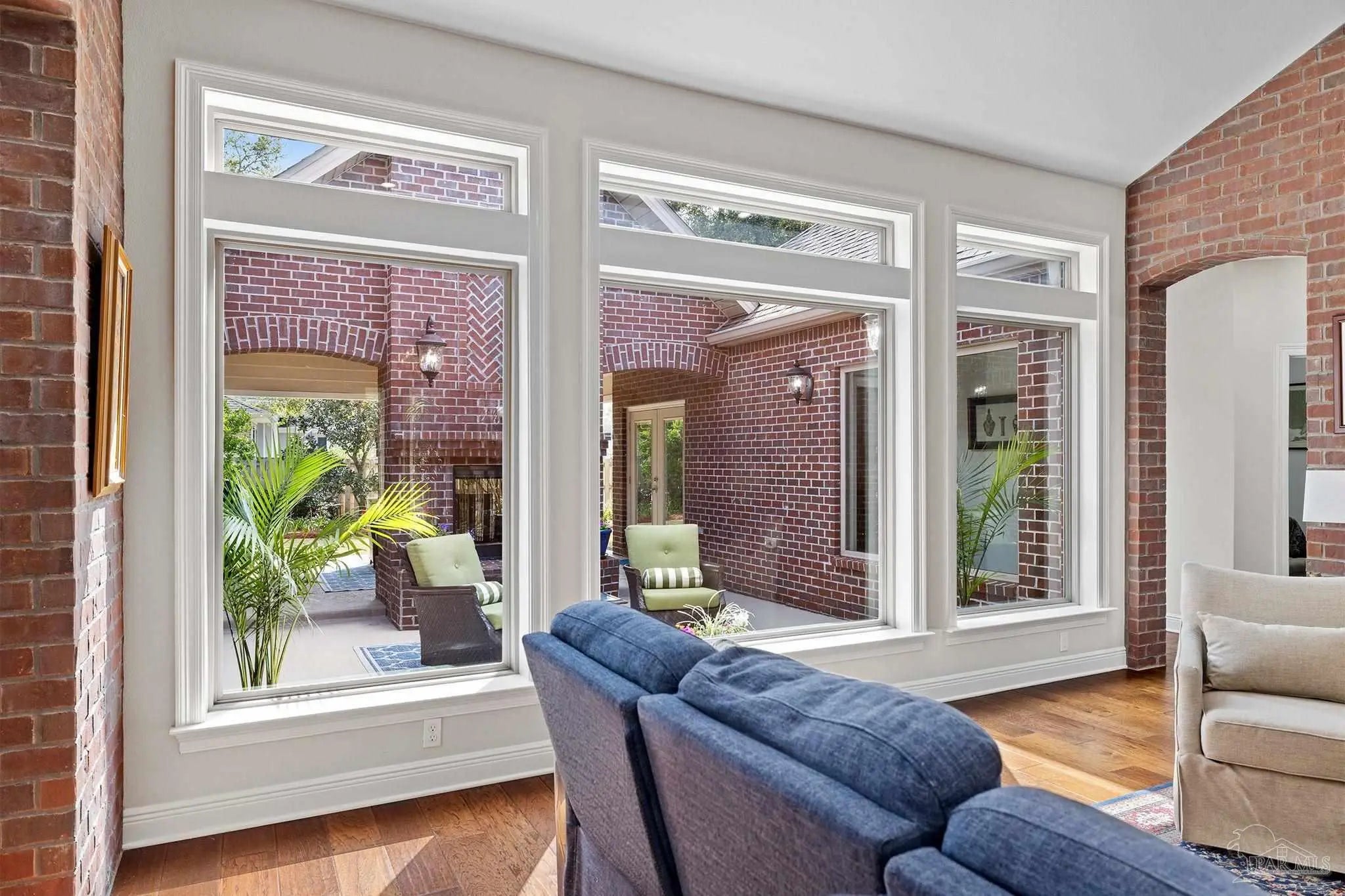 Stop the scroll! Rare opportunity to own a semi-custom masterpiece on a prime corner lot in Pensacola's premier gated community, Nature Trail. This 5-bedroom, 3-bathroom sanctuary blends high-end architectural detail with the peace of mind of a whole-house generator installed 2023 and HV/AC 2023. The Architectural Excellence of the Hardwood floors, soaring trayed ceilings, and elegant plantation shutters throughout give an interior WOW factor. The Designer Great Room features floor-to-ceiling large picture windows that frame a "park-like" view, anchored by a stunning brick accent wall and fireplace. The Chef’s Dream Kitchen is an open-concept layout featuring a massive entertaining island, NEW 2025 designer stainless appliances, formal dining, and a sunny breakfast nook. The Master Bedroom is a spacious retreat with trayed ceiling, double doors that lead out to the courtyard, while the master en-suite has heated floors and has been updated adding quartz counter tops, tile shower and custom linen cabinet. An updated Laundry Room with custom cabinetry and quartz countertops is a beautiful addition. Looking for Flex Space? A dedicated media/bonus room perfect for a home theater, gym, or executive office is sure to please. The outdoor courtyard lets you escape to a private, courtyard-style patio featuring an outdoor double-sided fireplace—the ultimate setting for coastal evenings. Situated on a manicured corner lot with a 3-car garage and a sprawling, scenic backyard gives you plenty of space and privacy. Nature Trail Lifestyle: Enjoy exclusive access to the 6,000 sq. ft. Lodge, resort-style pools, fitness center, tennis courts, and 400+ acres of hiking trails and seasonal family events. Move-in ready luxury with unmatched curb appeal. Schedule your private tour of 5917 Dahoon Dr. today!